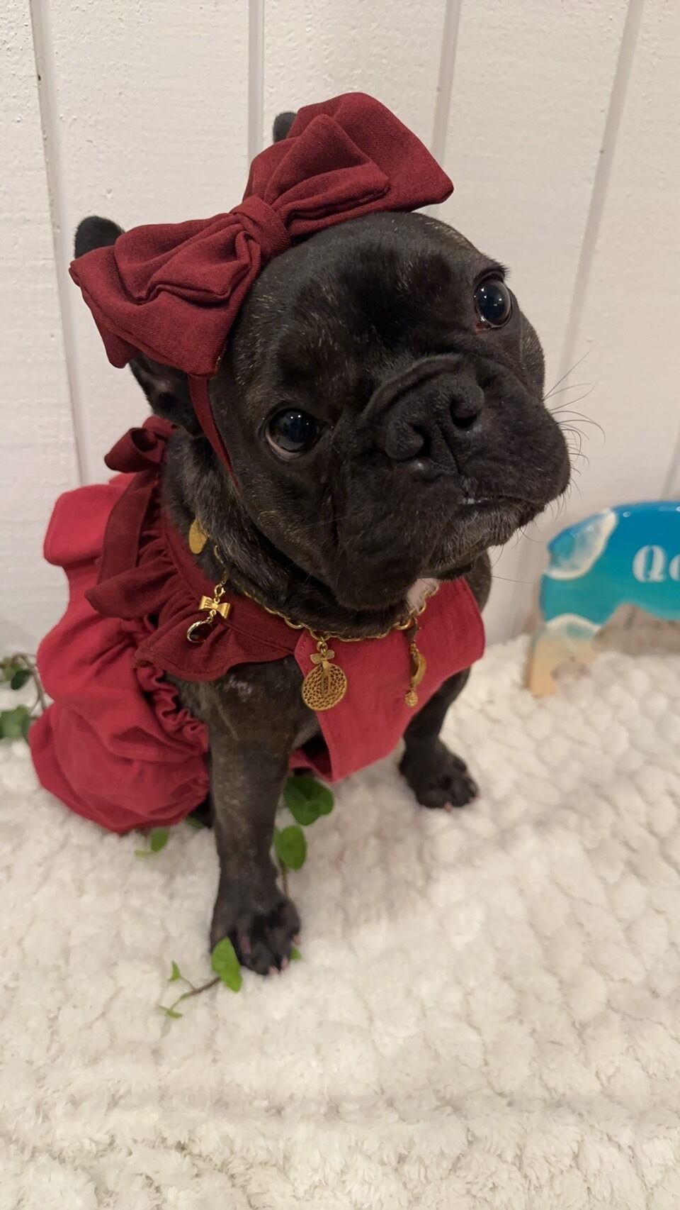 とってもお洒落なワインレッドリボン❤️ 犬服 犬服ハンドメイド フレンチブルドッグ服 フレブル服 パグ服 小型犬服