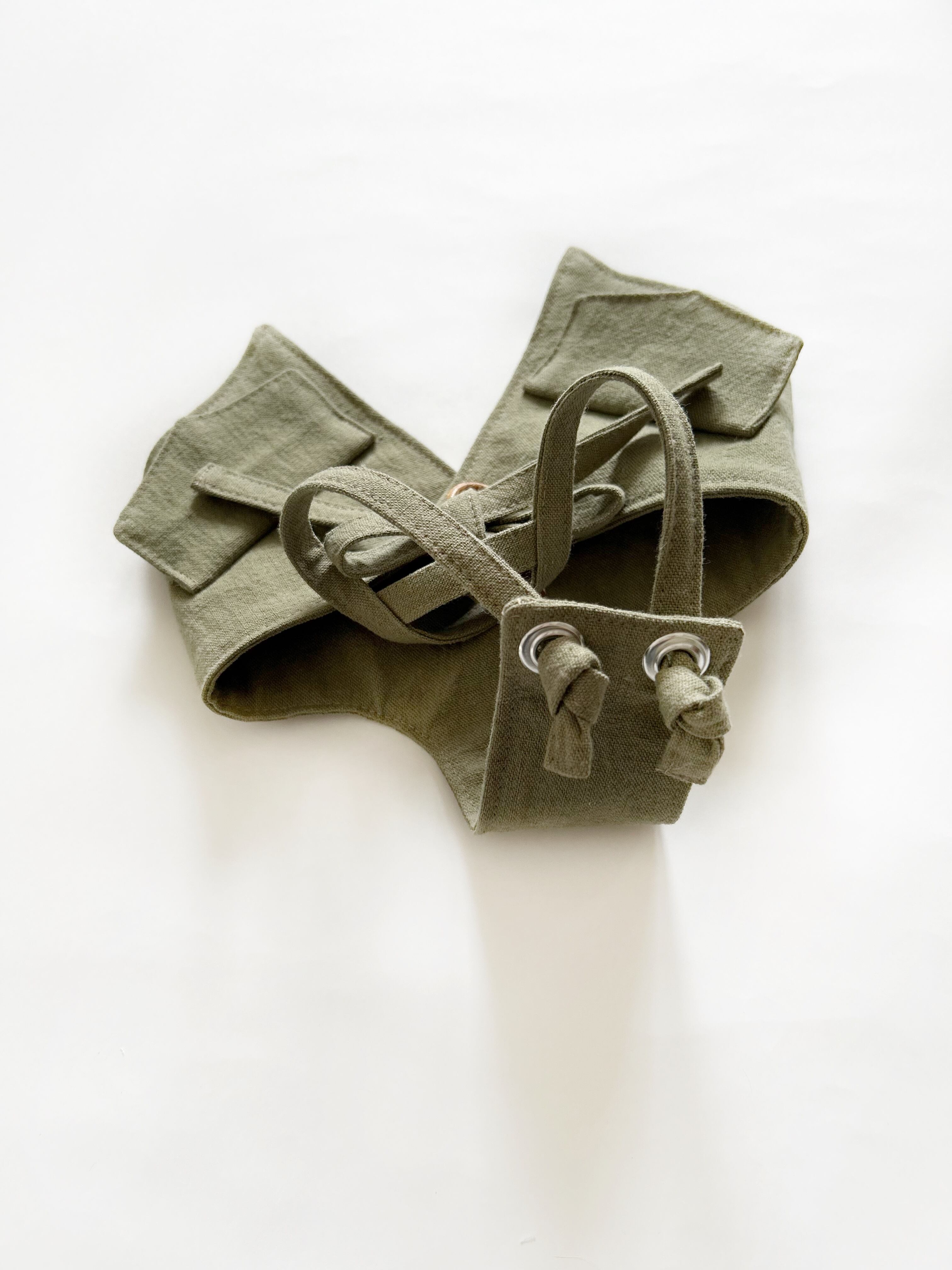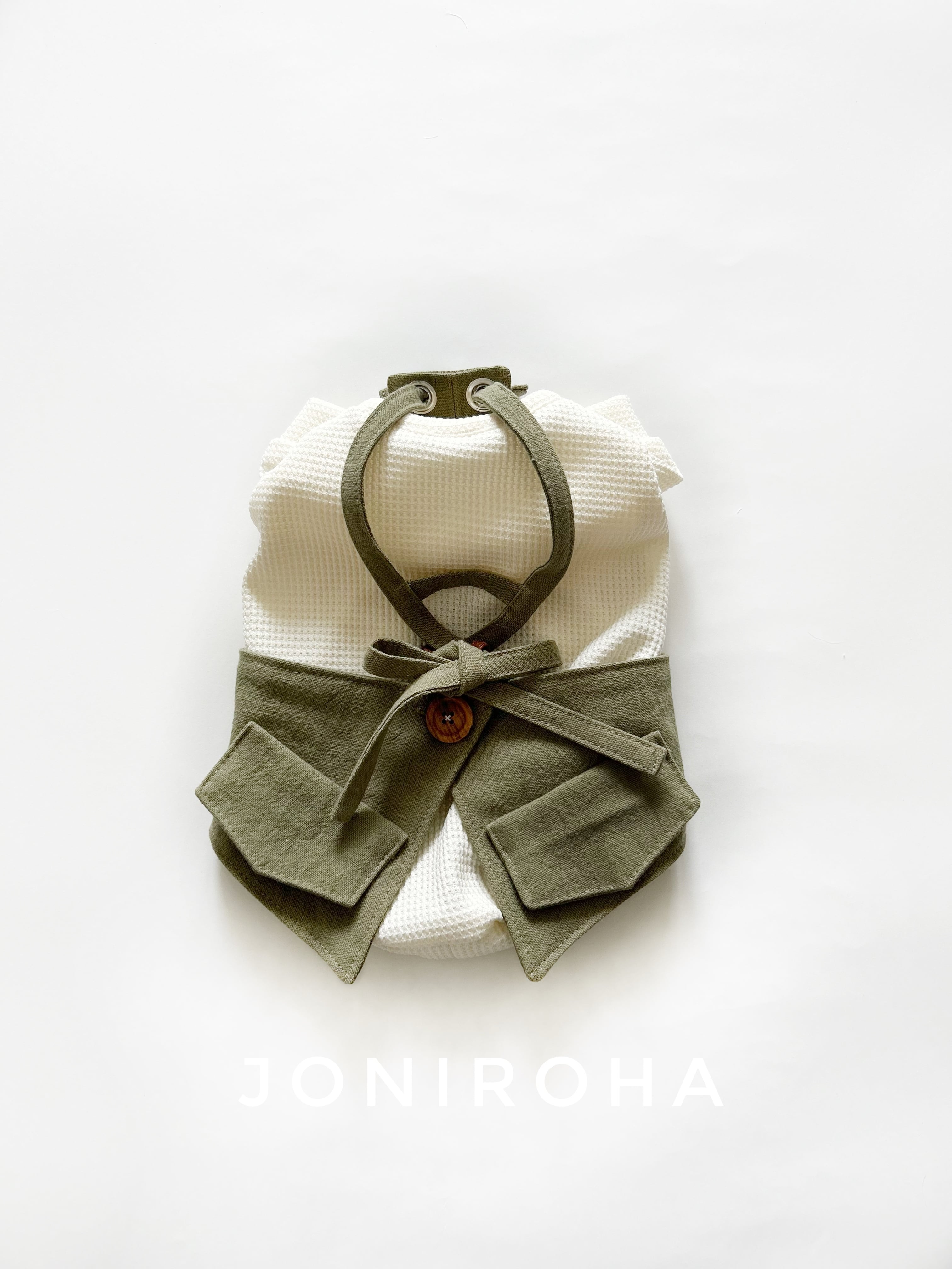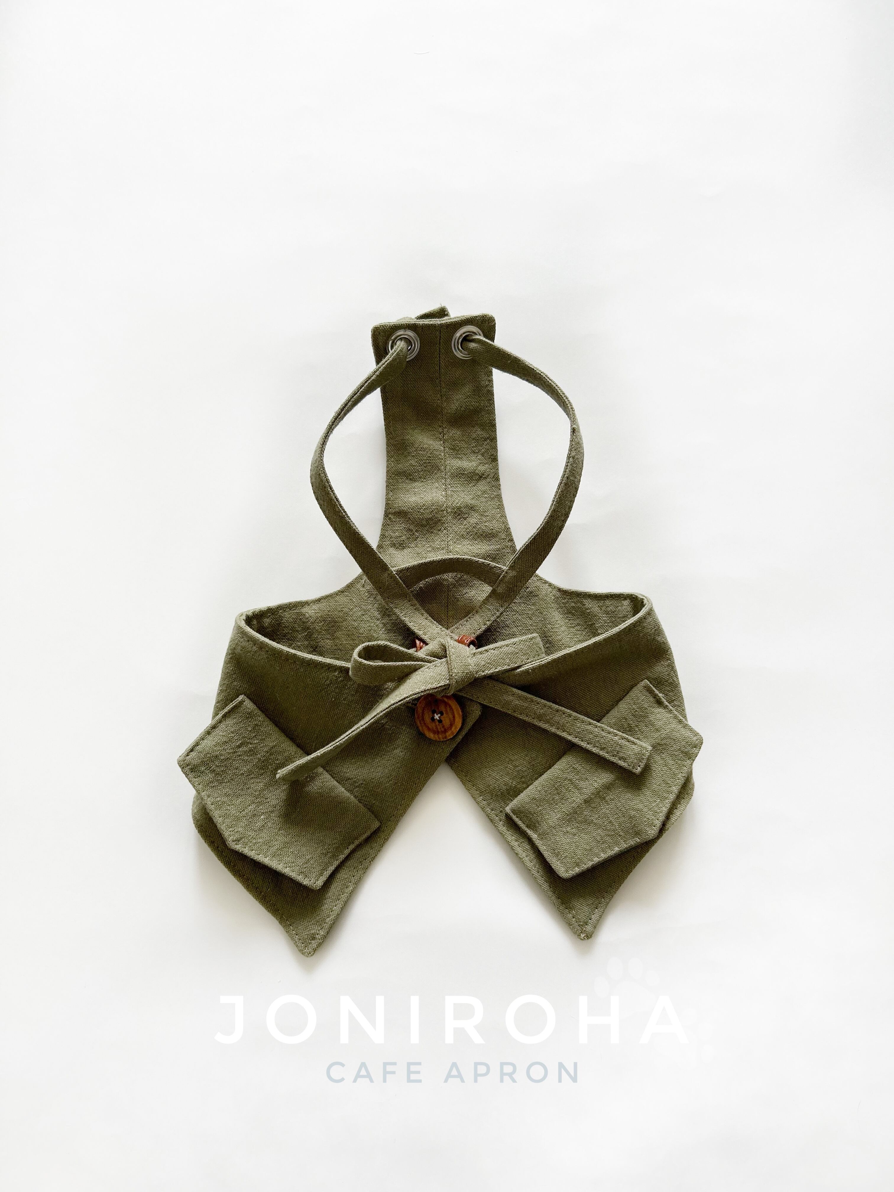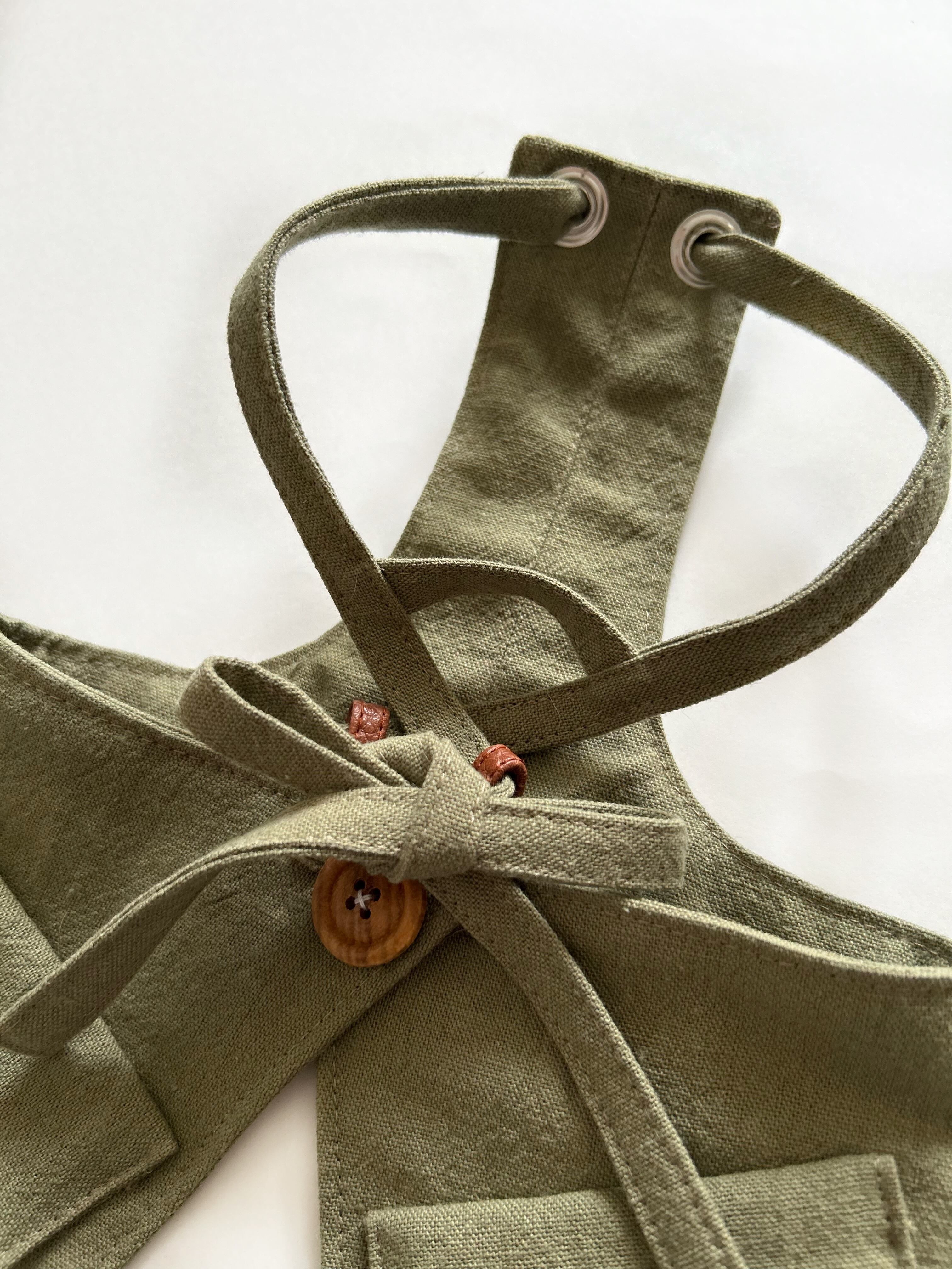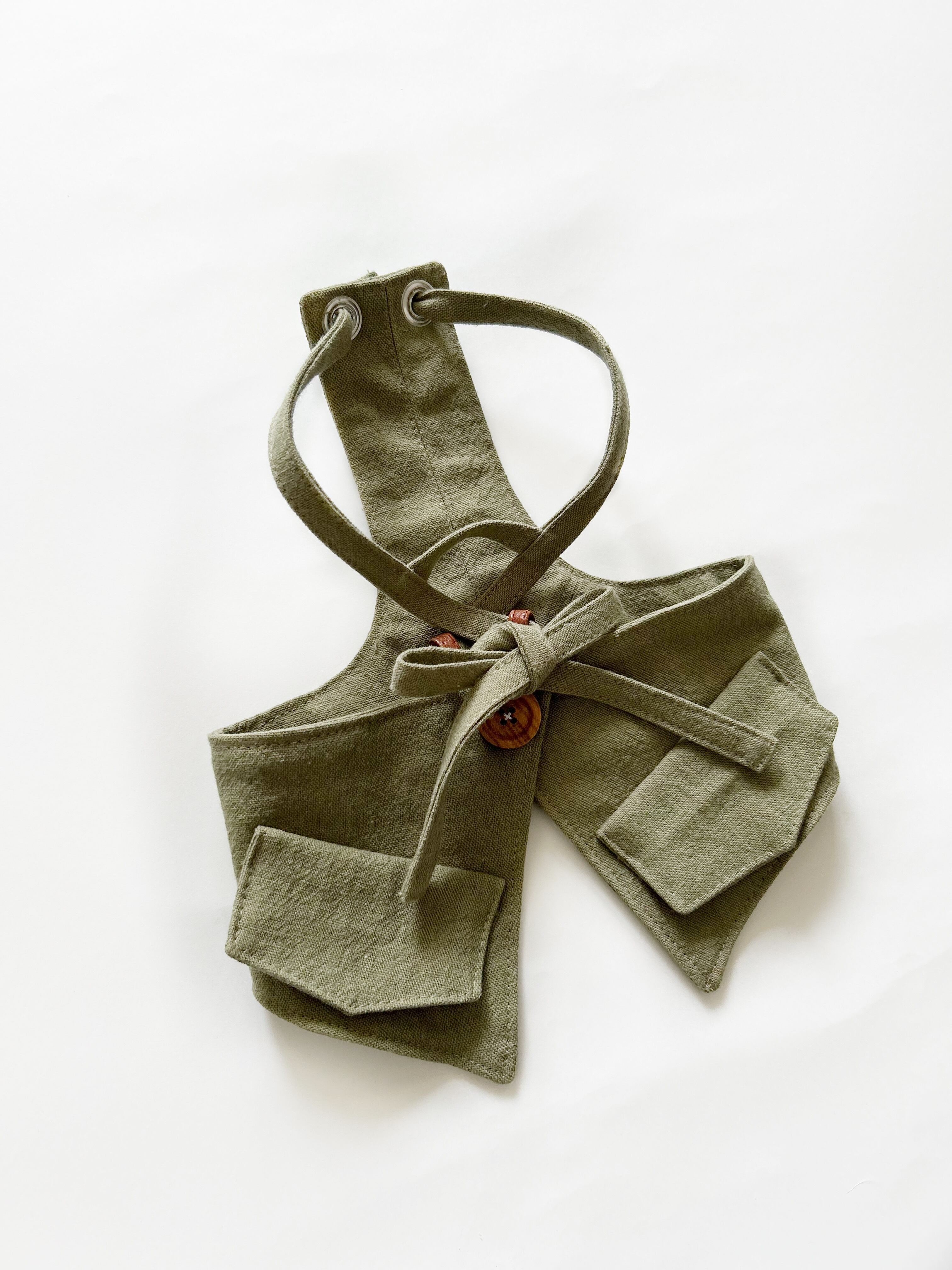 とってもお洒落なコットンリネンcafeエプロン❤️ カーキ 犬服 犬服ハンドメイド フレンチブルドッグ服 フレブル服 パグ服 小型犬服 カフェエプロン 重ね着