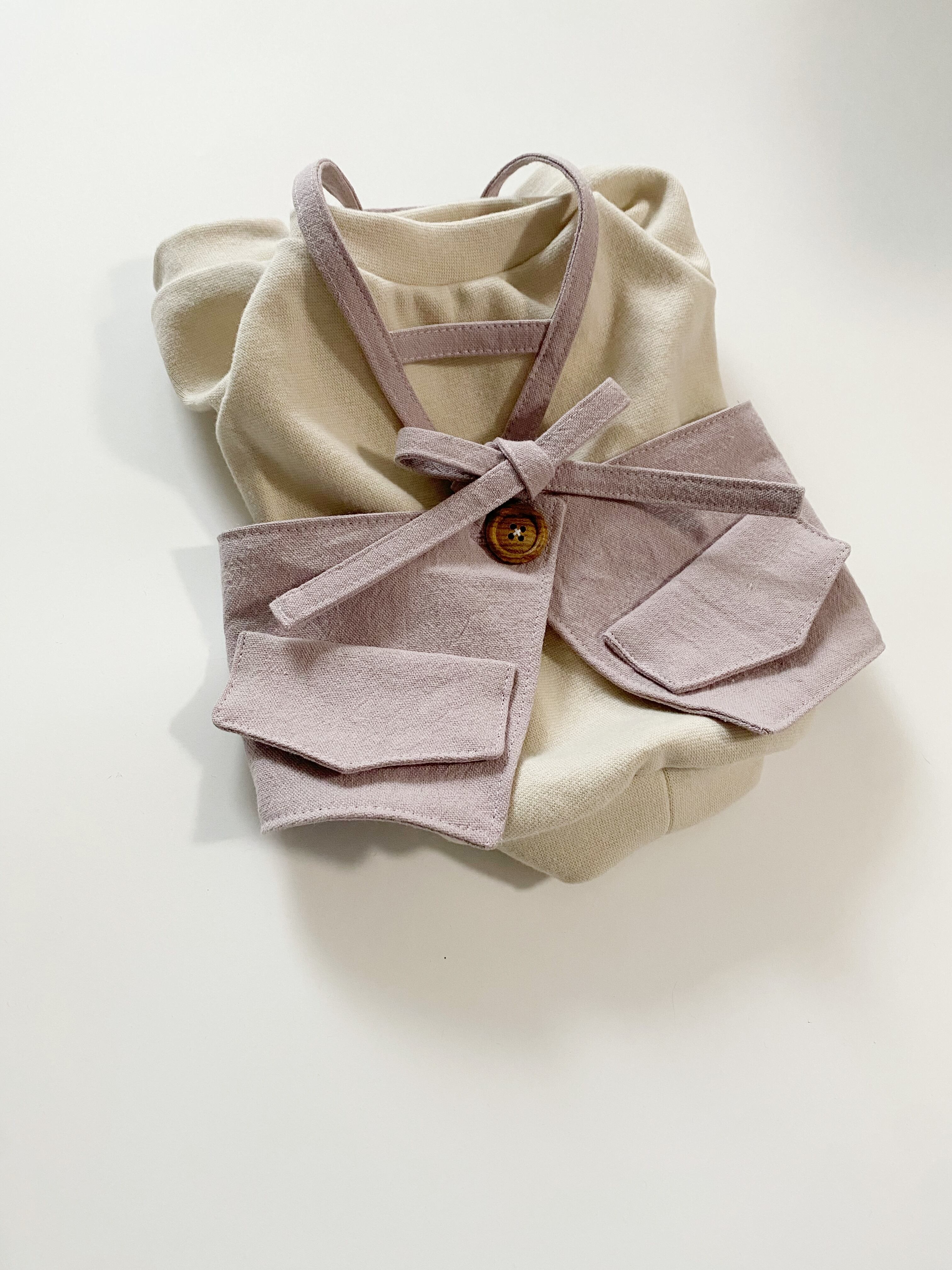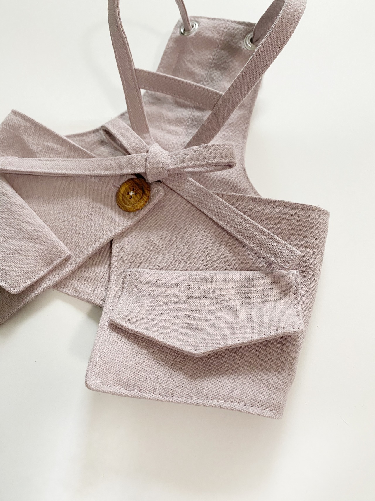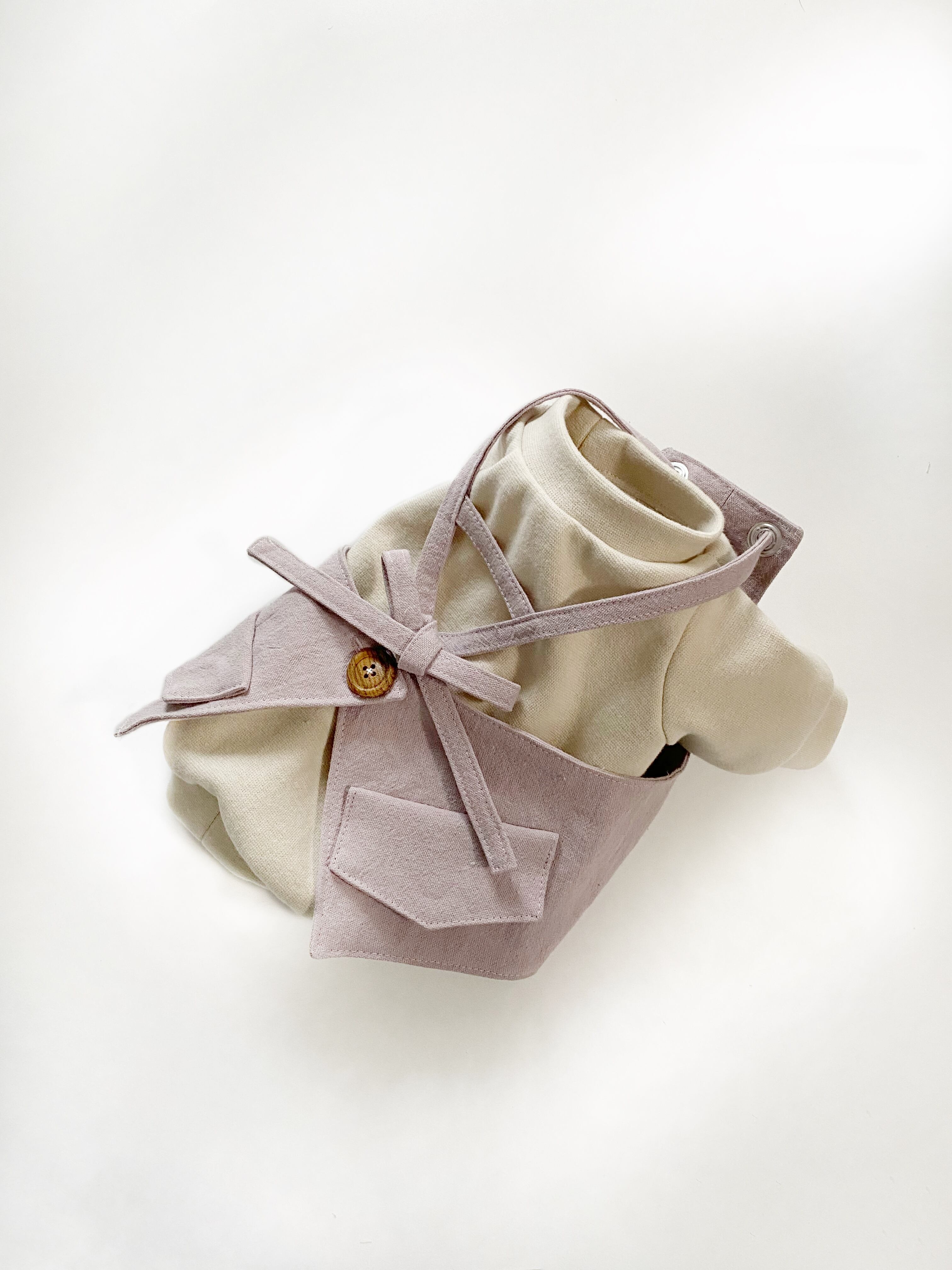 とってもお洒落なコットンリネンcafeエプロン❤️ くすみピンク 犬服 犬服ハンドメイド フレンチブルドッグ服 フレブル服 パグ服 小型犬服 カフェエプロン 重ね着