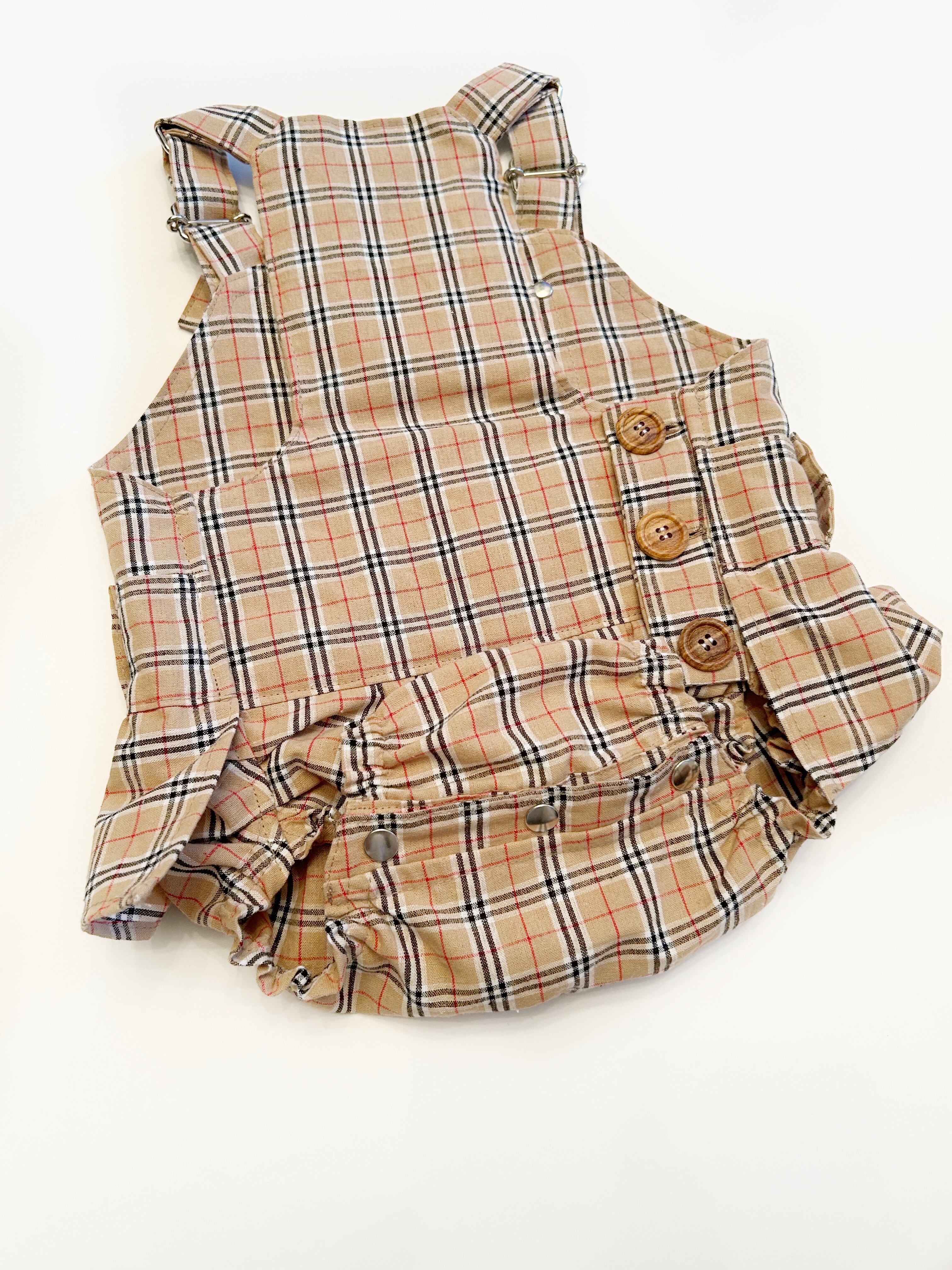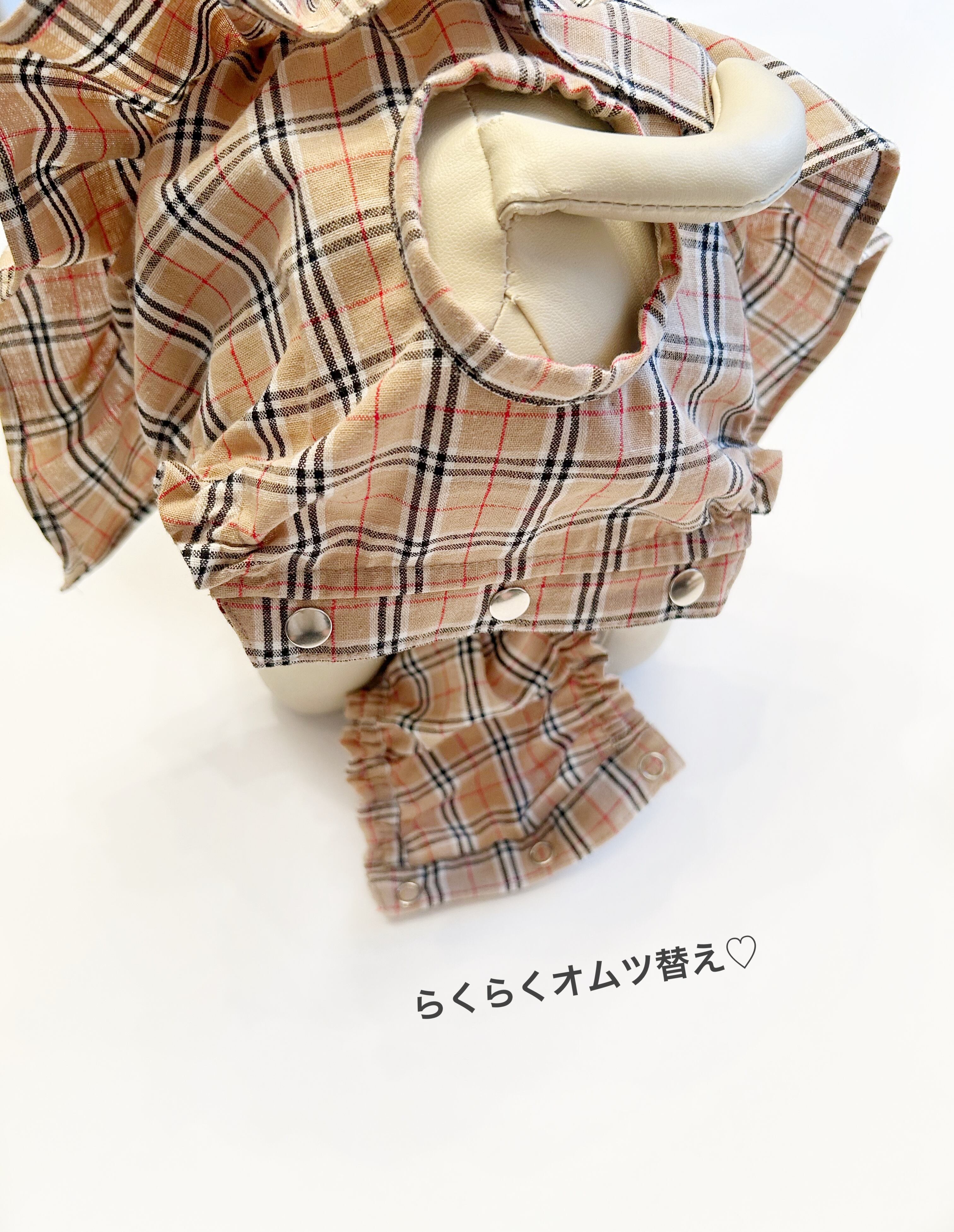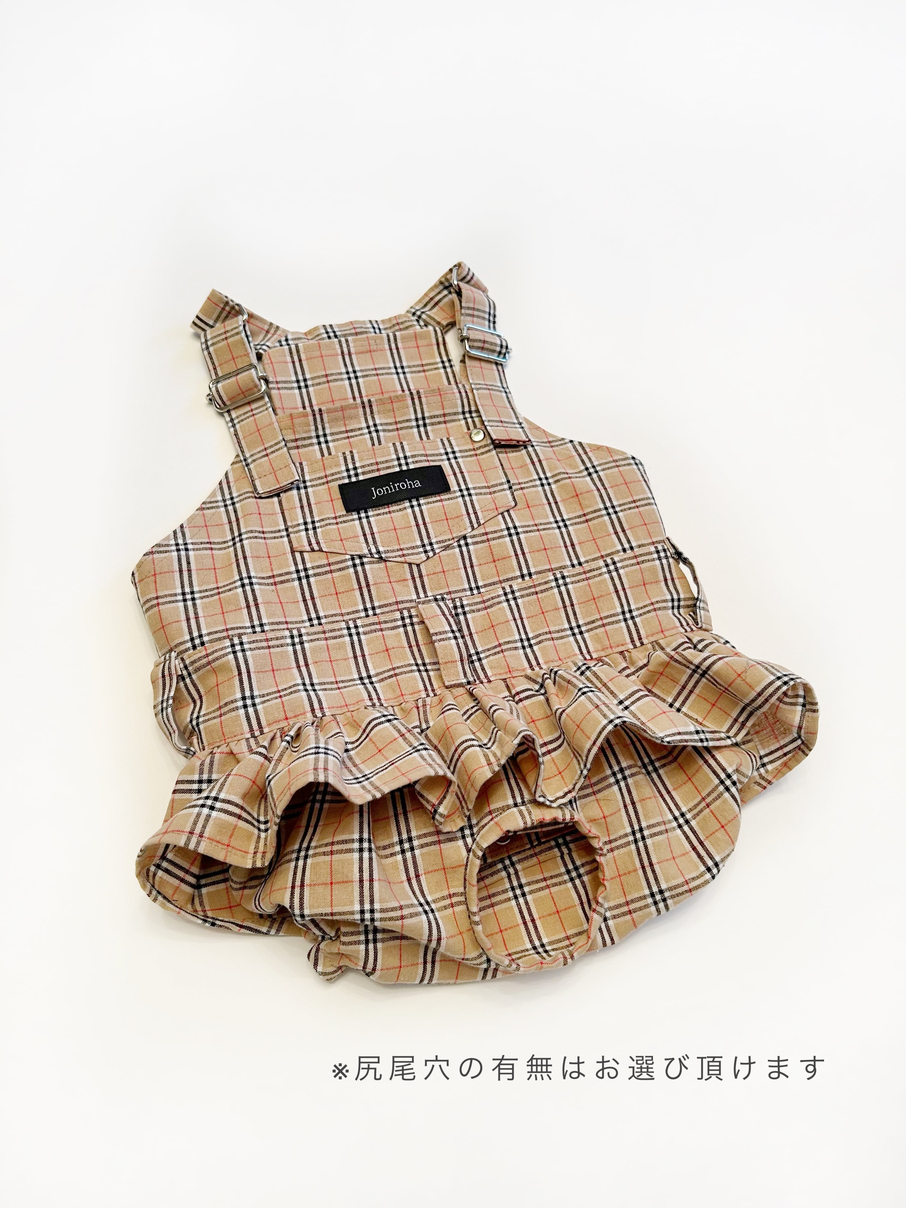 【クール選べる☆】とってもお洒落なオムツカバーオーバーオール❤️ 一体型犬服 タータンチェック 犬服ハンドメイド フレンチブルドッグ服 フレブル服 パグ服 小型犬服 クールエプロン