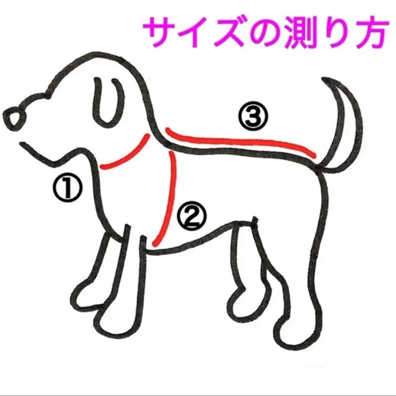 ③・・・首回りを測った位置から、尻尾の付け根