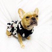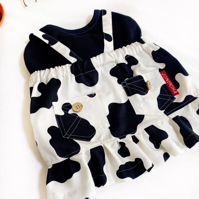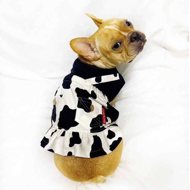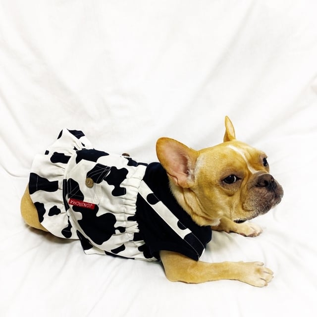 モゥ〜っと可愛く♡重ね着風ウシさんサロペットワンピース♡ 犬服 犬服ハンドメイド 小型犬服 フレブル服 フレンチブルドッグ服 パグ服