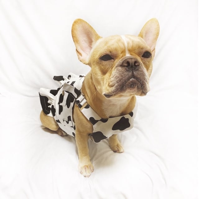 【クール】モゥ〜っとひんやり♡ウシ柄オーバークールワンピース 犬服、犬服ハンドメイド クールエプロン 熱中症予防 小型犬服 フレンチブルドッグ服 フレブル服 パグ服