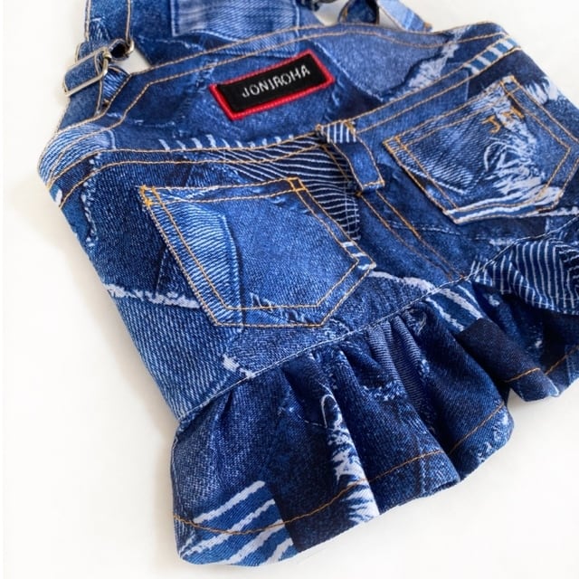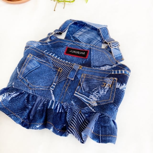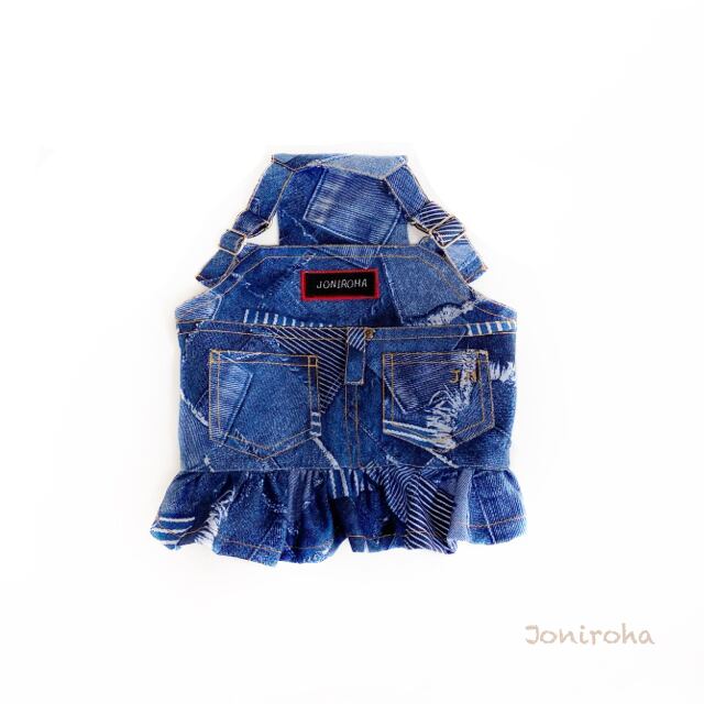 【クール】ひんやり♡オーバーオール風クールワンピース♡ インディゴ 犬服 犬服ハンドメイド クールエプロン デニム 小型犬服 フレンチブルドッグ服 フレブル服 パグ服