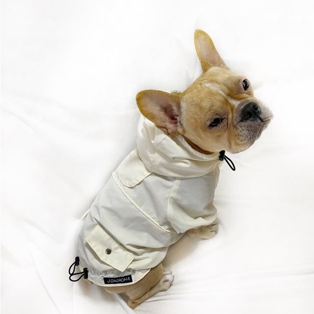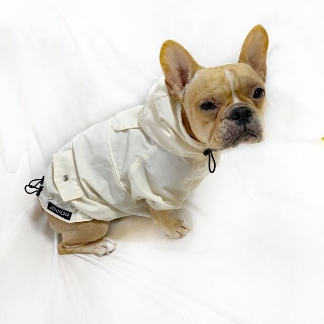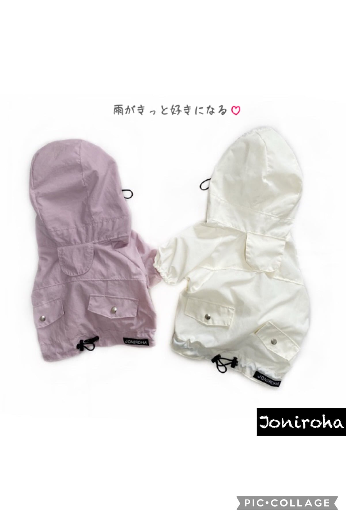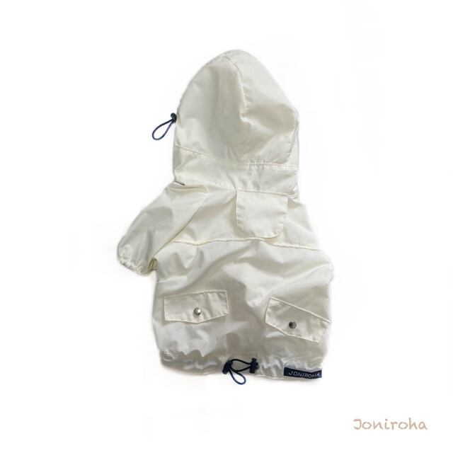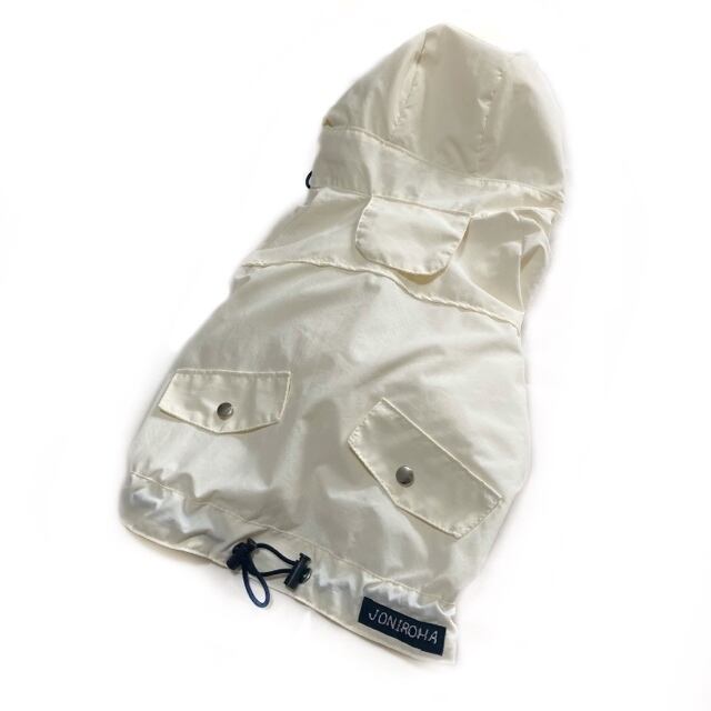雨がきっと好きになる♡とってもお洒落なレインパーカー♡ バニラホワイト 犬服 犬服ハンドメイド 犬服レインコート レインウェア シンプル