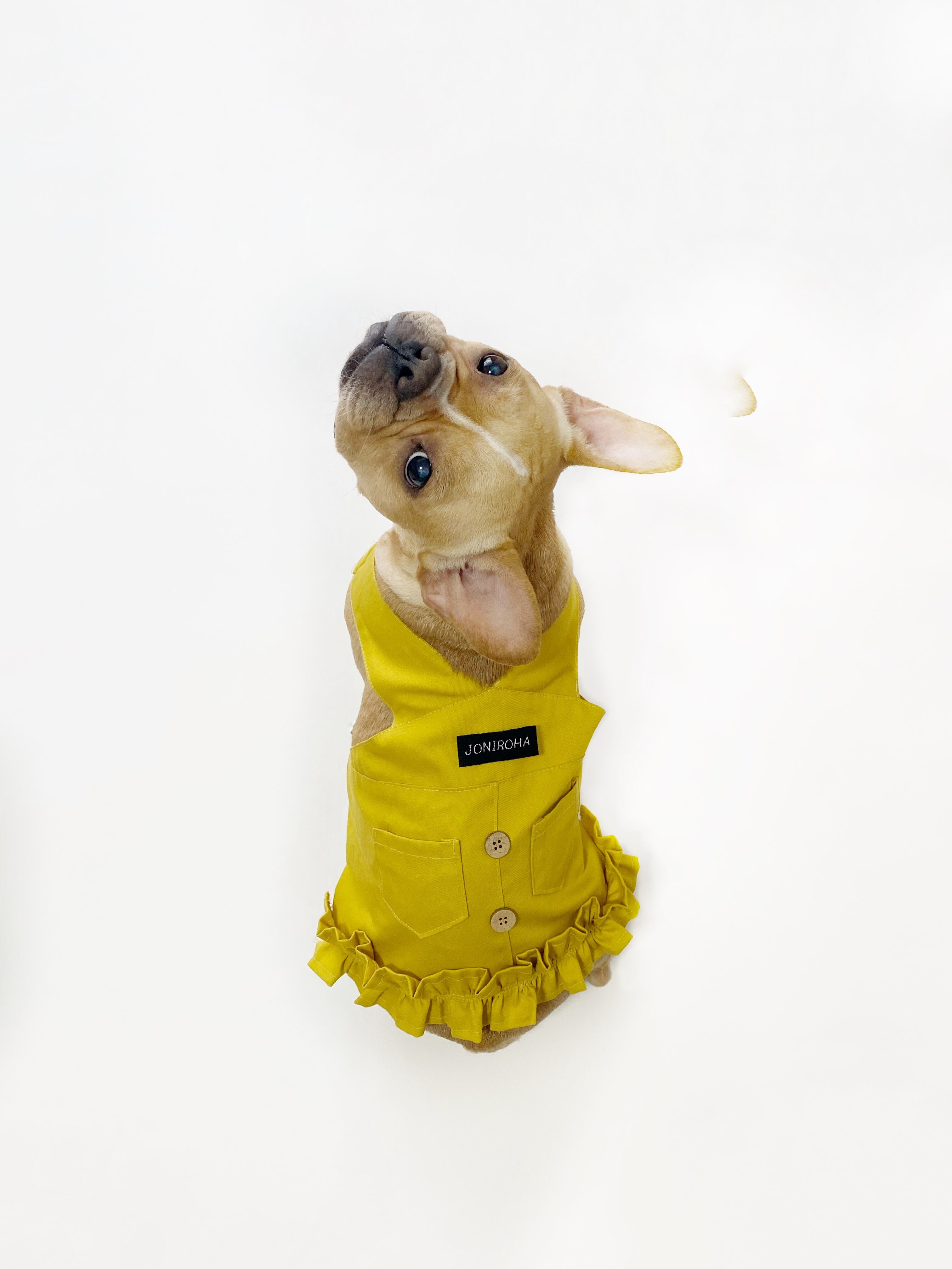 ⚠️クール無し⚠️とってもお洒落なフリルワンピース♡ マスタード 犬服 犬服ハンドメイド お洒落 可愛い フレンチブルドッグ服 フレブル服 パグ服 オーダーメイド 大型犬 春夏服