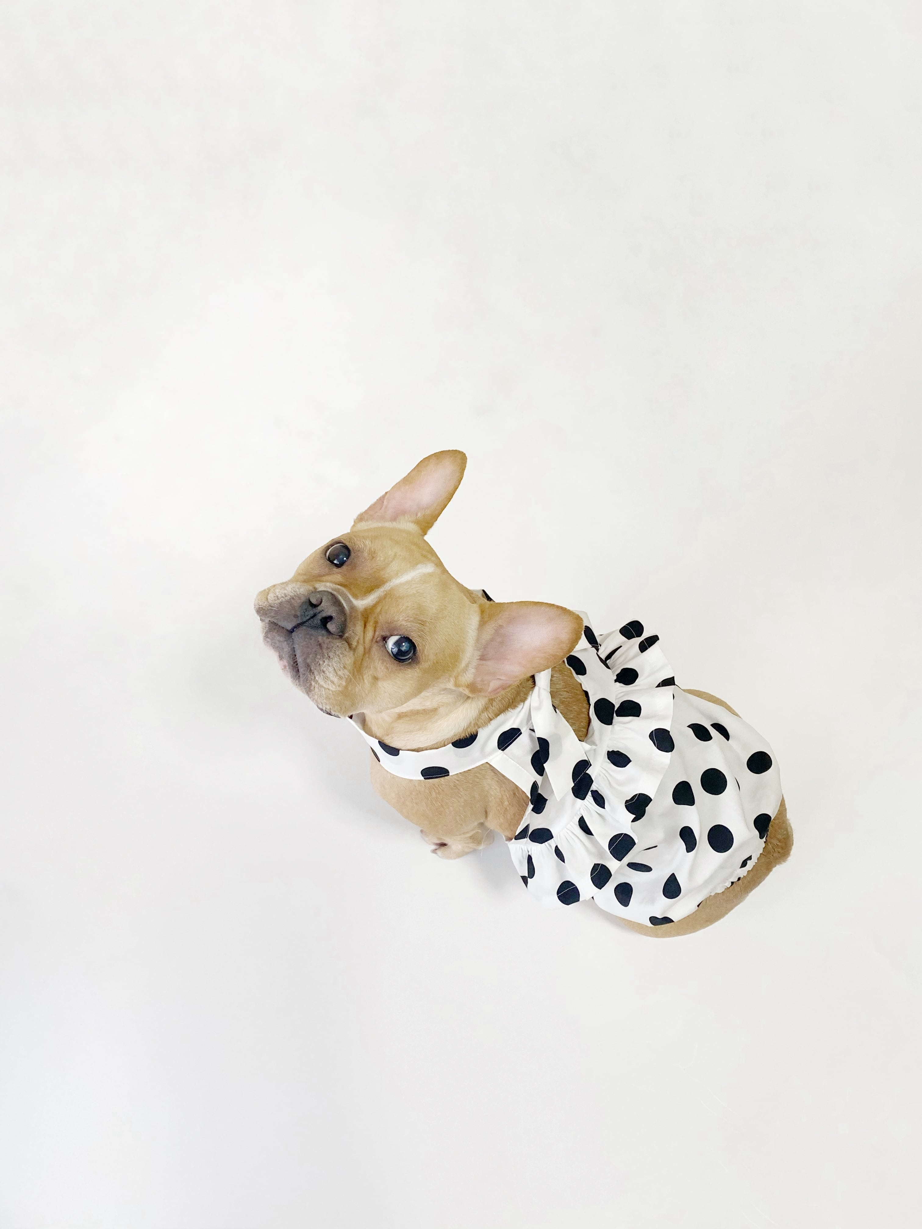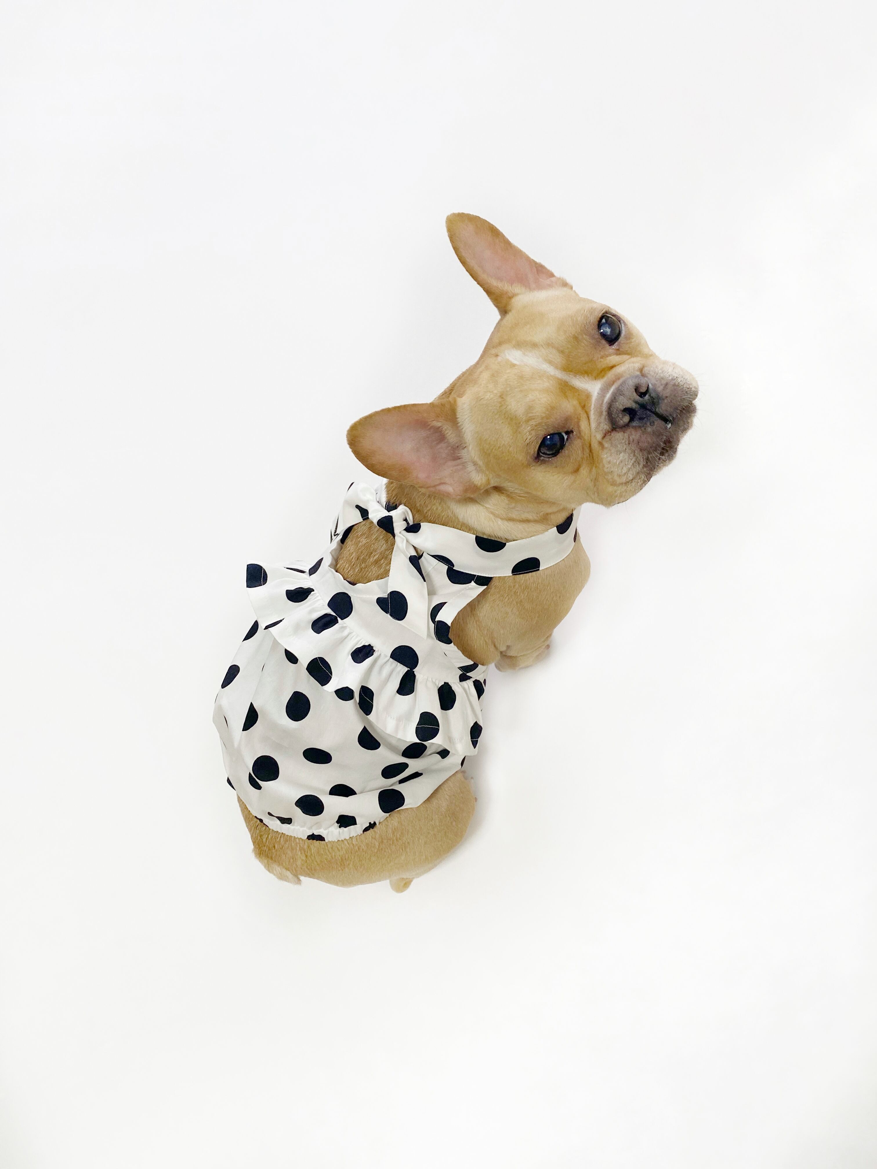 【クール】ひんやり♡ドットが可愛いバルーンワンピース♡ 犬服 犬服ハンドメイド クールエプロン お洒落 可愛い フレンチブルドッグ服 フレブル服 パグ