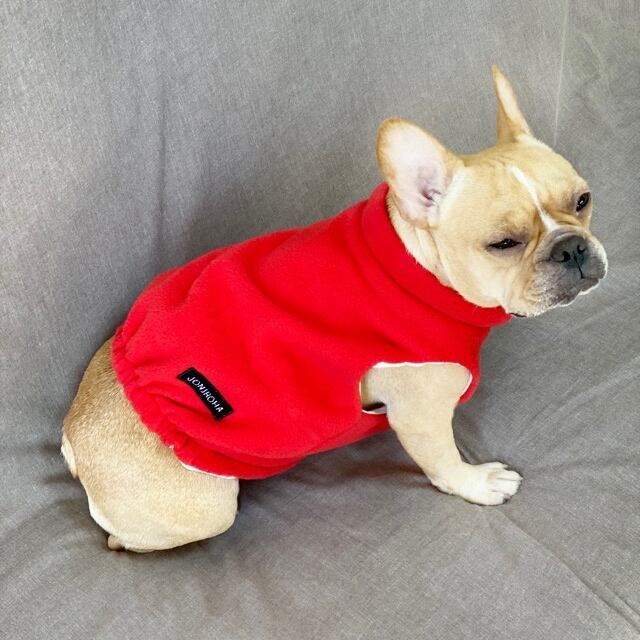 かるふわ♡あったかフリースベスト♡ レッド、犬服、犬服ハンドメイド、小型犬服、フレブル服、フレンチブルドッグ服、パグ服、アウター、秋冬服