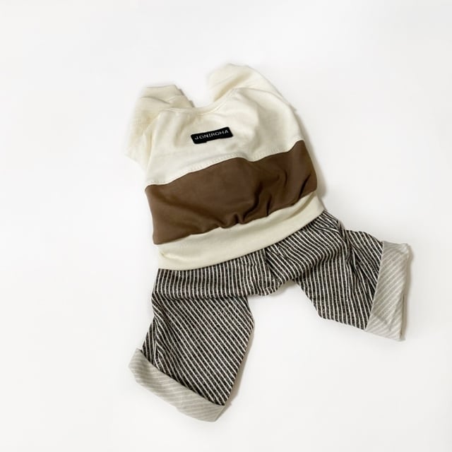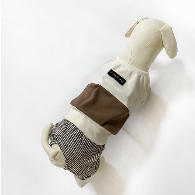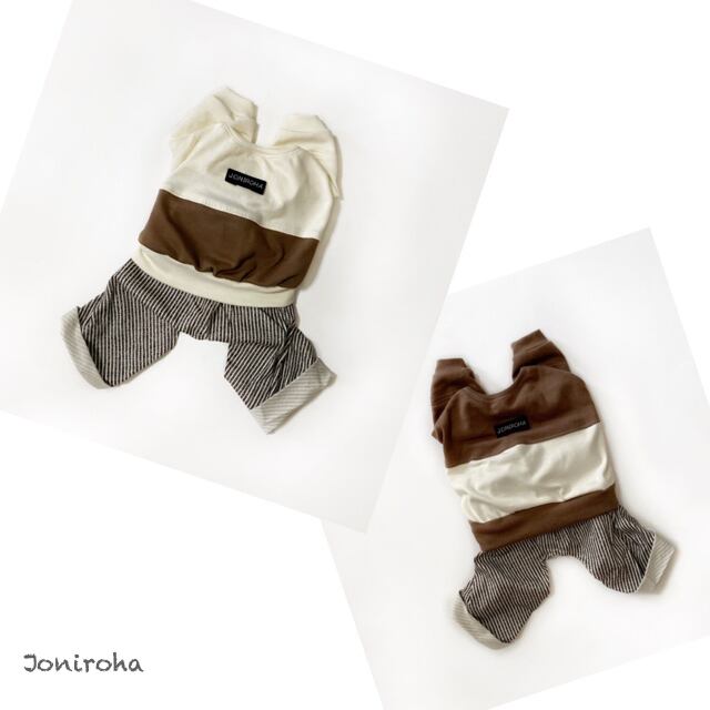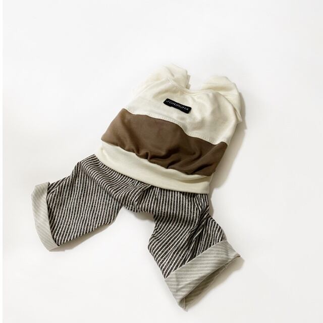 とってもお洒落なロンパース❤️ クリーム×チョコ 犬服 犬服ハンドメイド 秋冬 小型犬服 フレンチブルドッグ服 フレブル服 パグ服