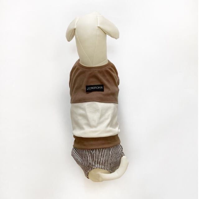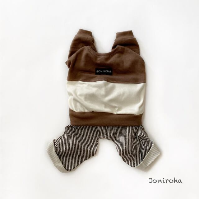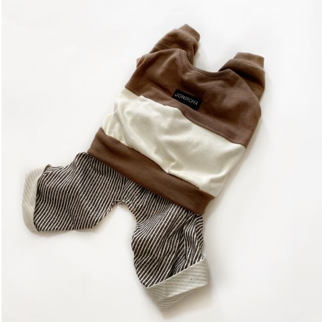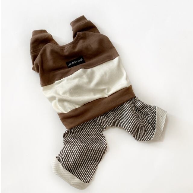 とってもお洒落なロンパース❤️ チョコ×クリーム 犬服 犬服ハンドメイド 秋冬 小型犬服 フレンチブルドッグ服 フレブル服 パグ服