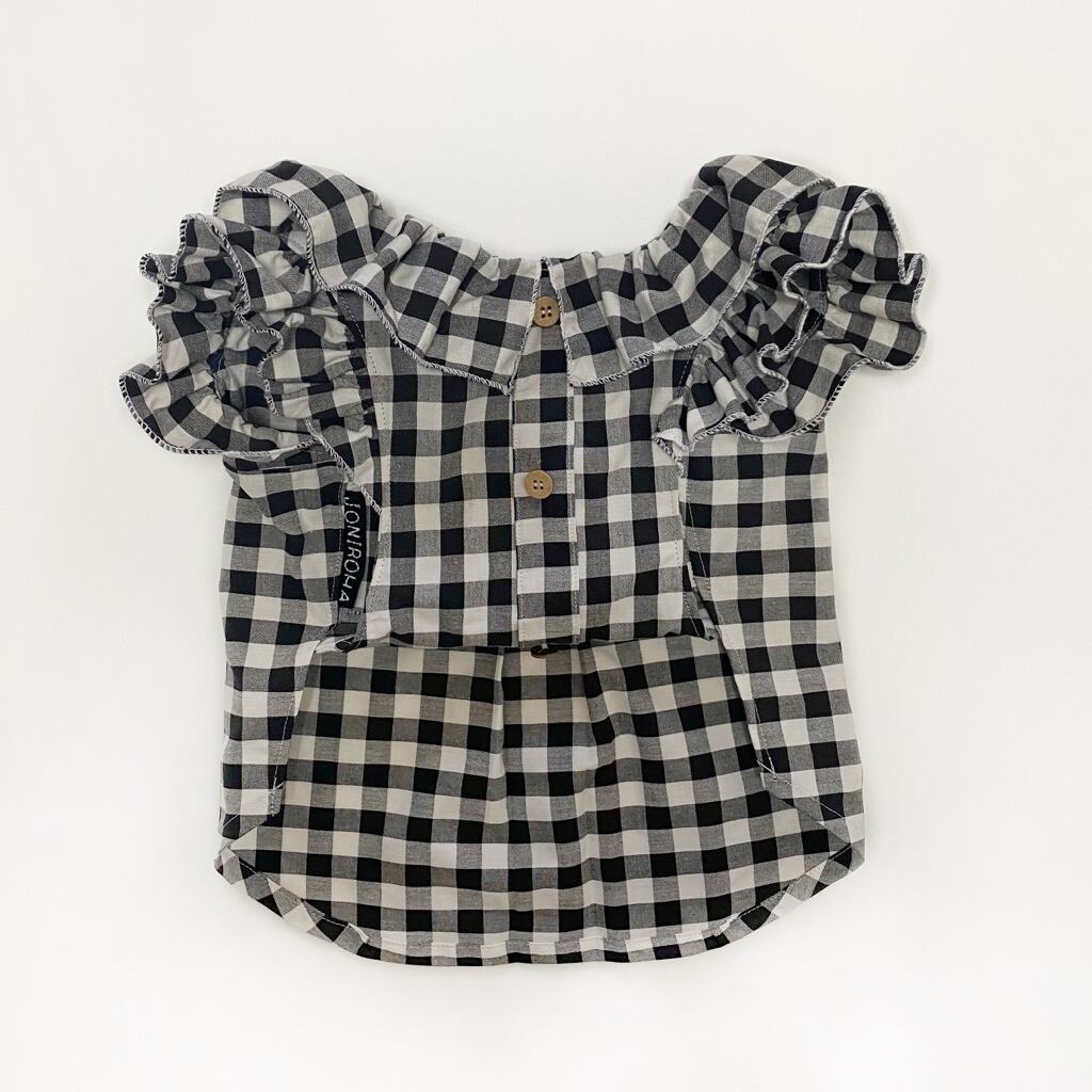 【クール無し】とってもお洒落なギンガムチェックフリルシャツ❤️ 犬服/犬服ハンドメイド/フレブル服/パグ服