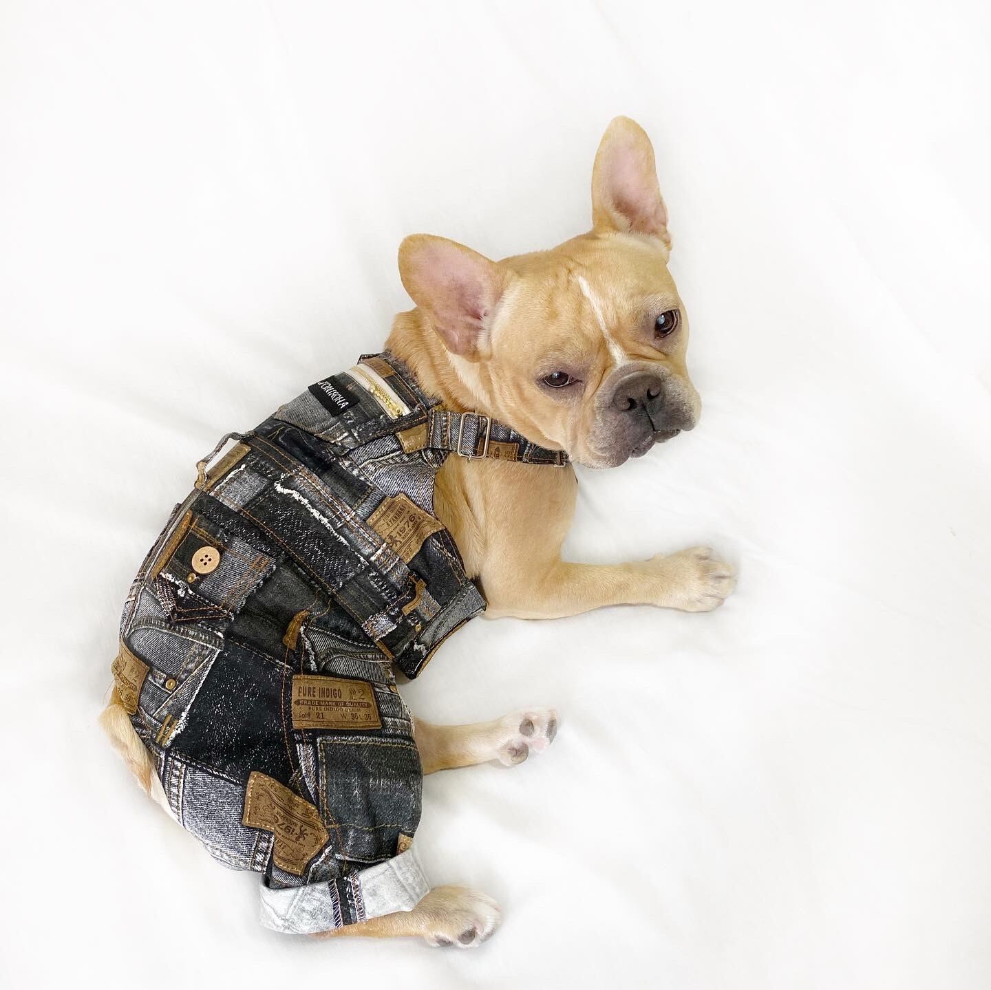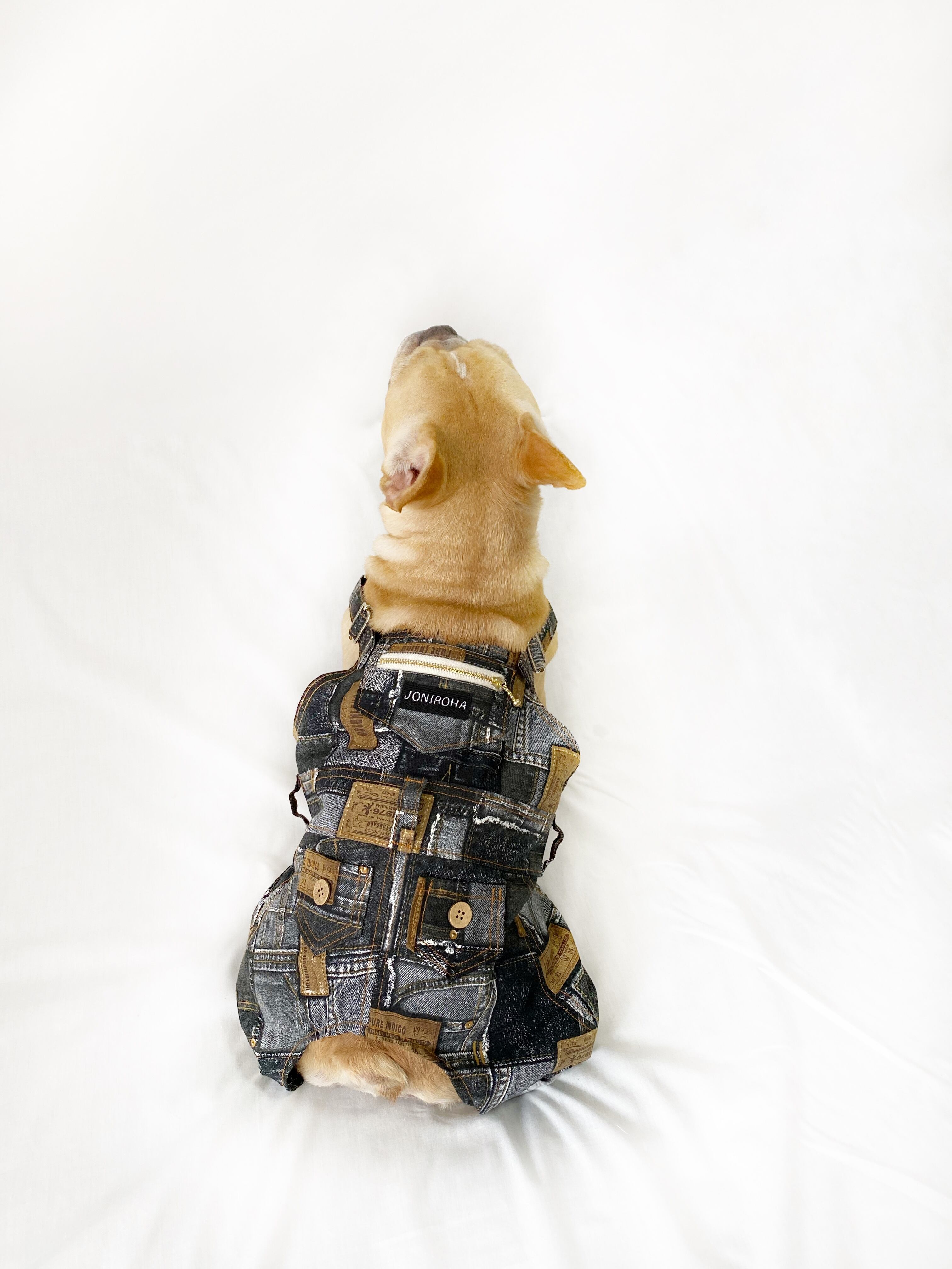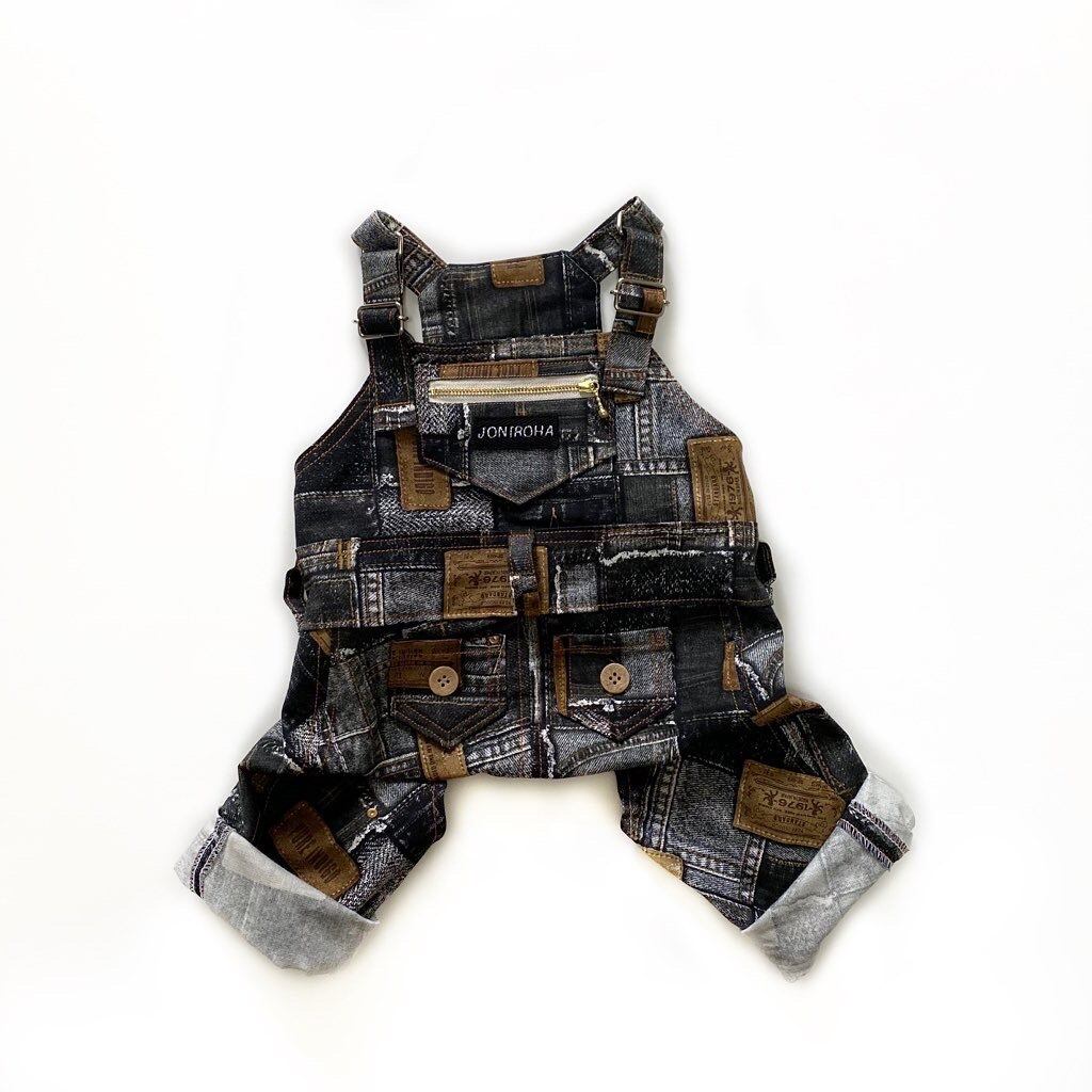 【クール無し】お洒落なオーバーオールパッチワークデニム♡ 犬服/犬服ハンドメイド/クール服/フレブル服/パグ服/小型犬服