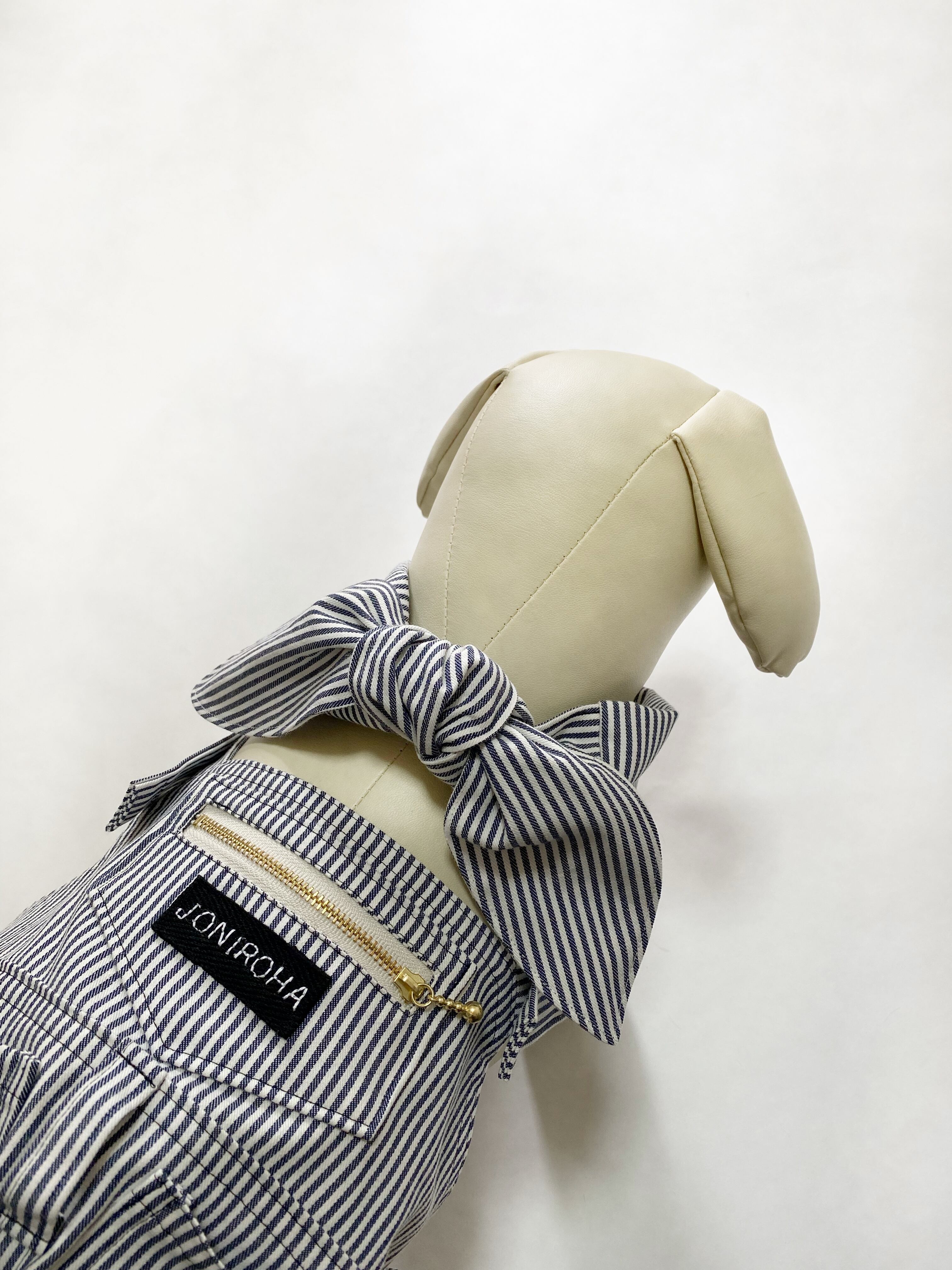 【クール】お洒落なヒッコリーリボン♡ 犬服/犬服ハンドメイド/クール服/フレブル服/パグ服/小型犬服