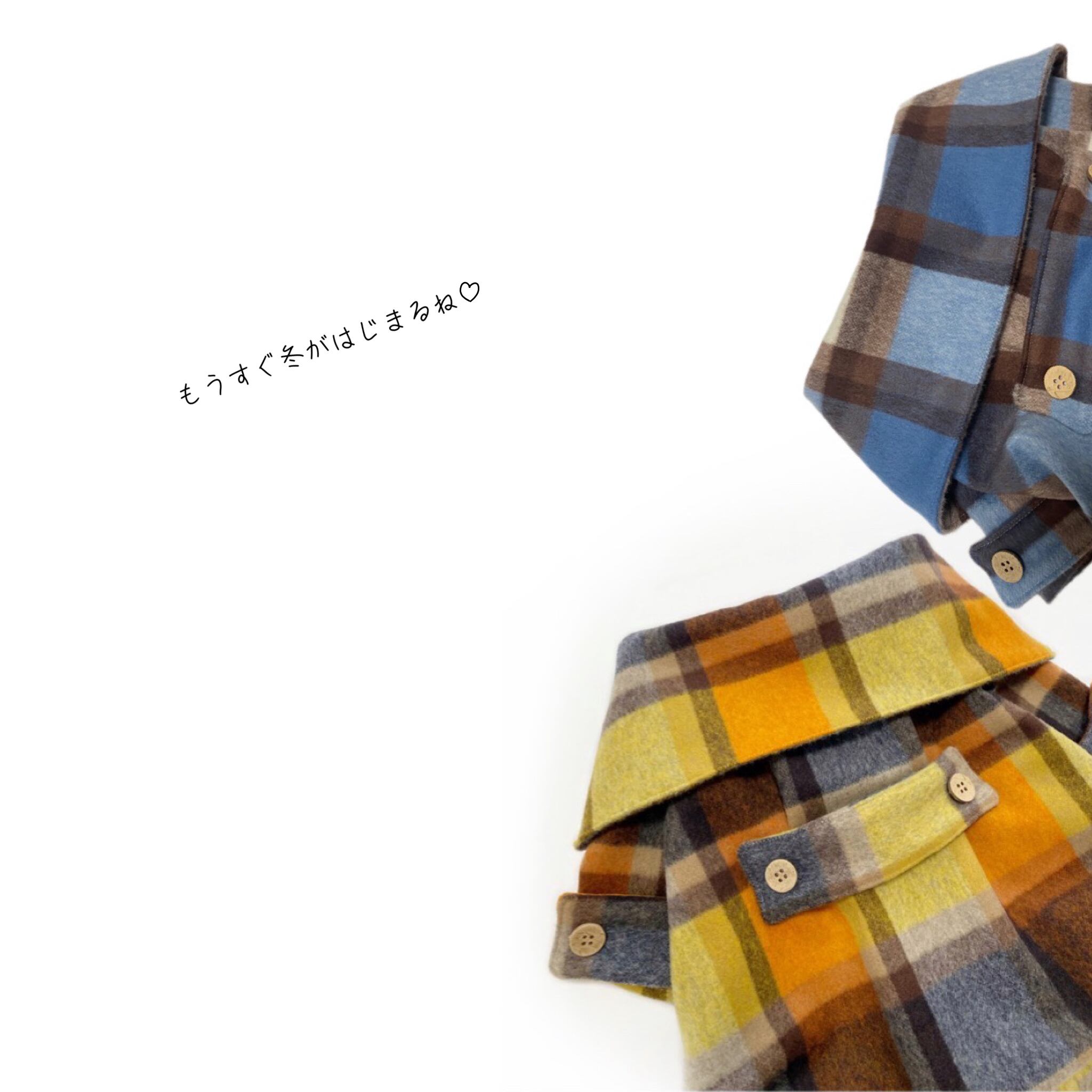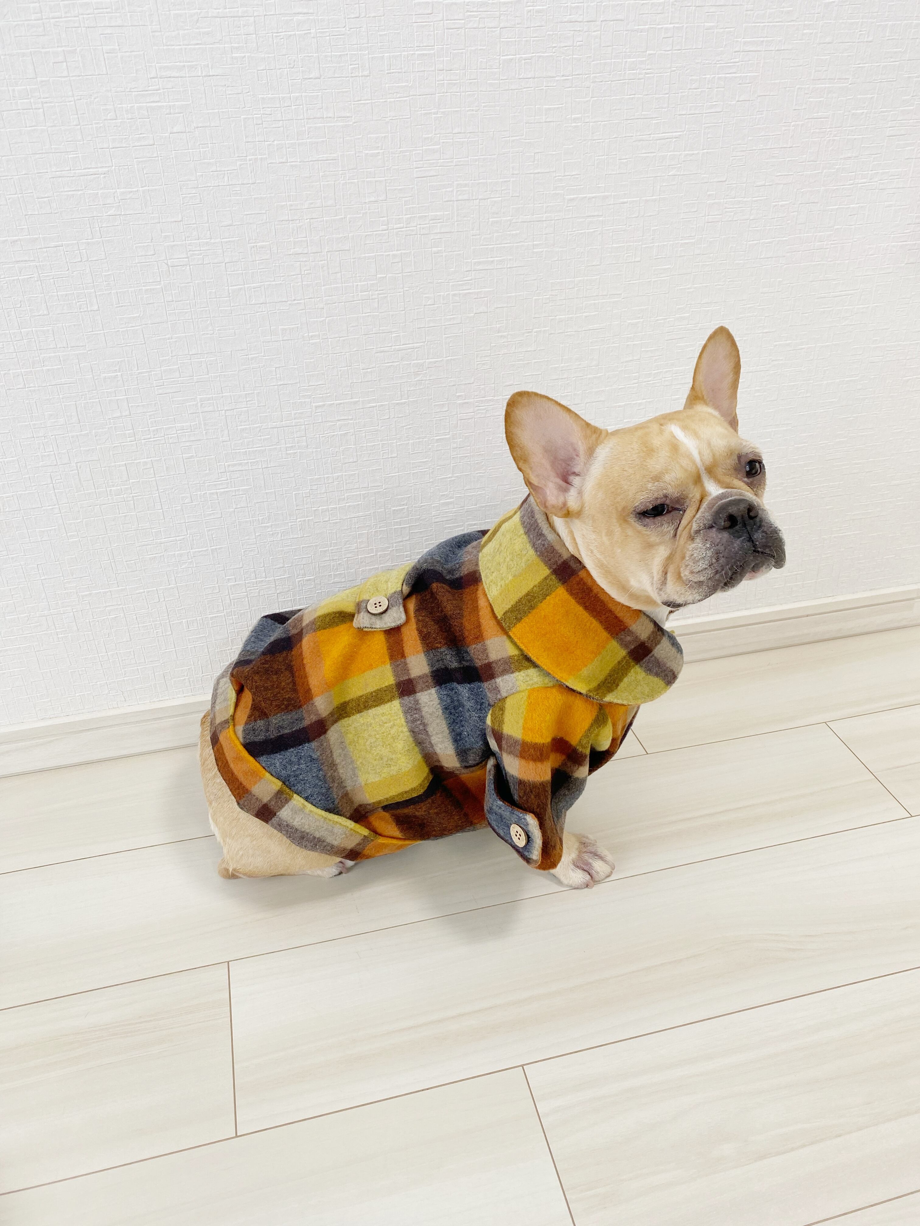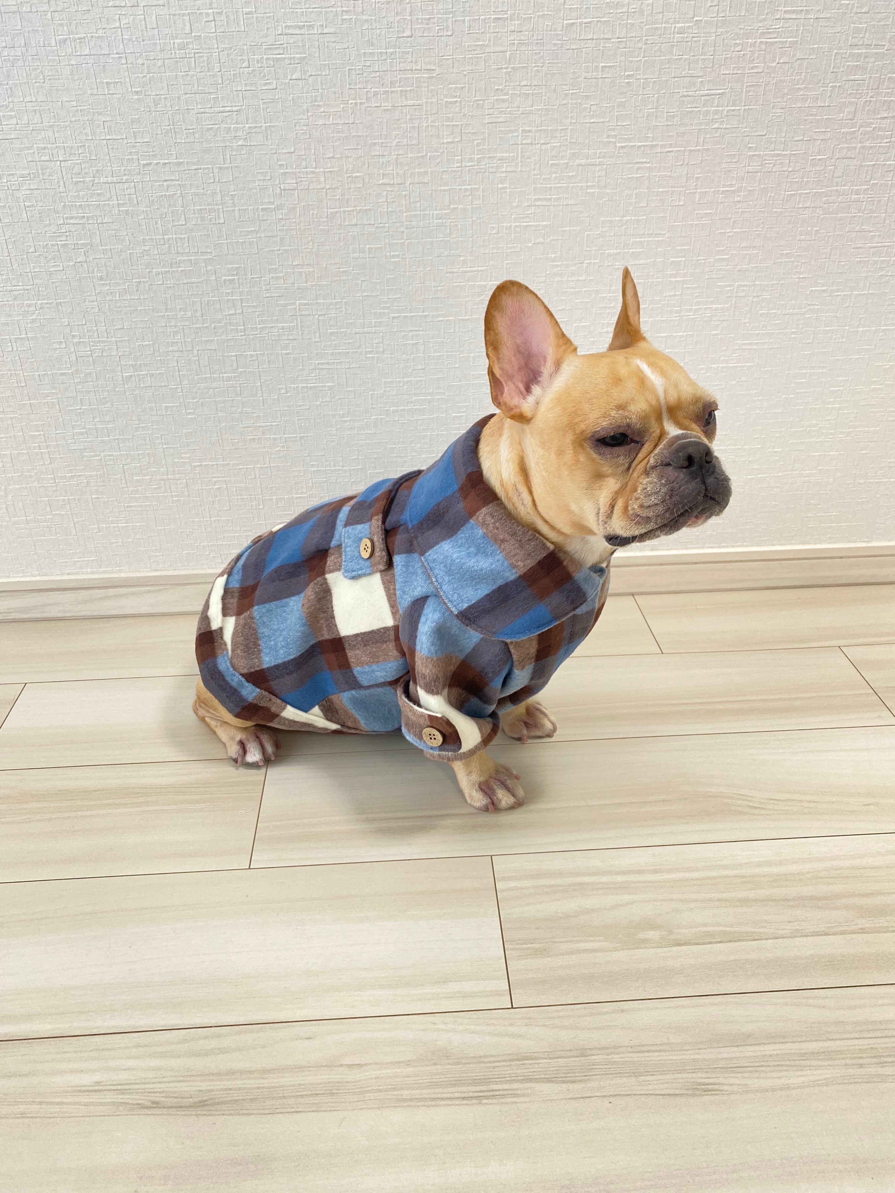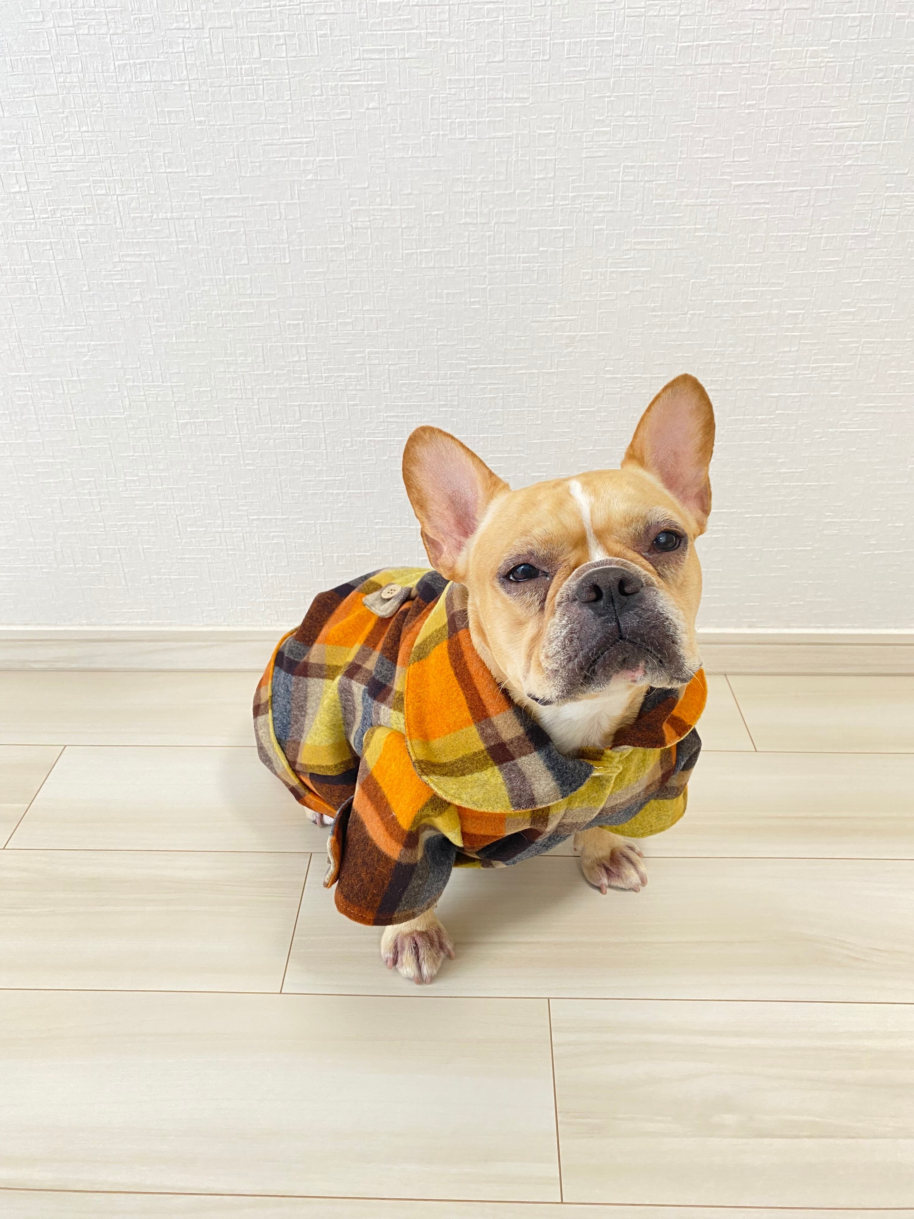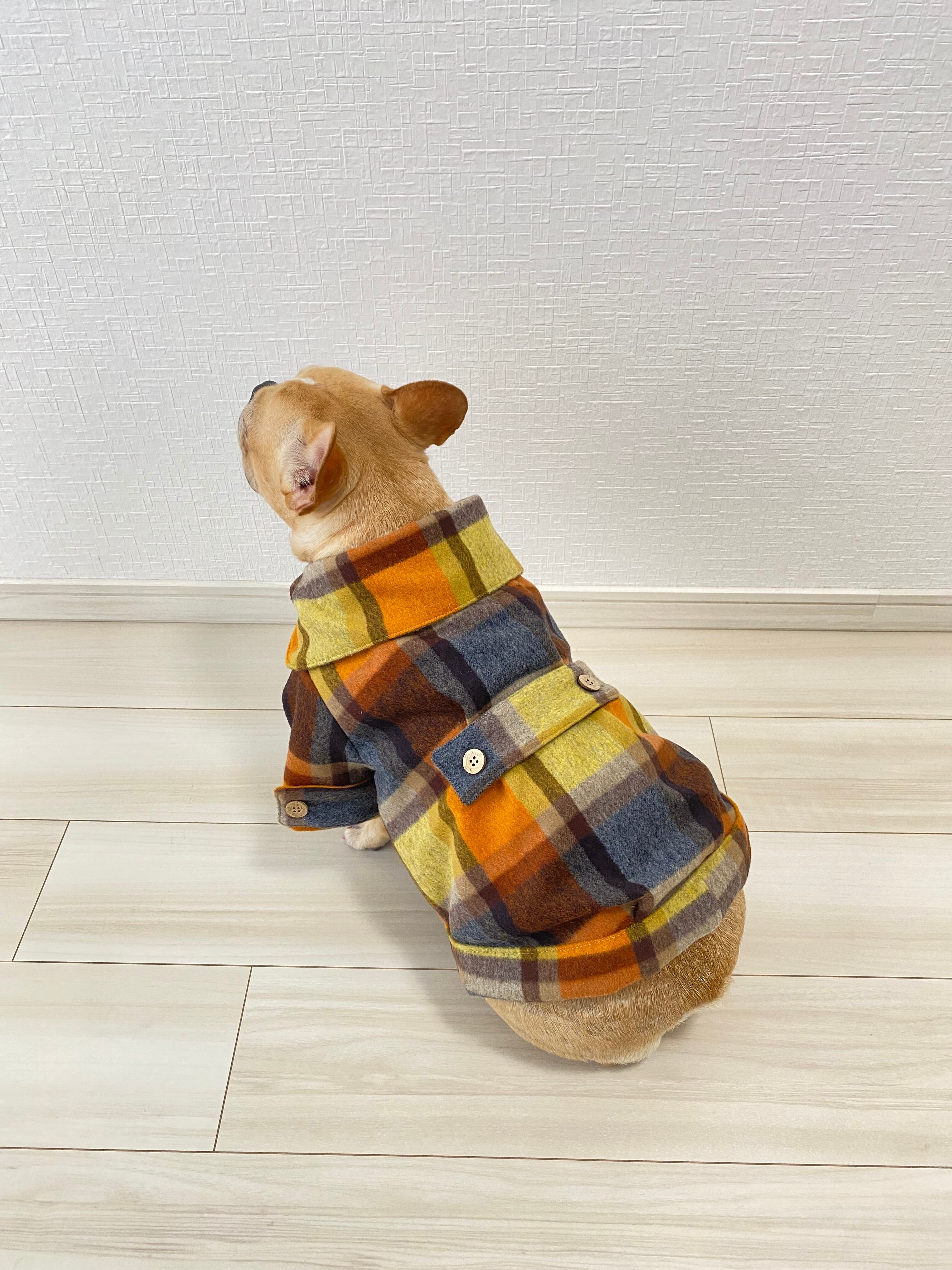おおきなエリのウールシャギーコート❤️ オレンジ ブルー 犬服 犬服ハンドメイド コート アウター 秋冬 フレンチブルドッグ服 フレブル服 パグ服 小型犬服