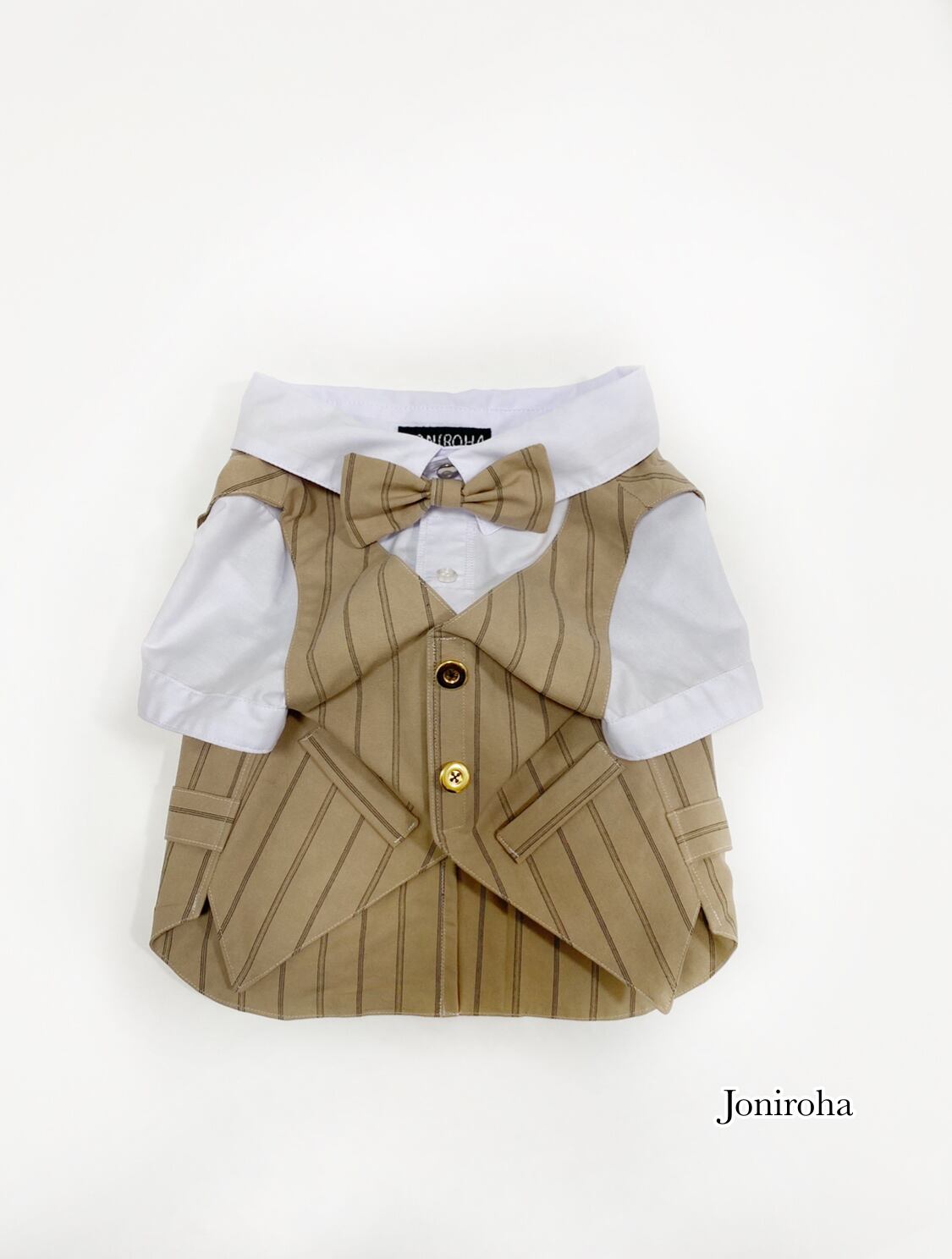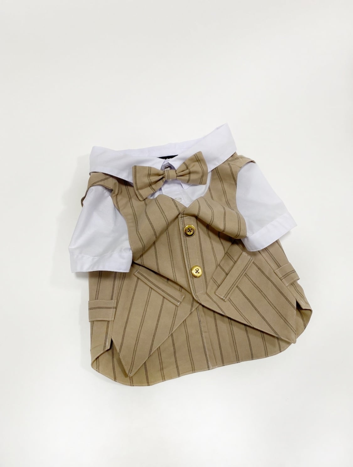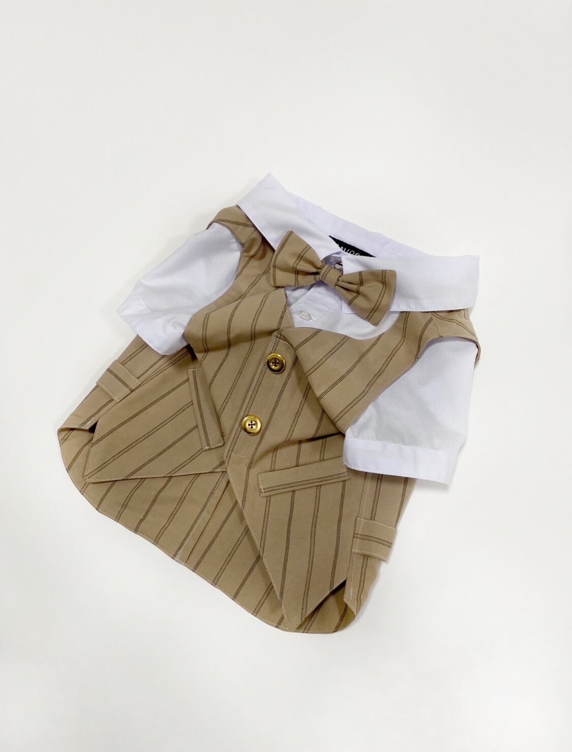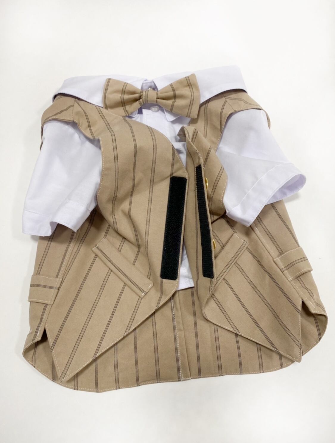 【再販】とってもお洒落な重ね着風スーツベスト♡ カフェブラウン 蝶ネクタイ付き 犬服 犬服ハンドメイド 小型犬服 フレンチブルドッグ服 フレブル服 パグ服 ベスト 記念日 誕生日、お呼ばれ服、タキシード