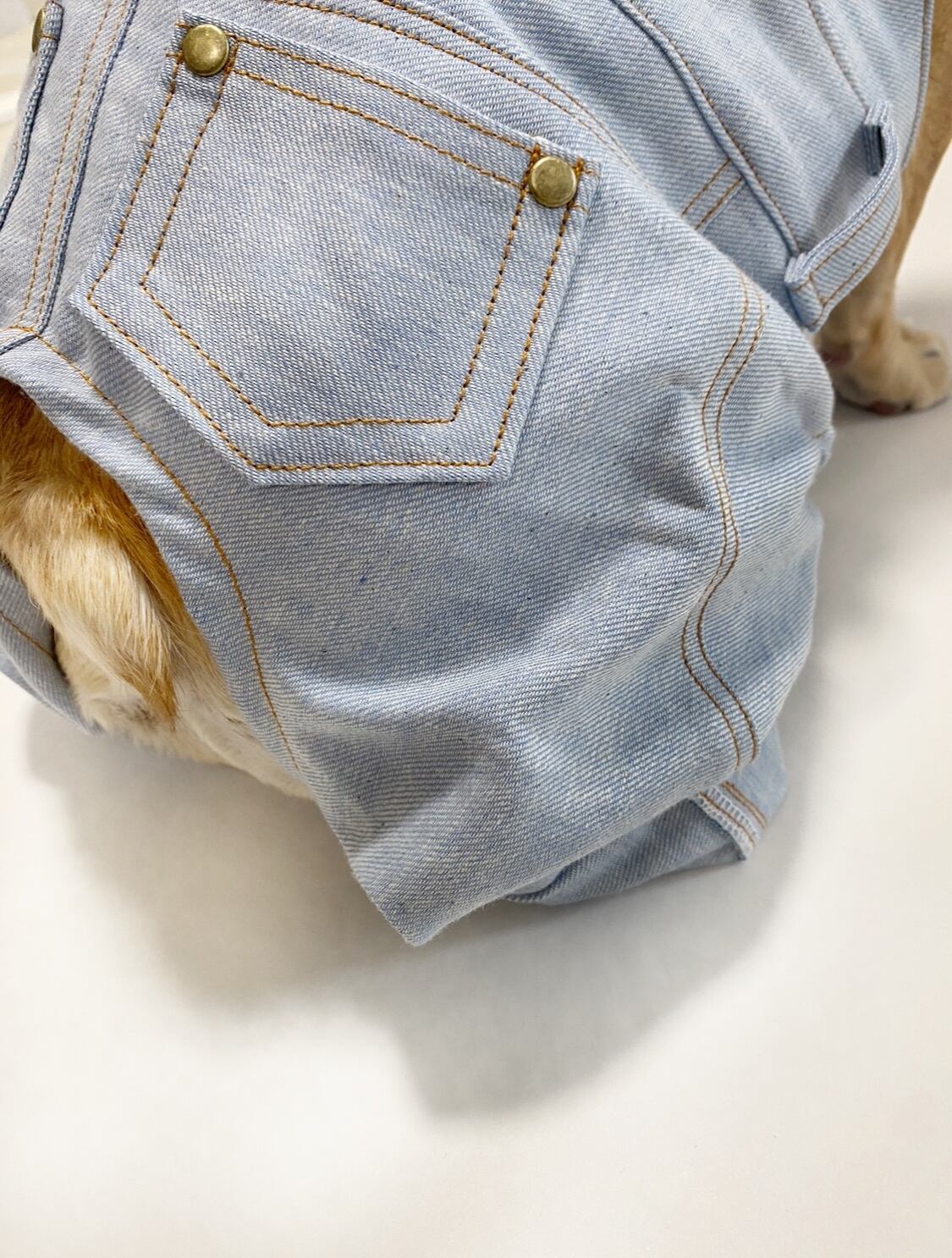 【クール】ブリーチデニム♡お洒落なオーバーオールパンツ♡ 犬服/犬服ハンドメイド/熱中症対策/リアルデニム/ソフトデニム/10オンス/フレブル服/パグ服/小型犬服