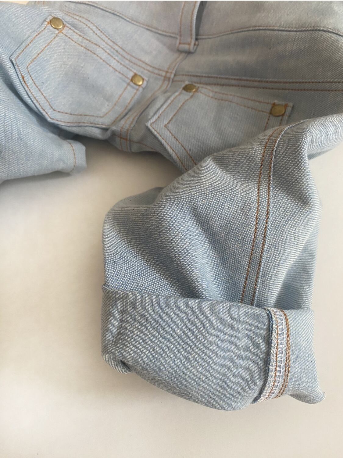 ジーンズ生地にすると、普通地よりほんの少し薄手。でもしっかりしてます。