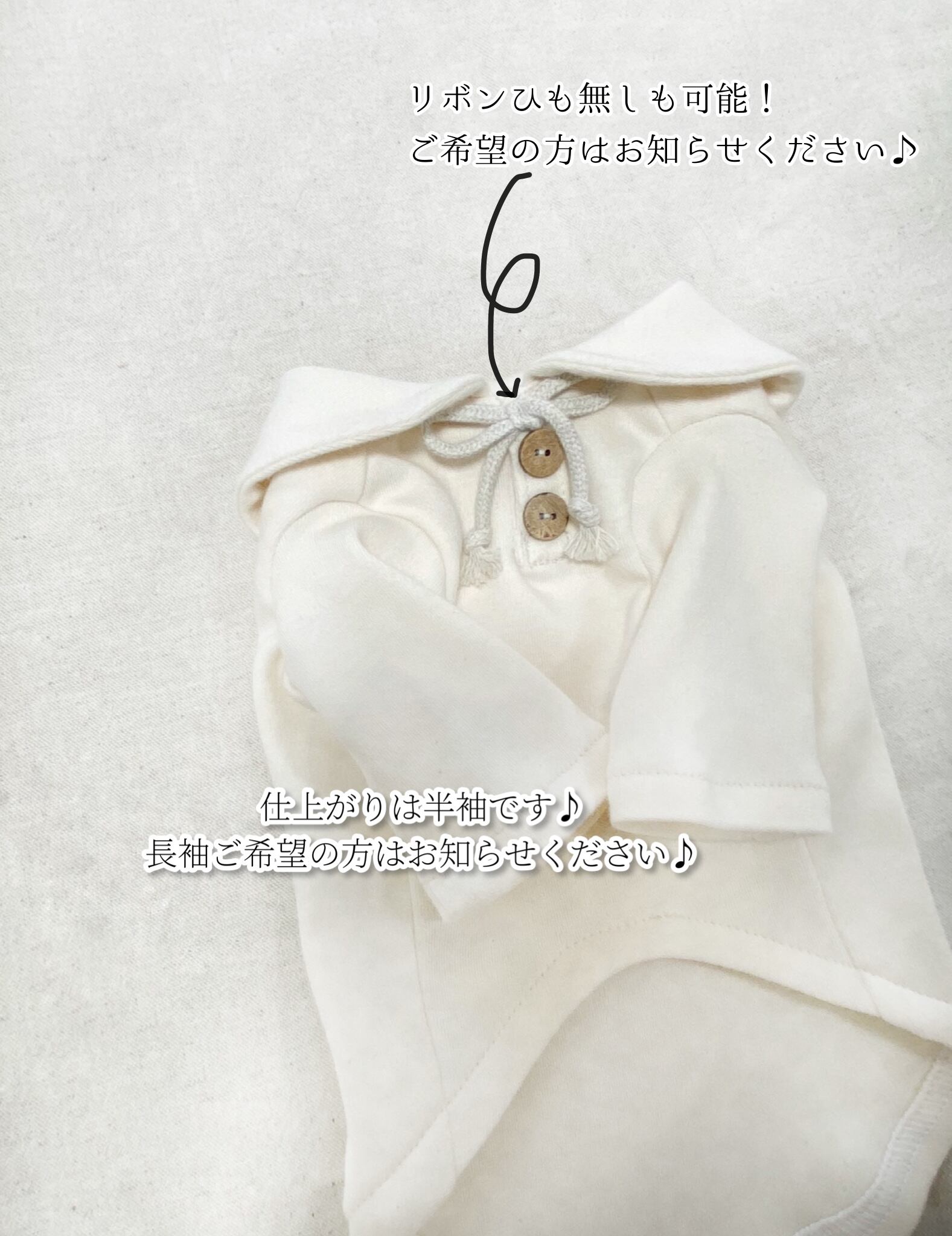 長袖にしたり、リボン無しにしたりとのご希望にもお応え可能です♪