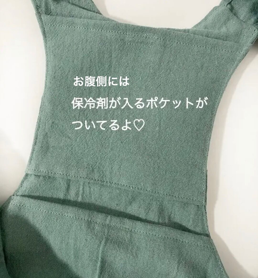 お腹側には保冷剤入れポケットが付いているデザインとなります❤️