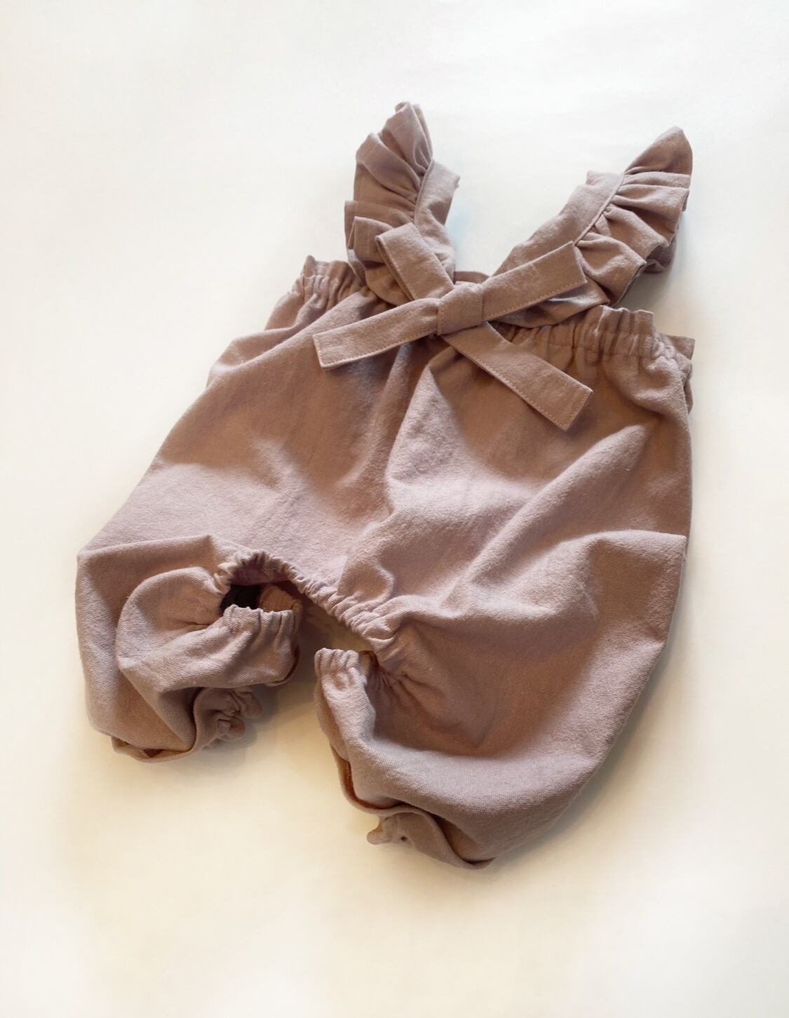 生地自体に伸縮性はありませんが、お腹回りがゴムになっているので着脱しやすいです。