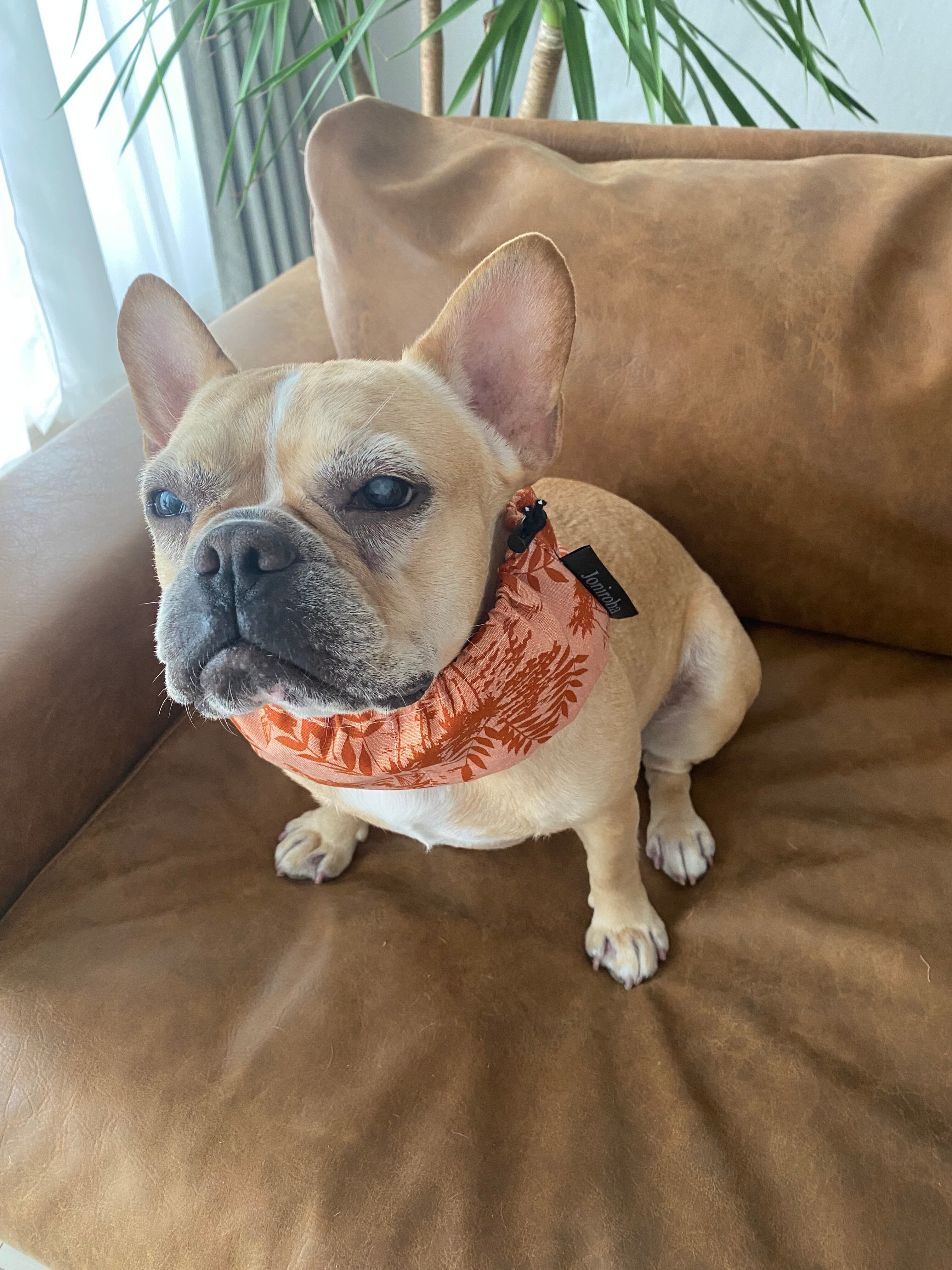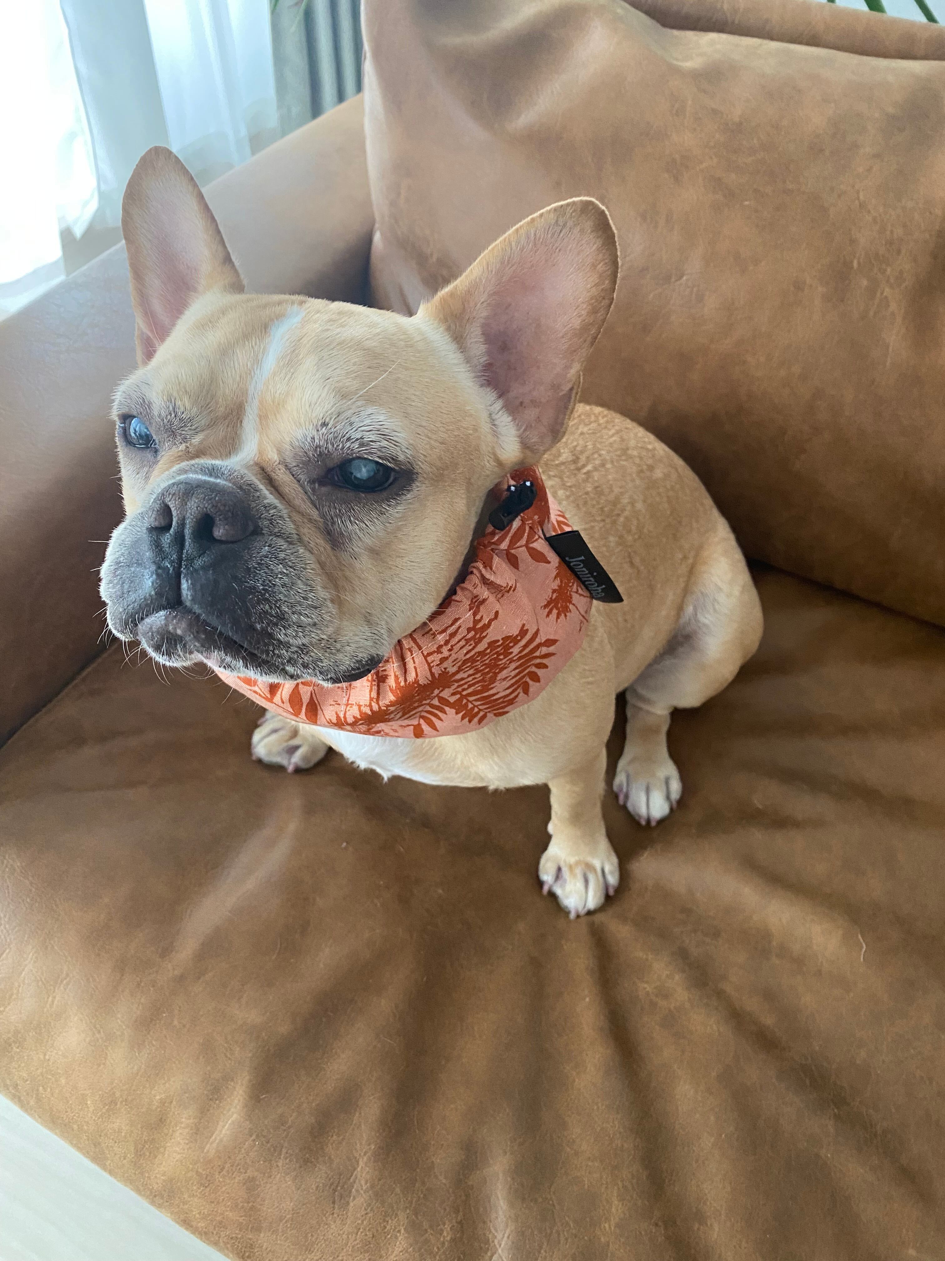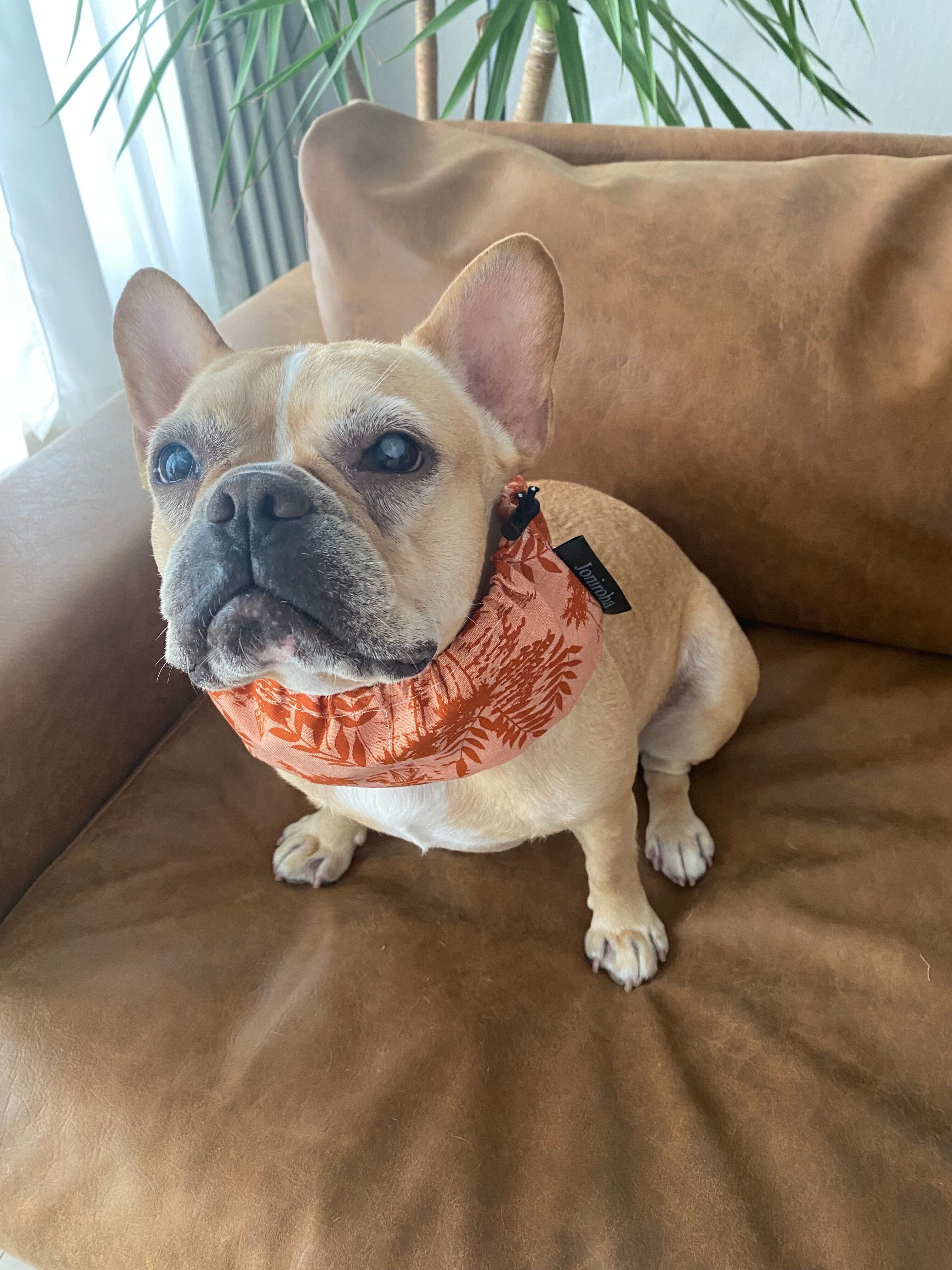 【クール】Hawaii Aloha♡お洒落なクールスヌード❤️ Alohaオレンジ 犬服 犬服ハンドメイド 保冷剤が入る 熱中症対策 フレンチブルドッグ服 パグ服 小型犬服 プレゼント