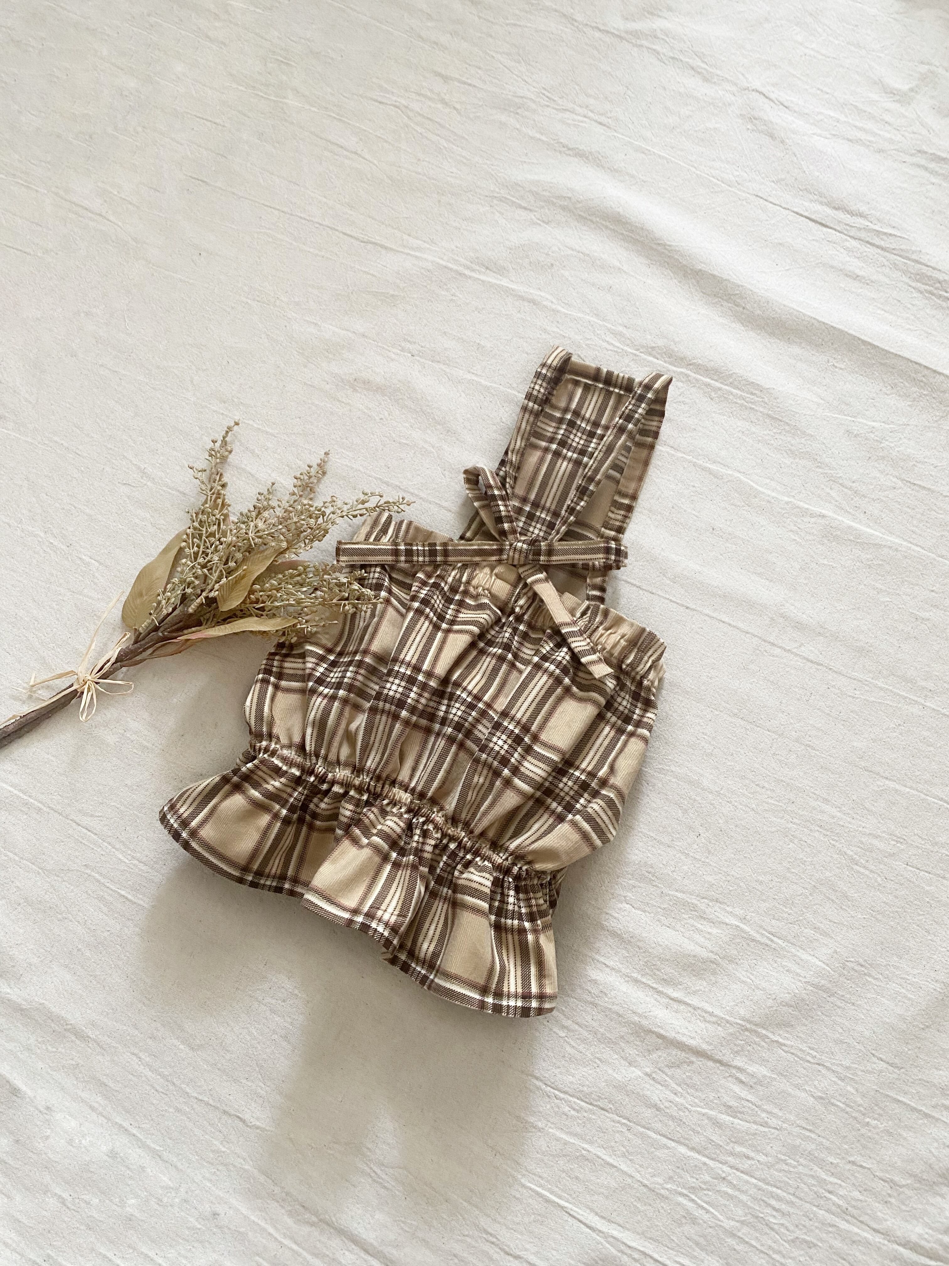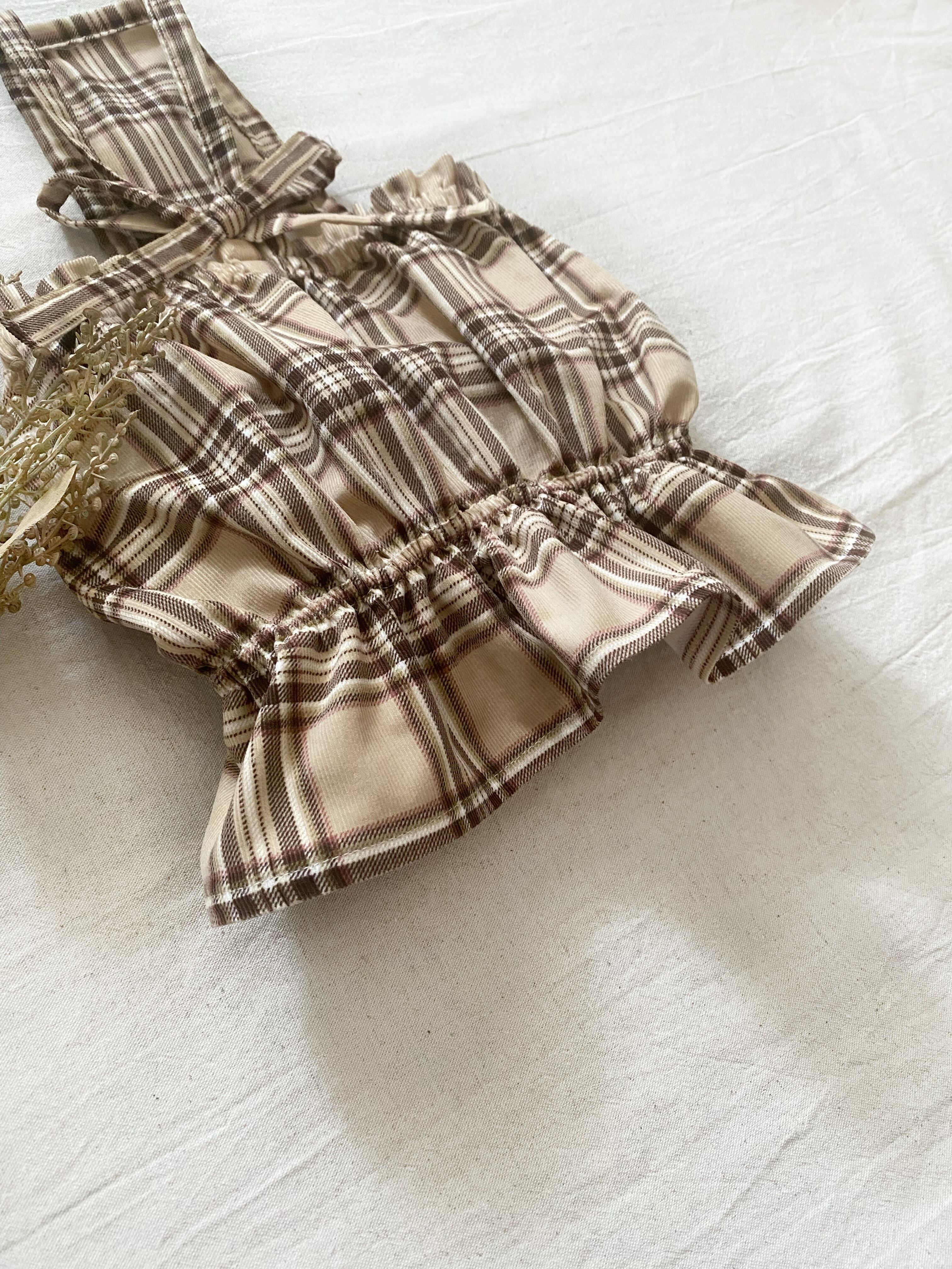 お洒落なタータンシャツコールのカボチャワンピ❤️ 犬服 犬服ハンドメイド 犬服手作り サロペット フレンチブルドッグ服 フレブル服 パグ服 小型犬服 薄手コーデュロイ 誕生日プレゼント