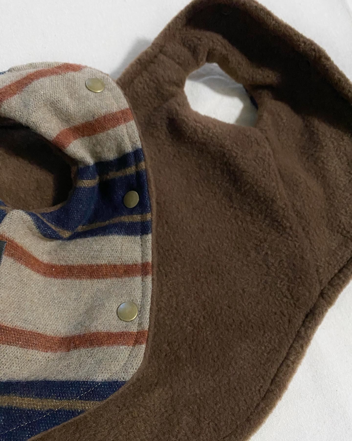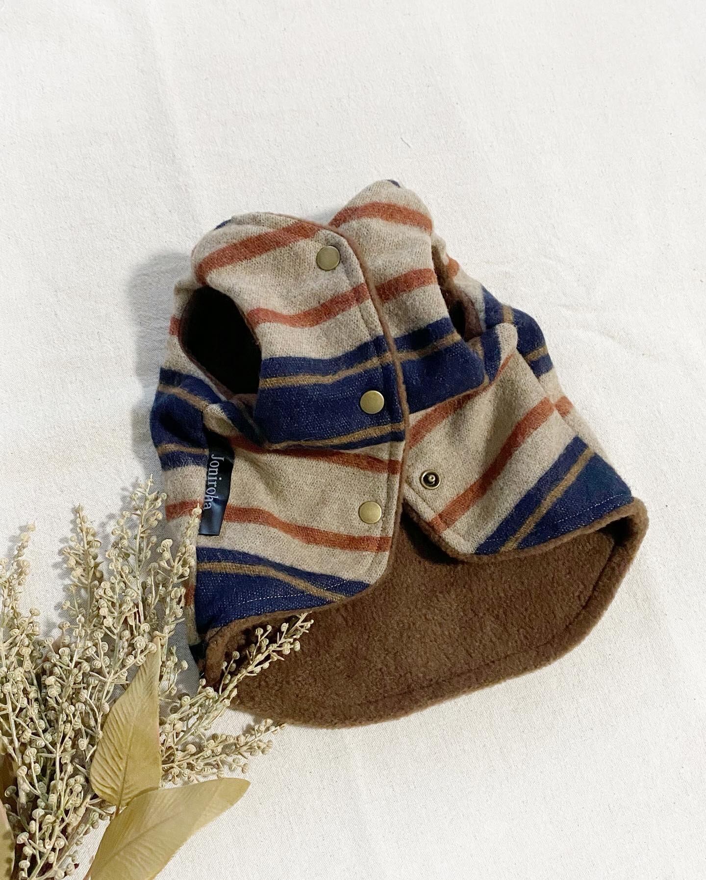 少し起毛したウール混の生地と、裏地には毛玉になりにくいフリース生地を使いとーってもぬくぬくなベストです✨