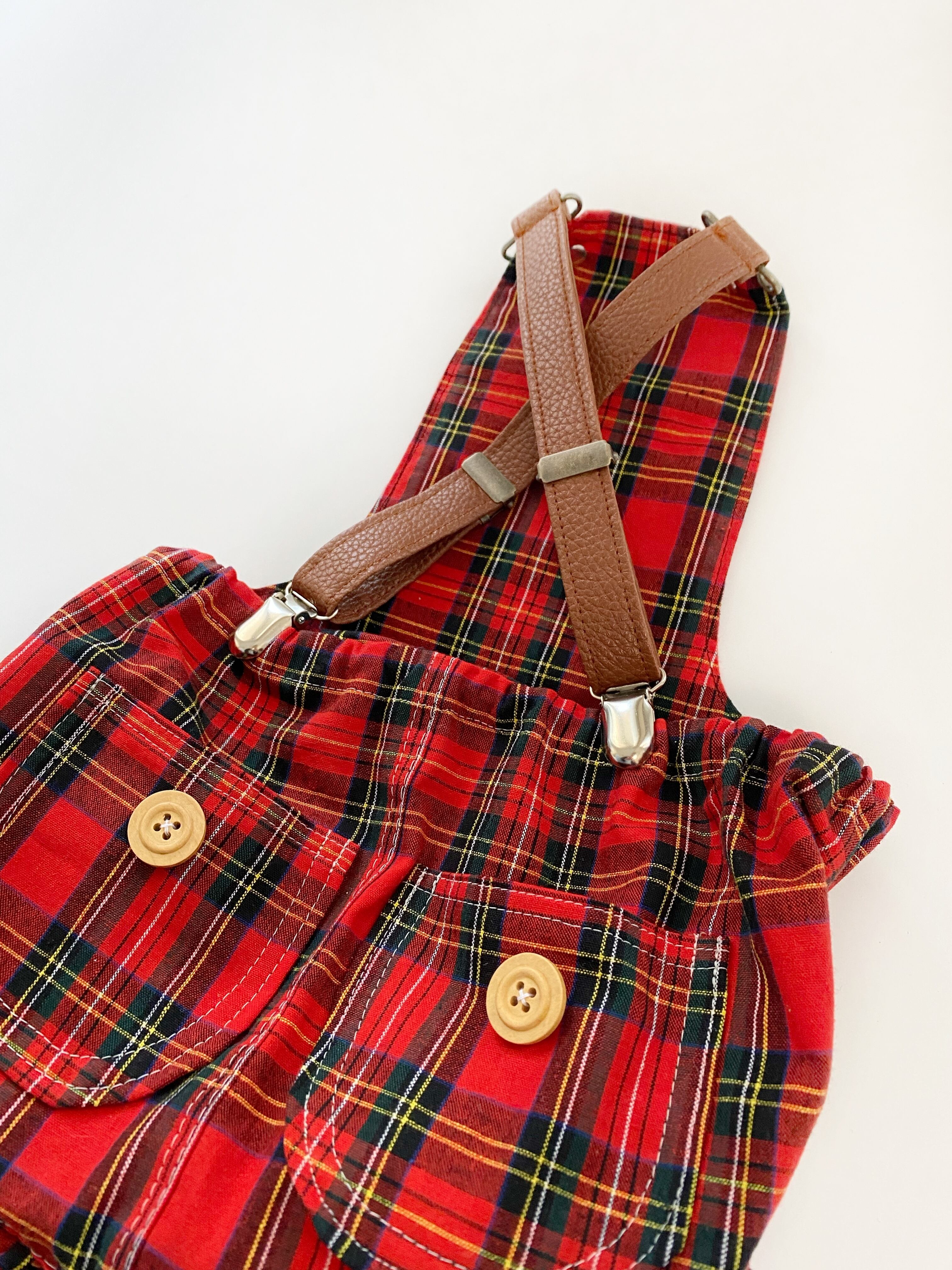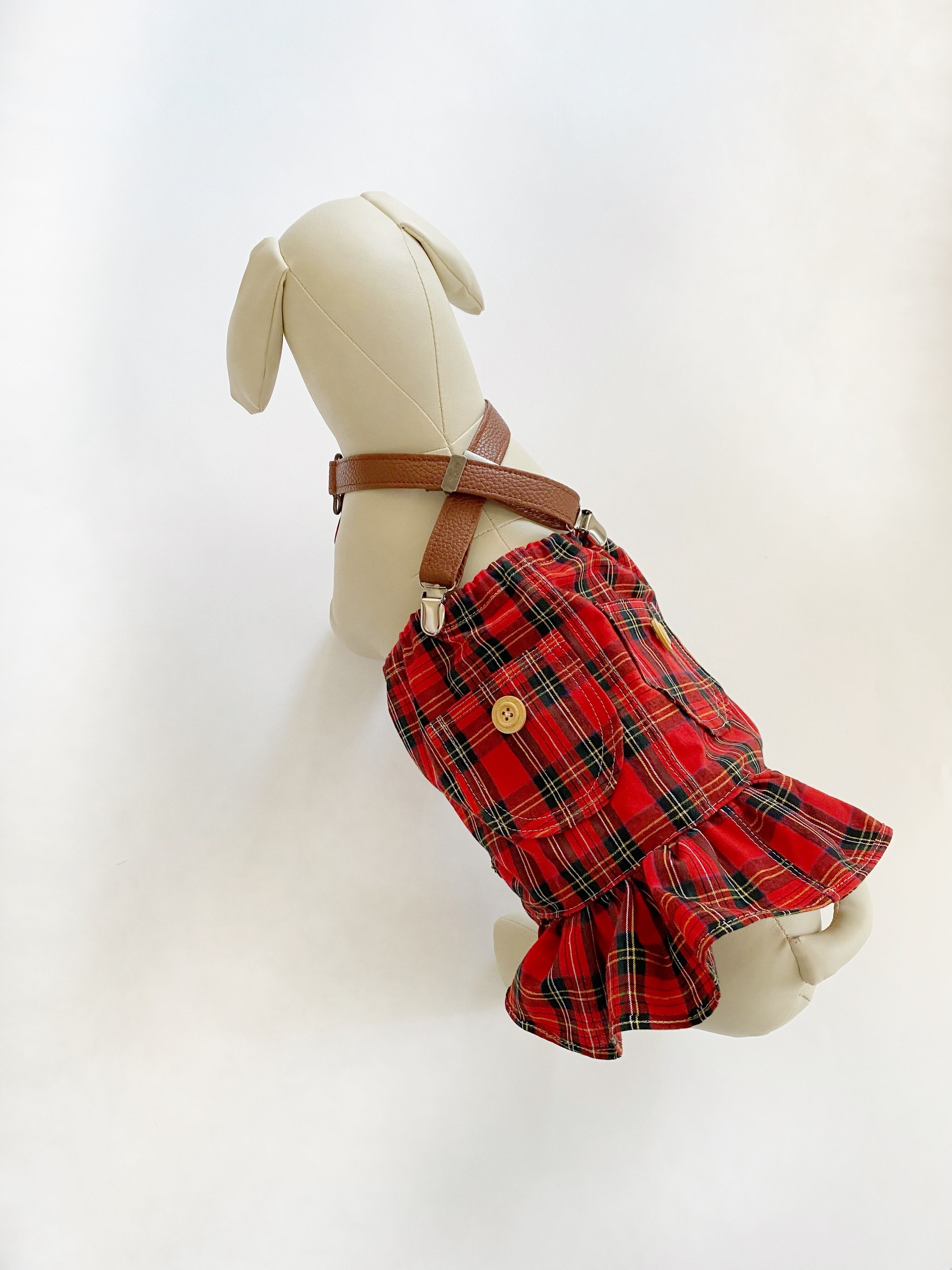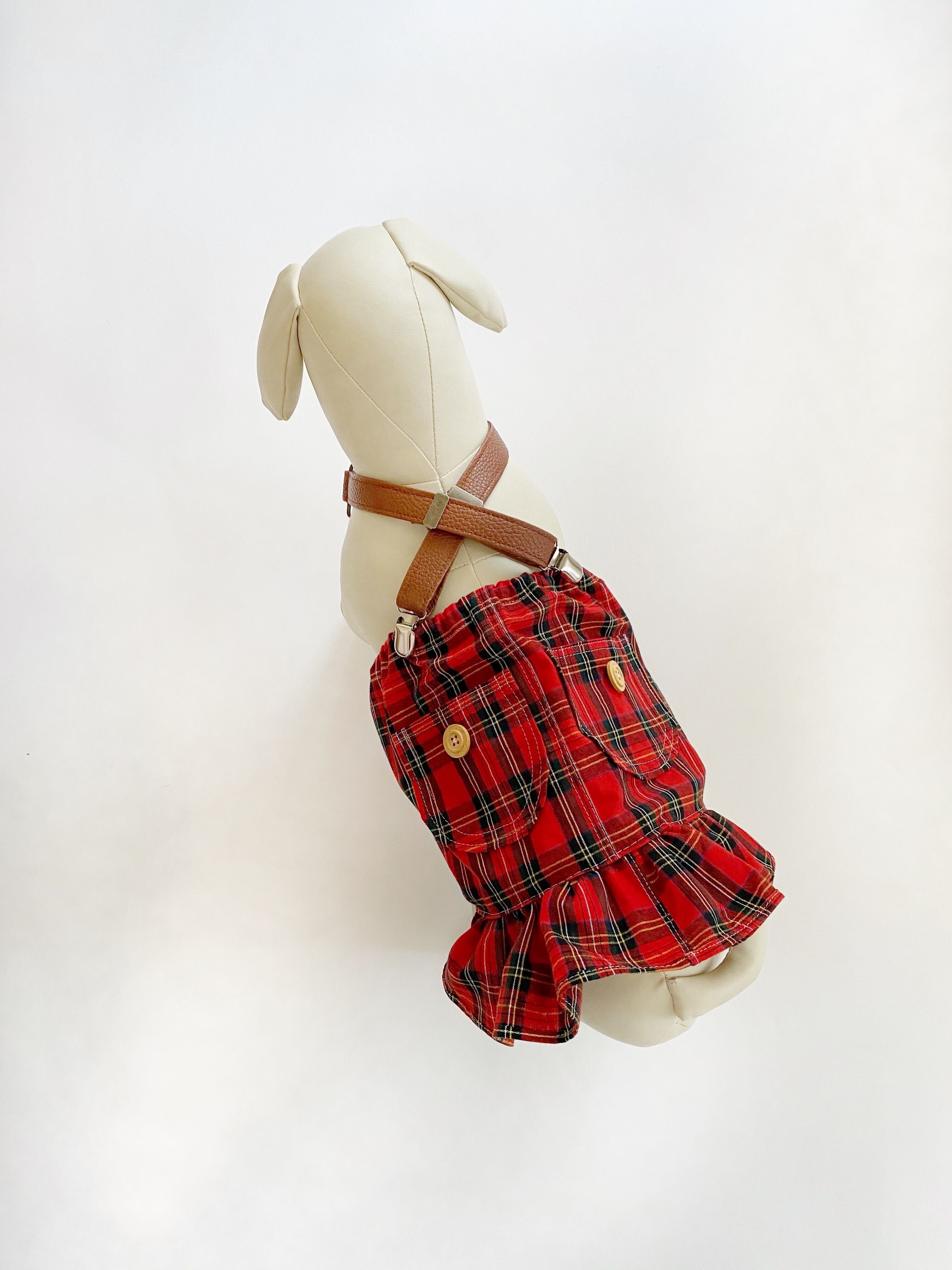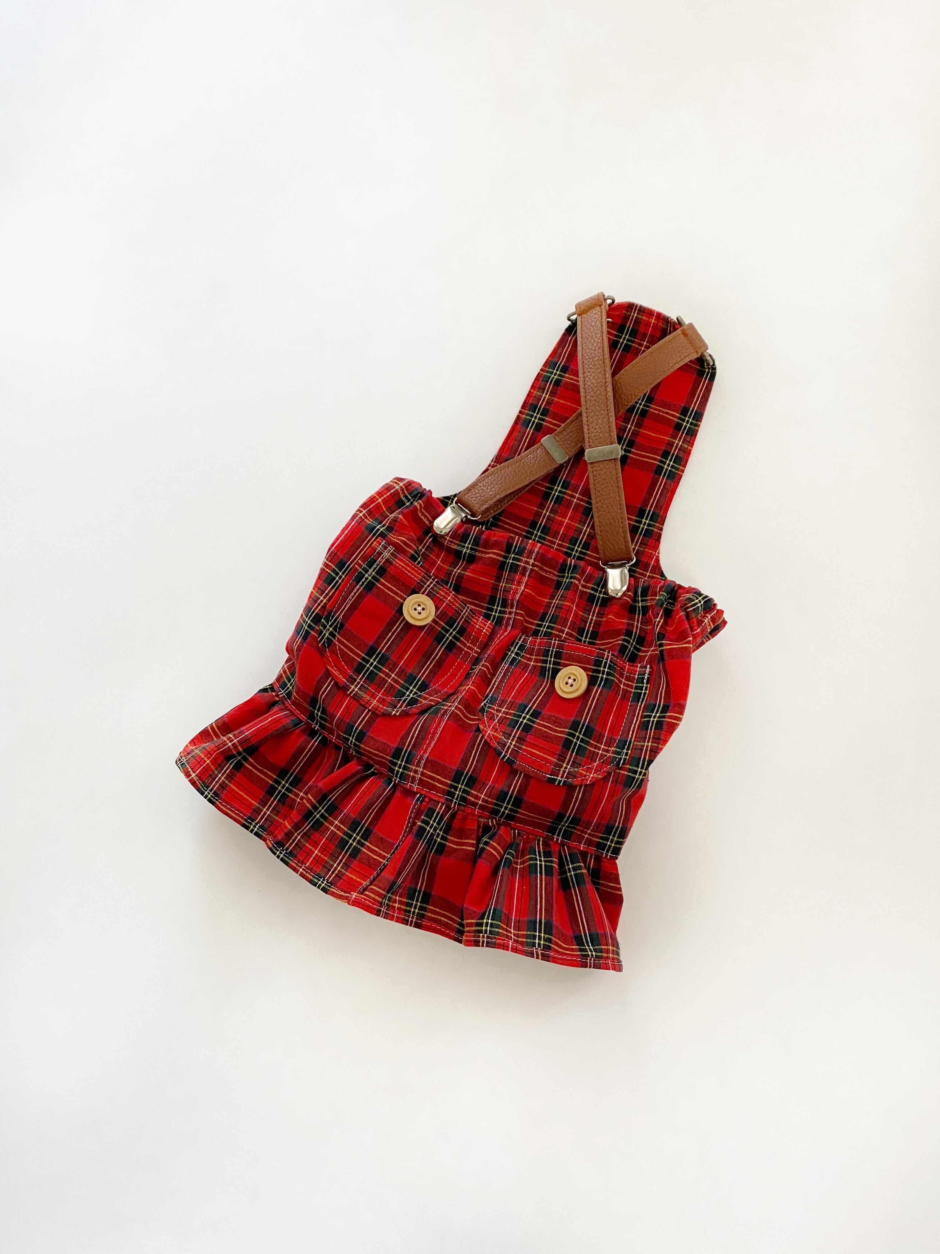 【クール有無選べる】サスペンダー付きタータンチェックサロペットパンツ❤️ 犬服 犬服ハンドメイド オーバーオール フレンチブルドッグ服 パグ服 小型犬服 プレゼント