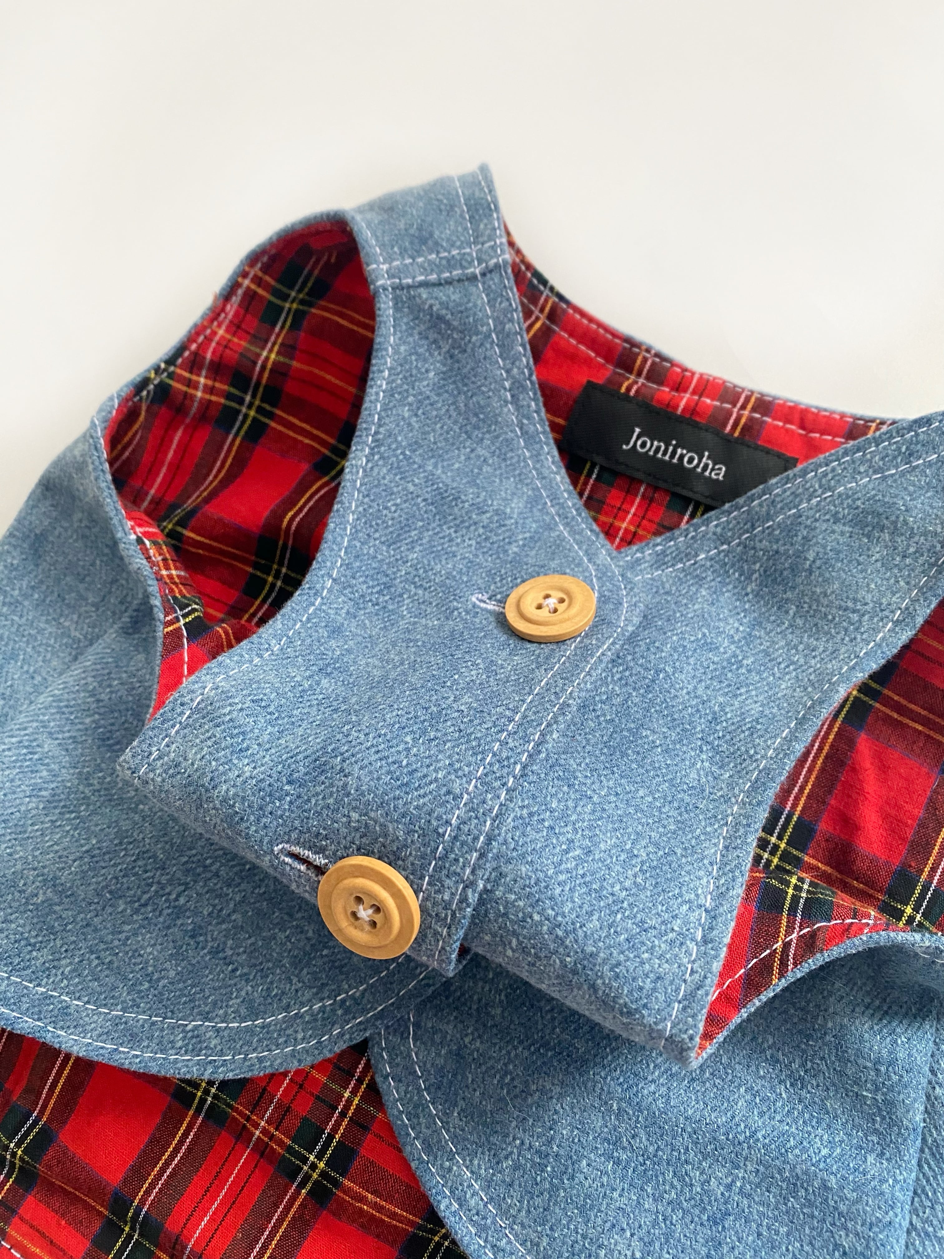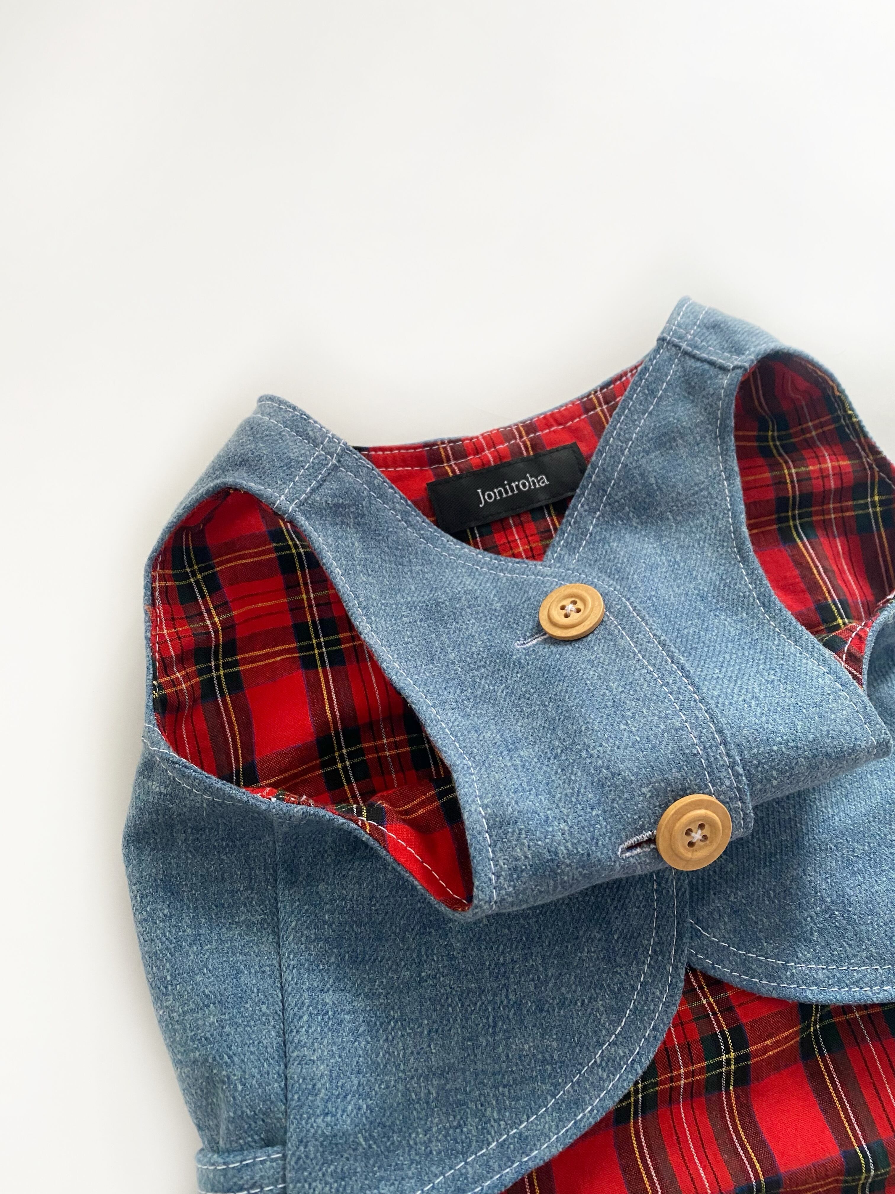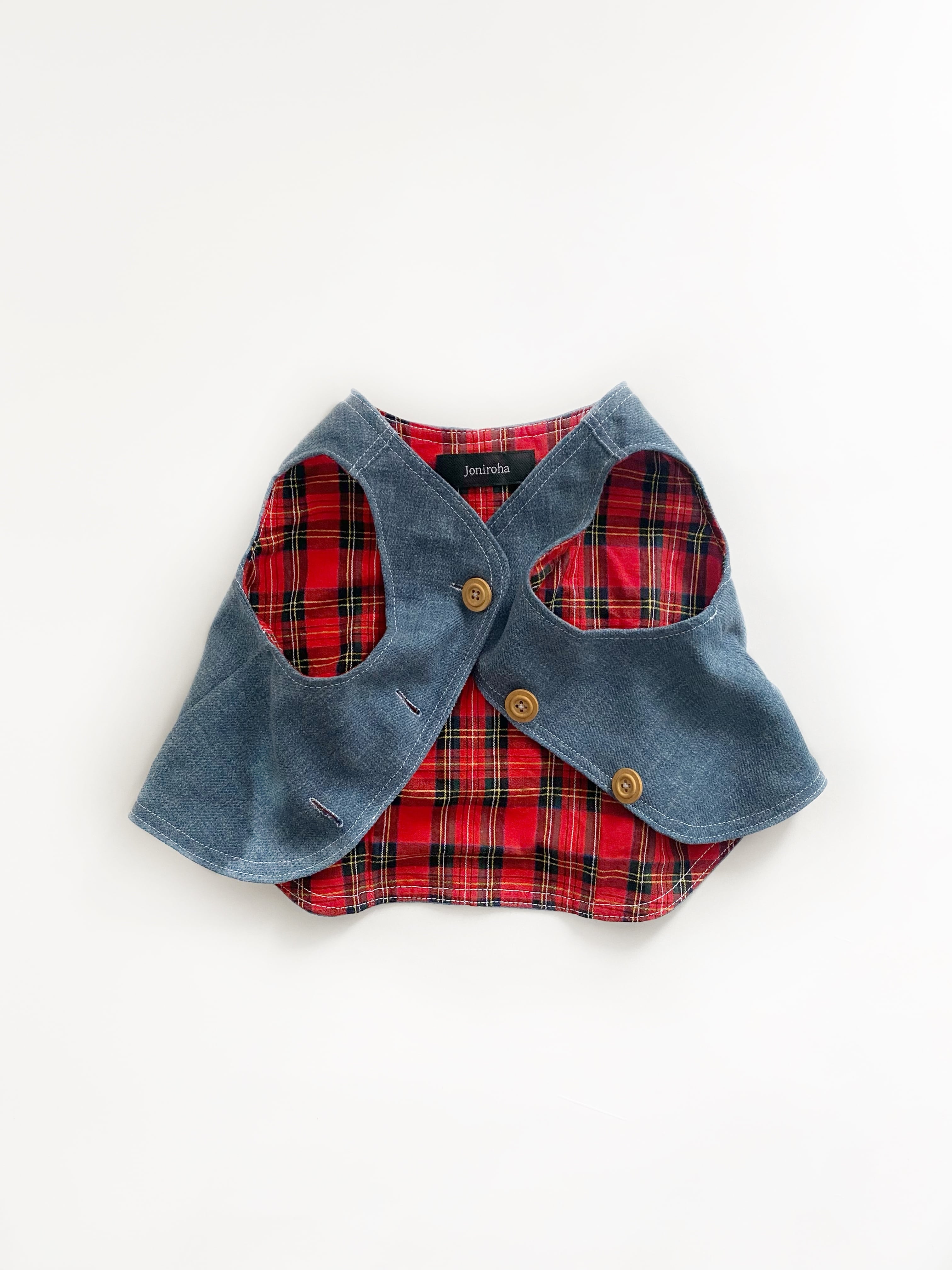 とってもお洒落なデニムチェックベスト❤️ 犬服 犬服ハンドメイド 見えないお洒落 フレンチブルドッグ服 パグ服 小型犬服 プレゼント