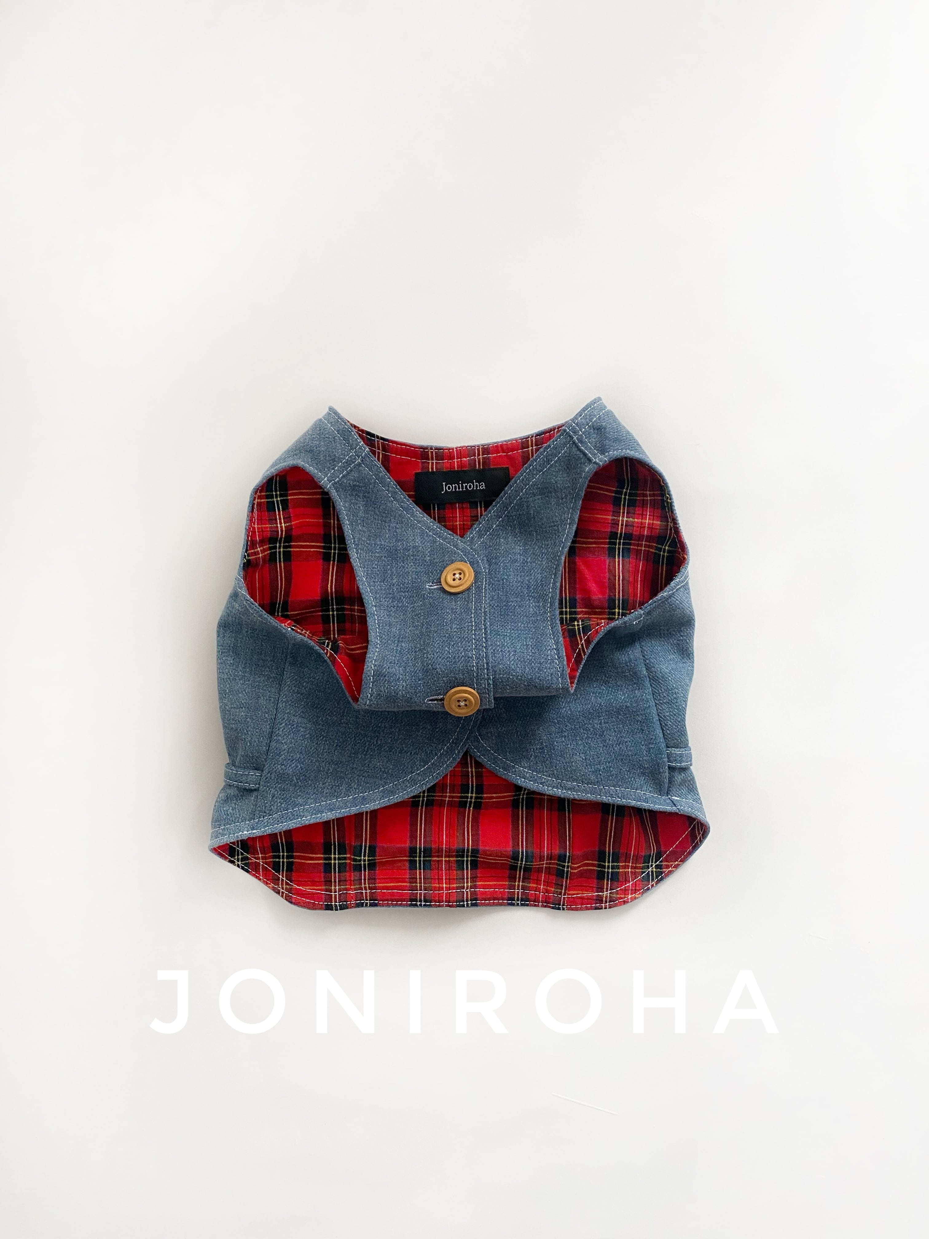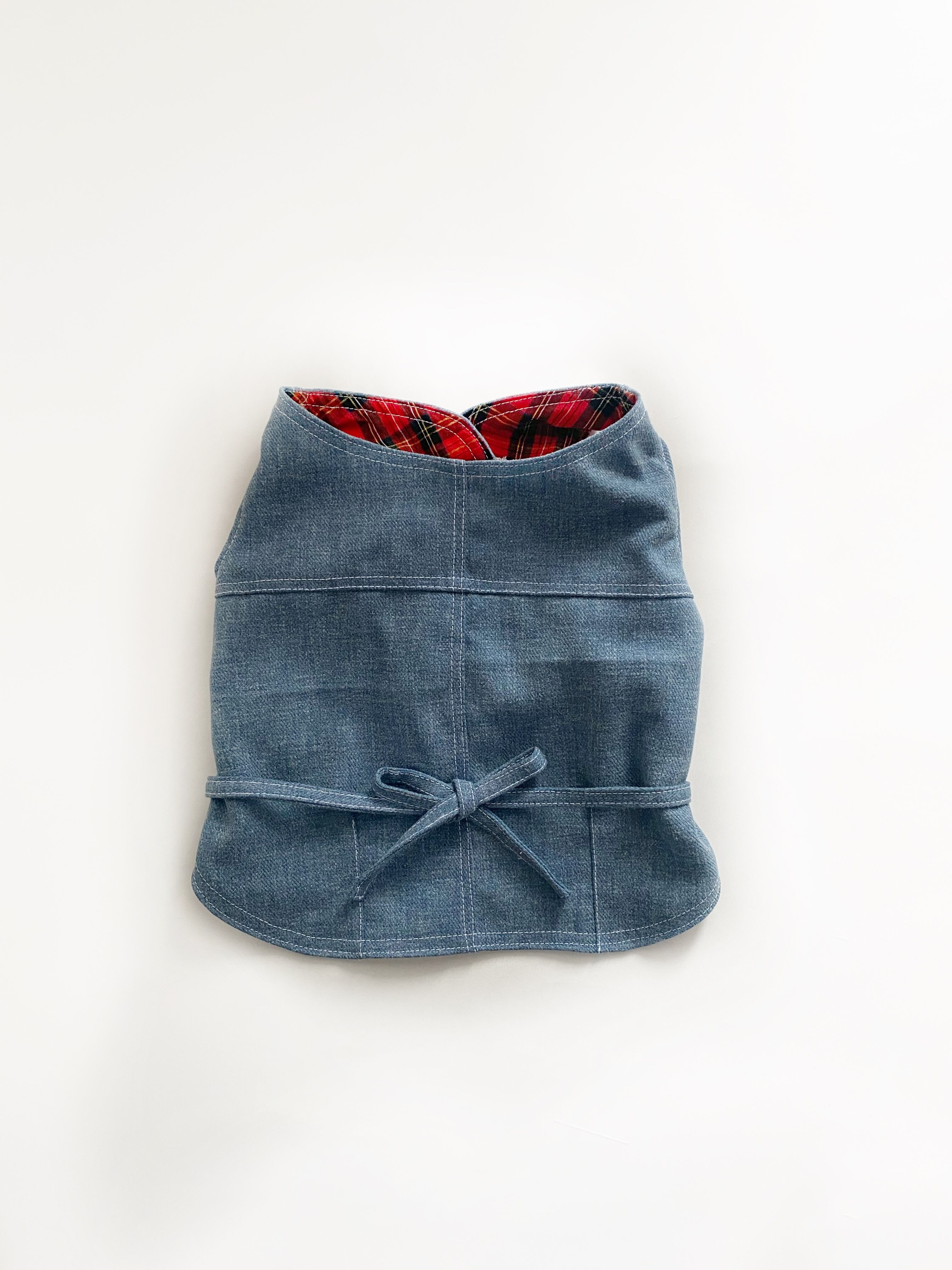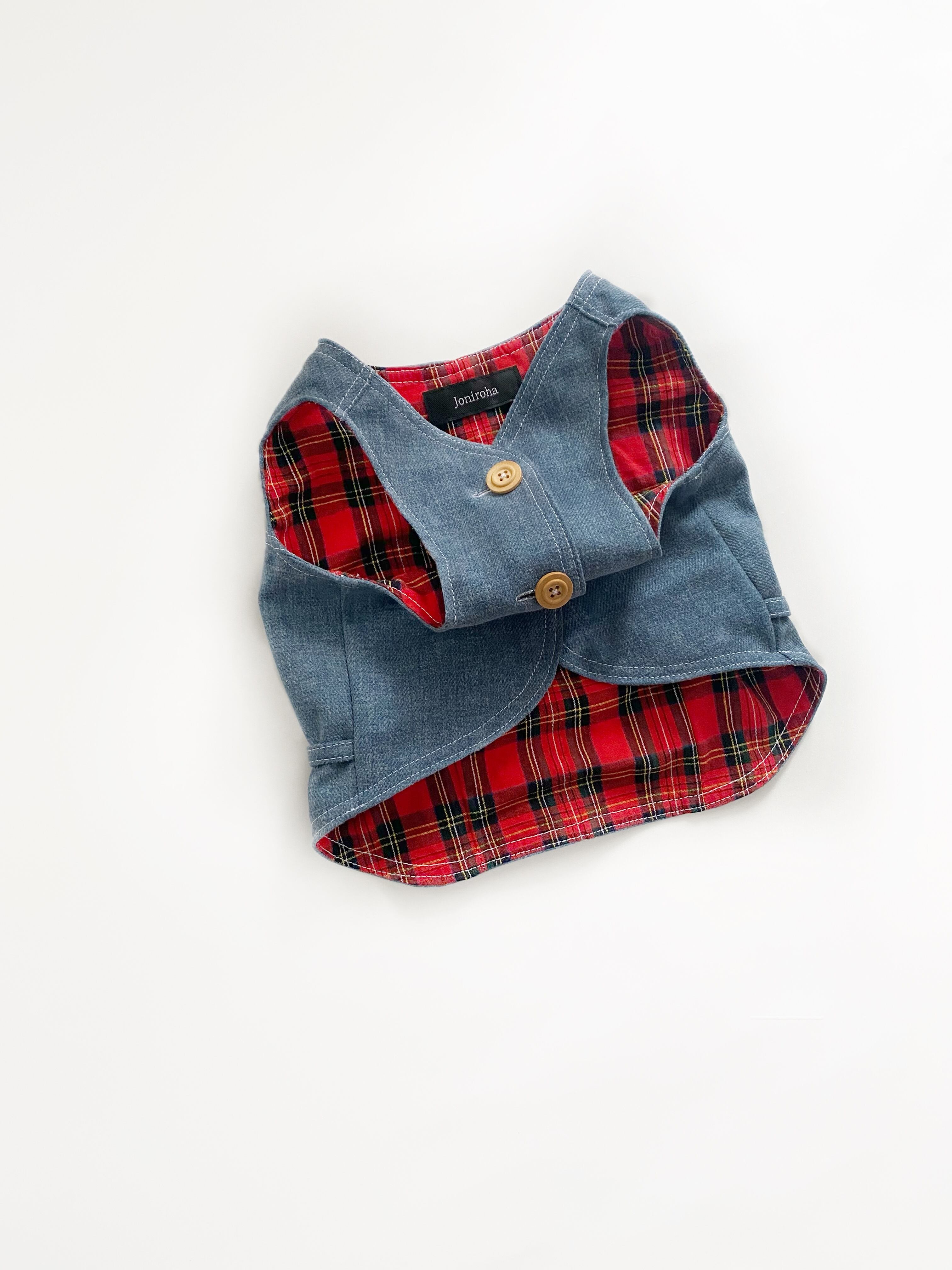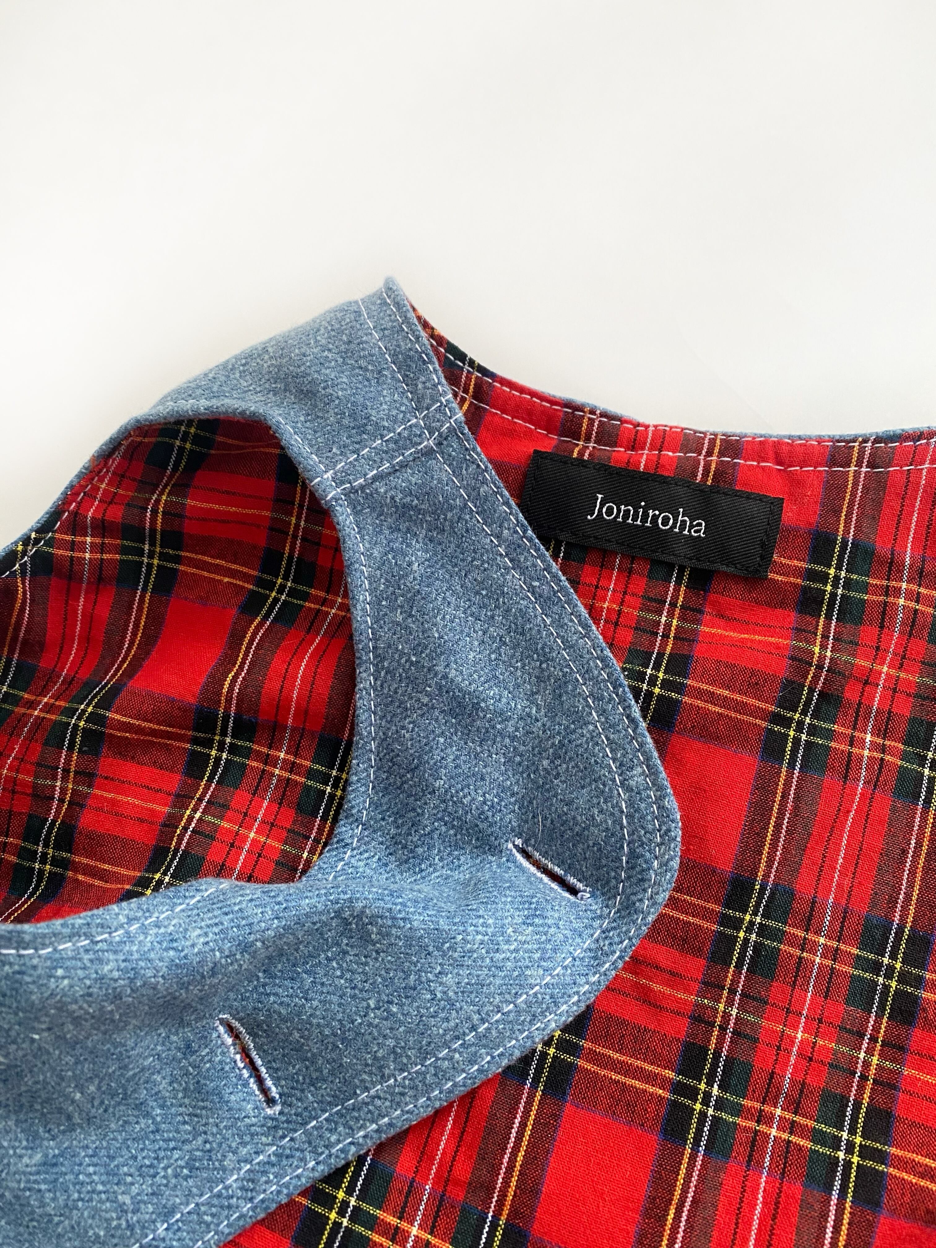とってもお洒落なデニムチェックベスト❤️ 犬服 犬服ハンドメイド 見えないお洒落 フレンチブルドッグ服 パグ服 小型犬服 プレゼント