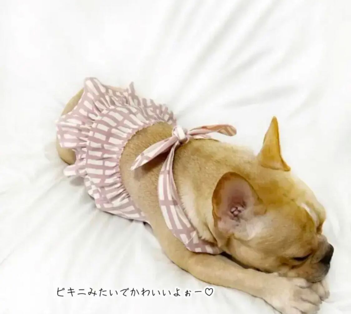 【クール】カラー多数✨夏ひんやり♡コットンリネンのクールワンピース❤️ 犬服 犬服ハンドメイド クールエプロン 保冷剤が入る フレンチブルドッグ服 フレブル服 パグ服 誕生日プレゼント
