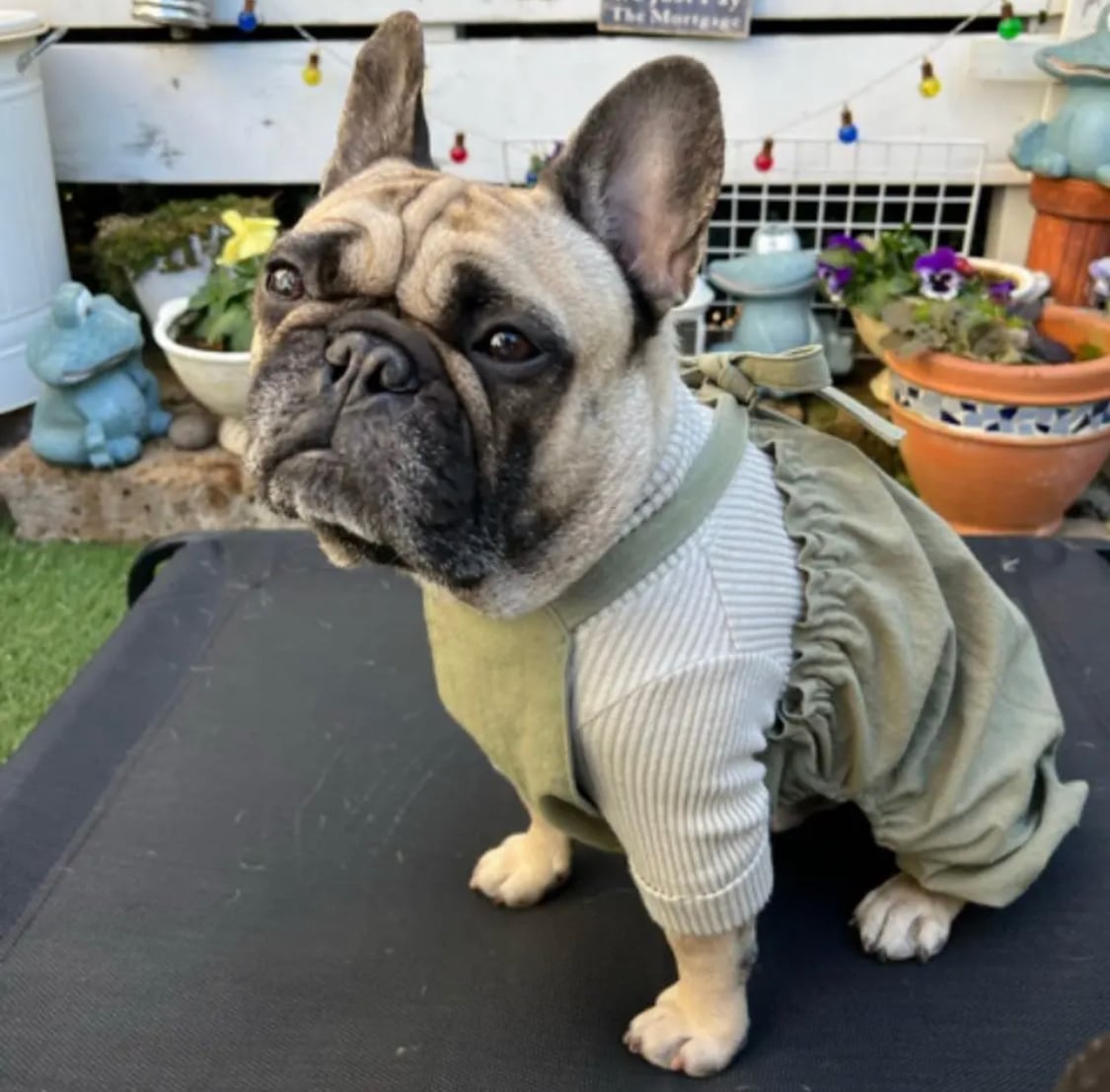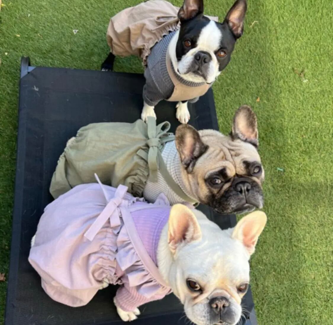 コットンリネン♡お洒落なカボチャパンツ❤️ 犬服 犬服ハンドメイド サロペット フレンチブルドッグ服 パグ服 小型犬服 お誕生日 プレゼント おしゃれ