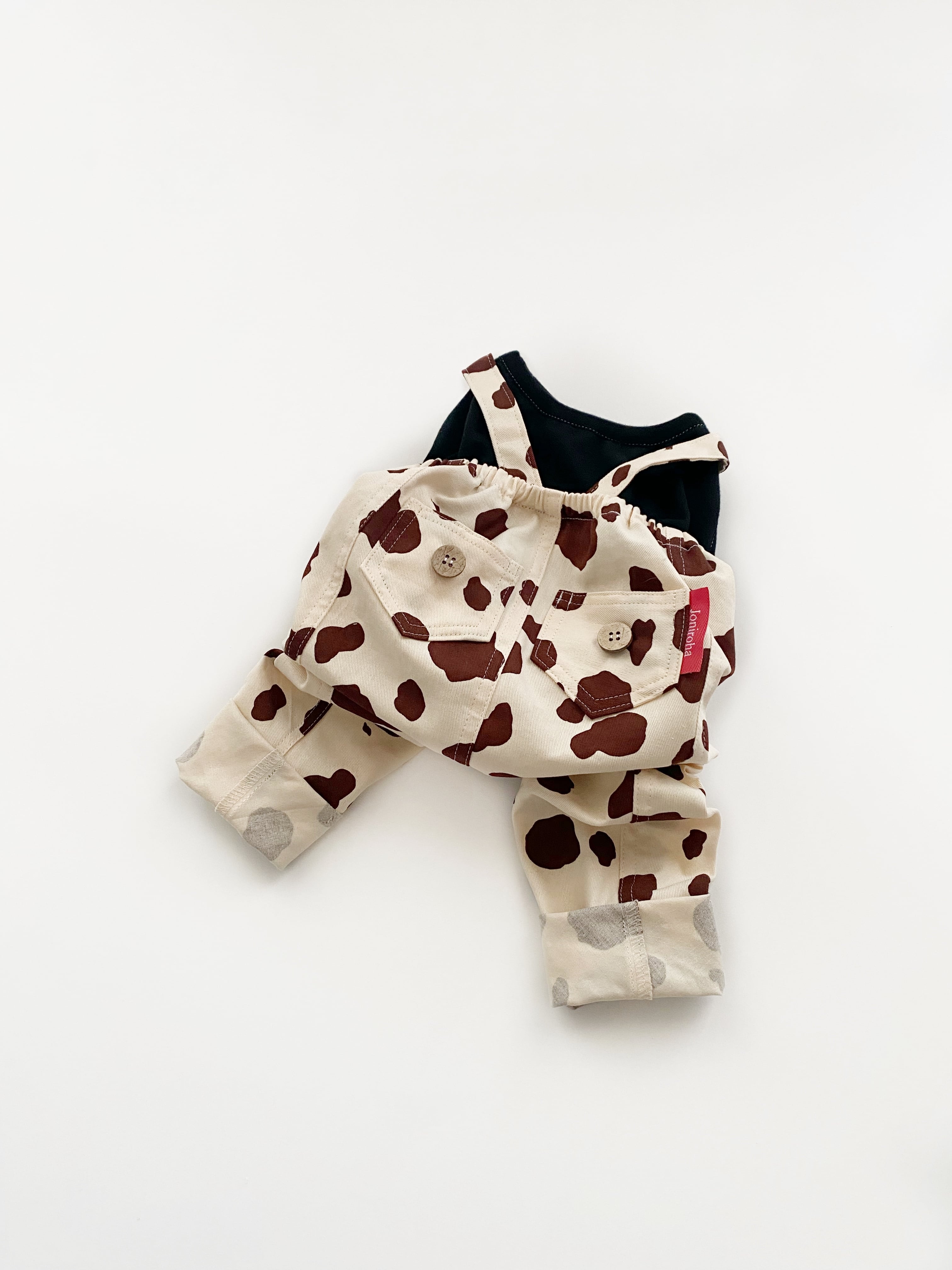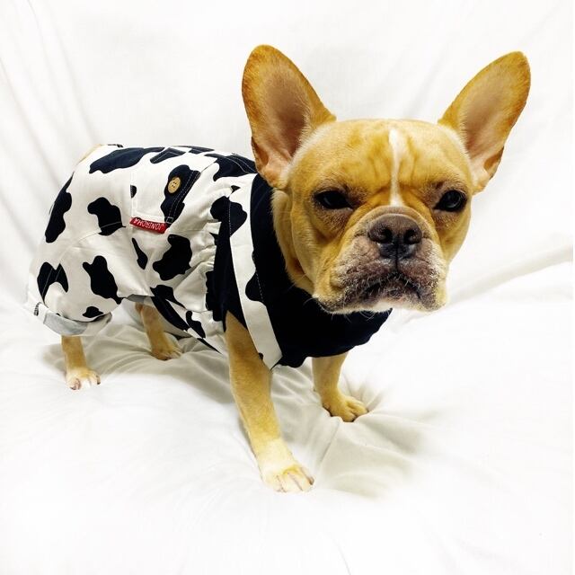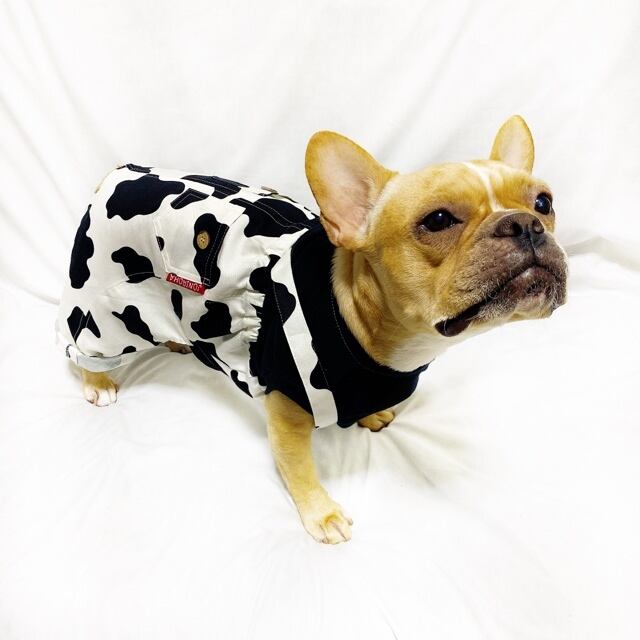 モゥ〜っと可愛く♡重ね着風ウシさんサロペットパンツ♡ 犬服 犬服ハンドメイド 小型犬服 フレブル服 フレンチブルドッグ服 パグ服 ロンパース