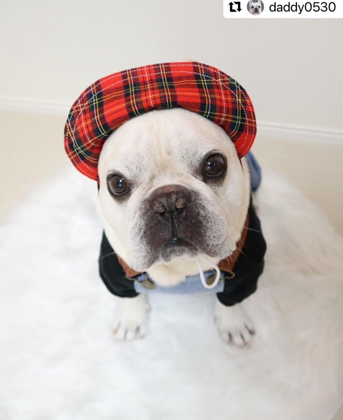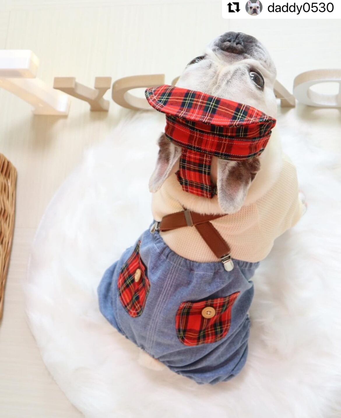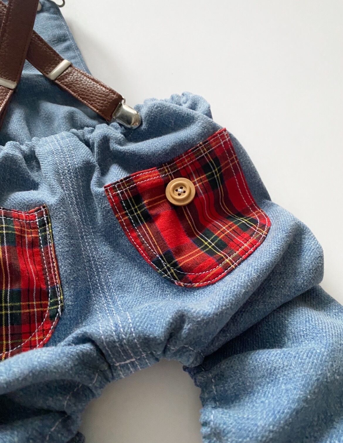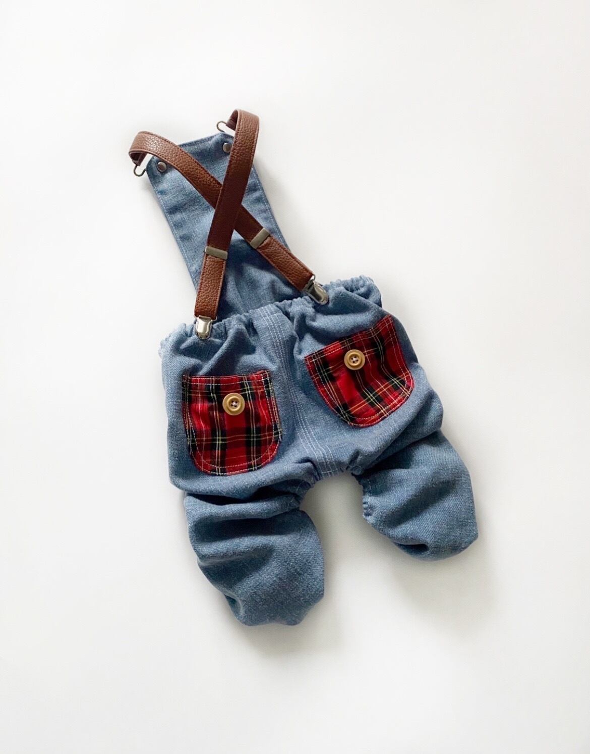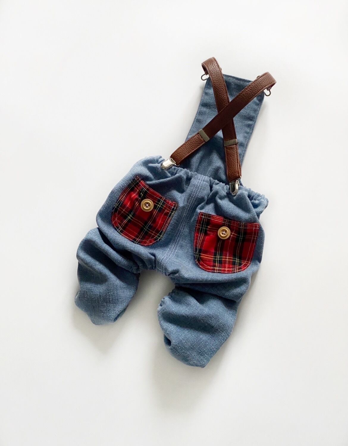 【クール選べる☆】サスペンダー付き♡デニムチェックパンツ❤️ 犬服 犬服ハンドメイド オーバーオール お洒落 フレンチブルドッグ服 フレブル服 パグ服 小型犬服 お誕生日プレゼント