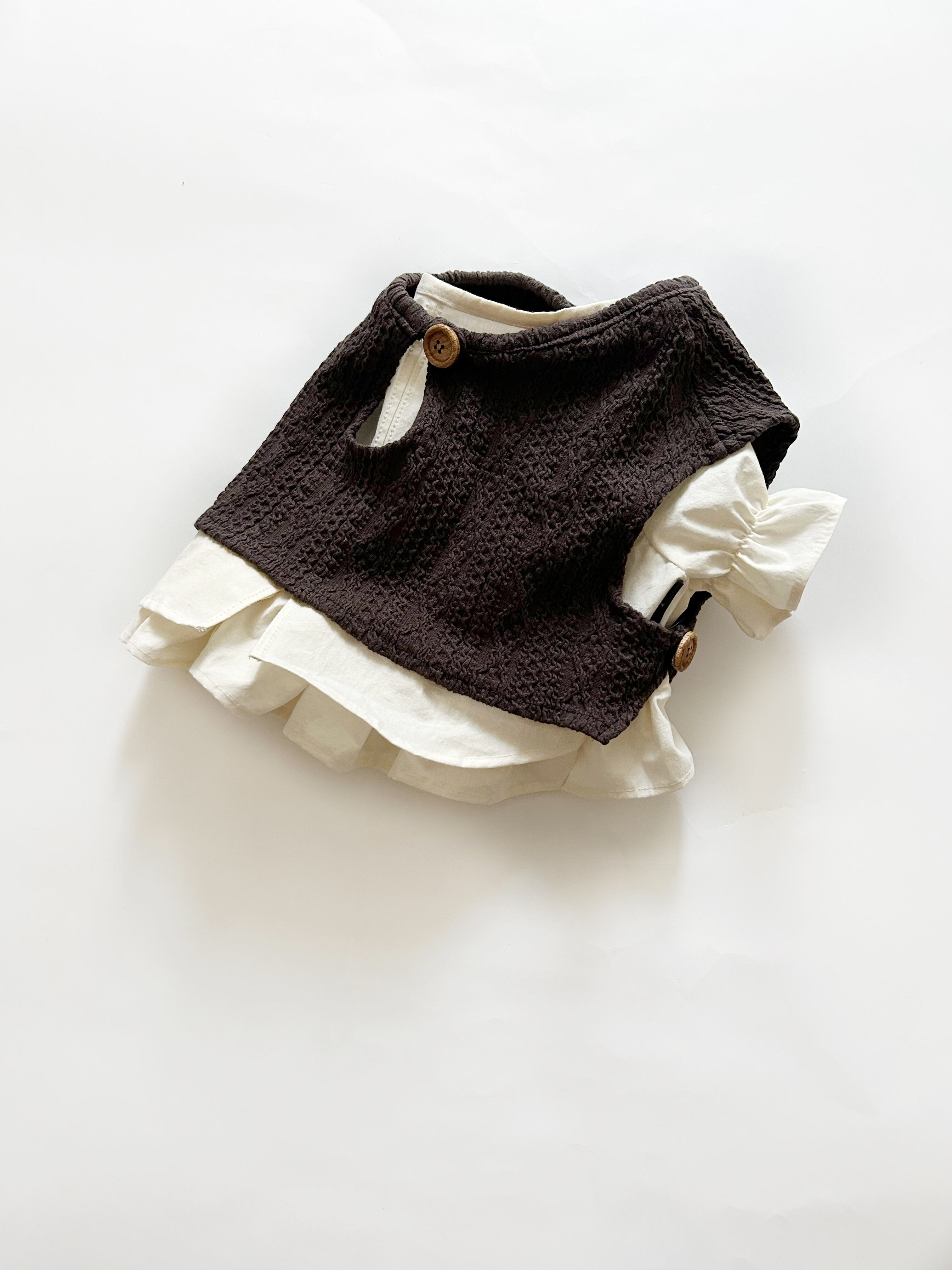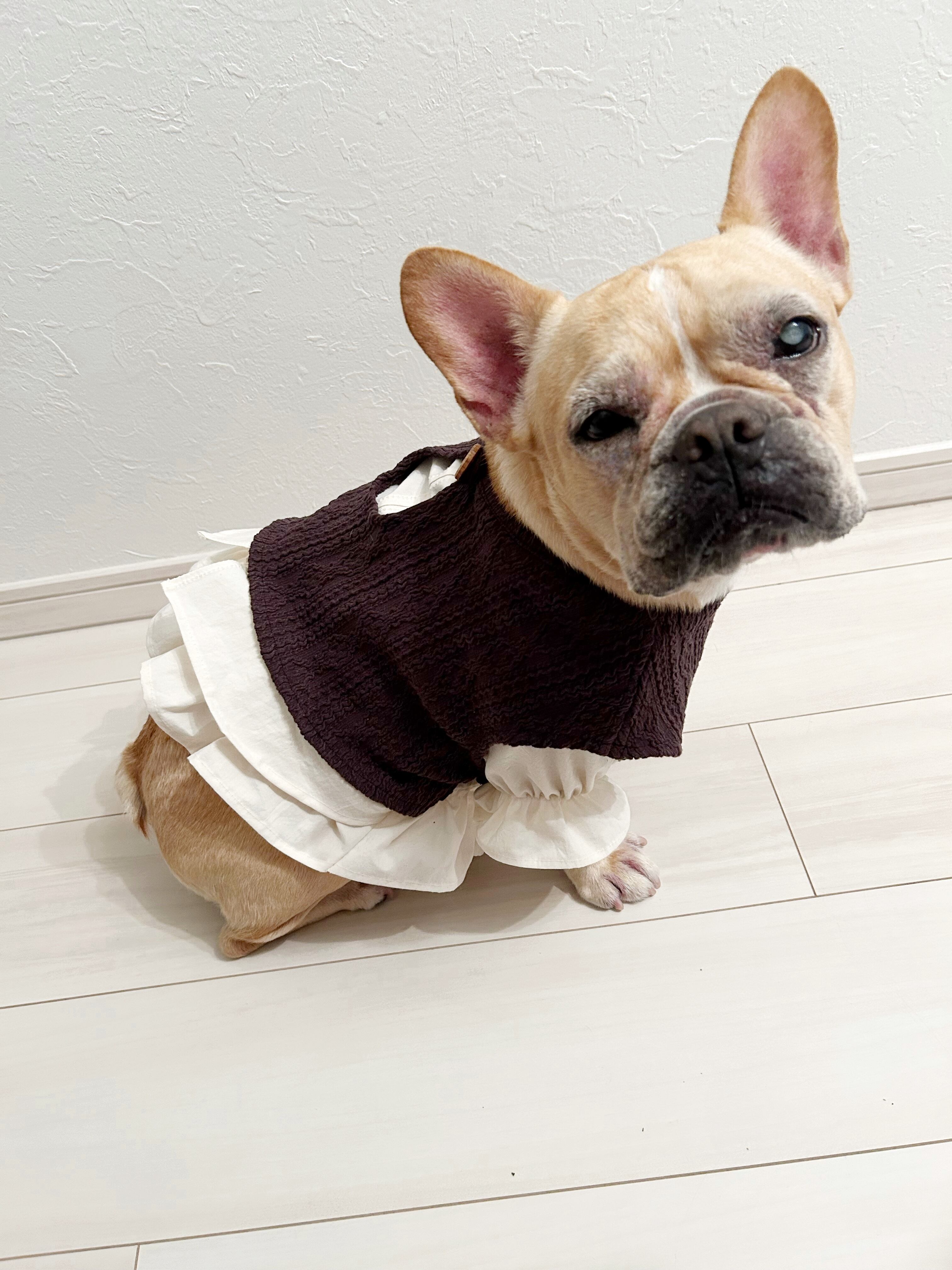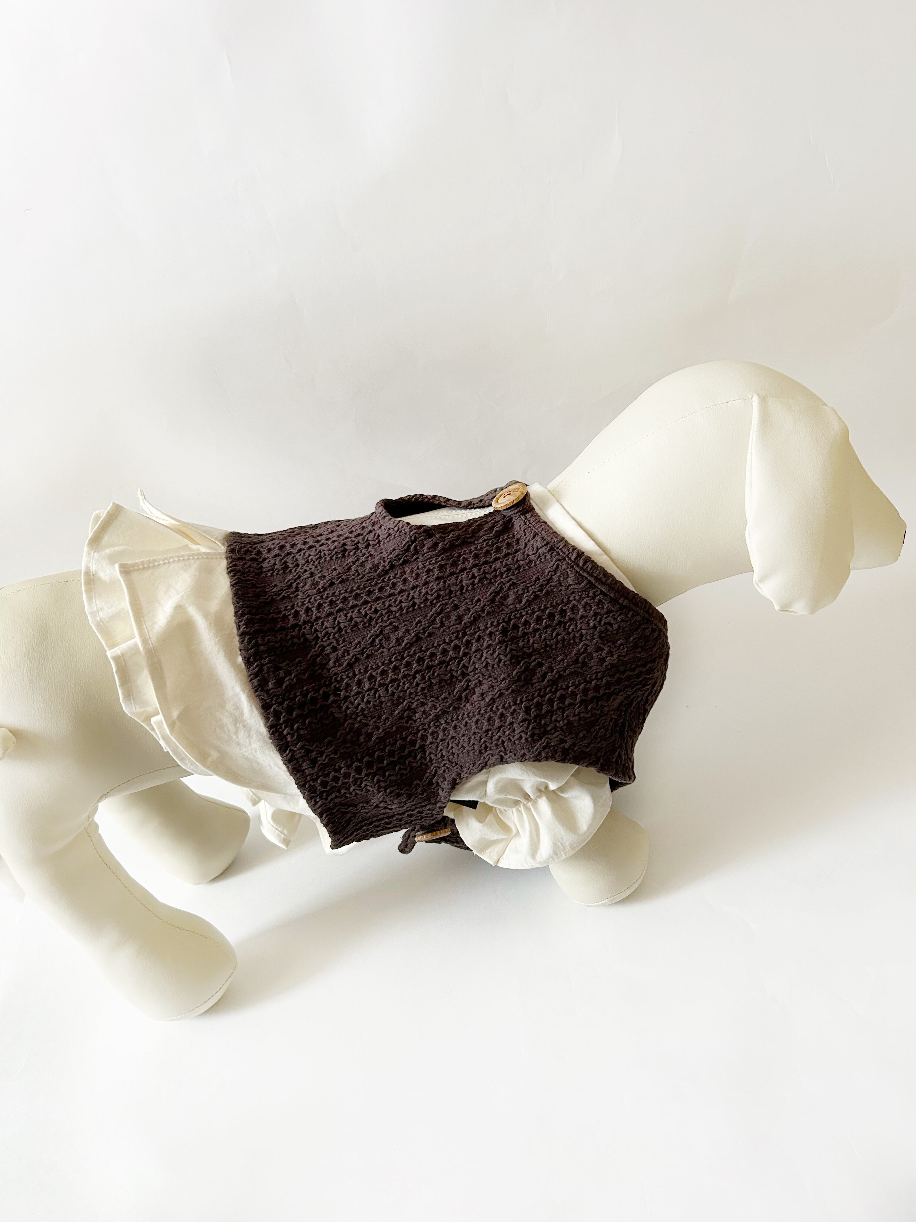 重ね着用♡とってもお洒落なアランニットショートベスト❤️ ブラウス別売り 犬服 リアルな網目を再現 フレンチブルドッグ服 パグ服 小型犬服