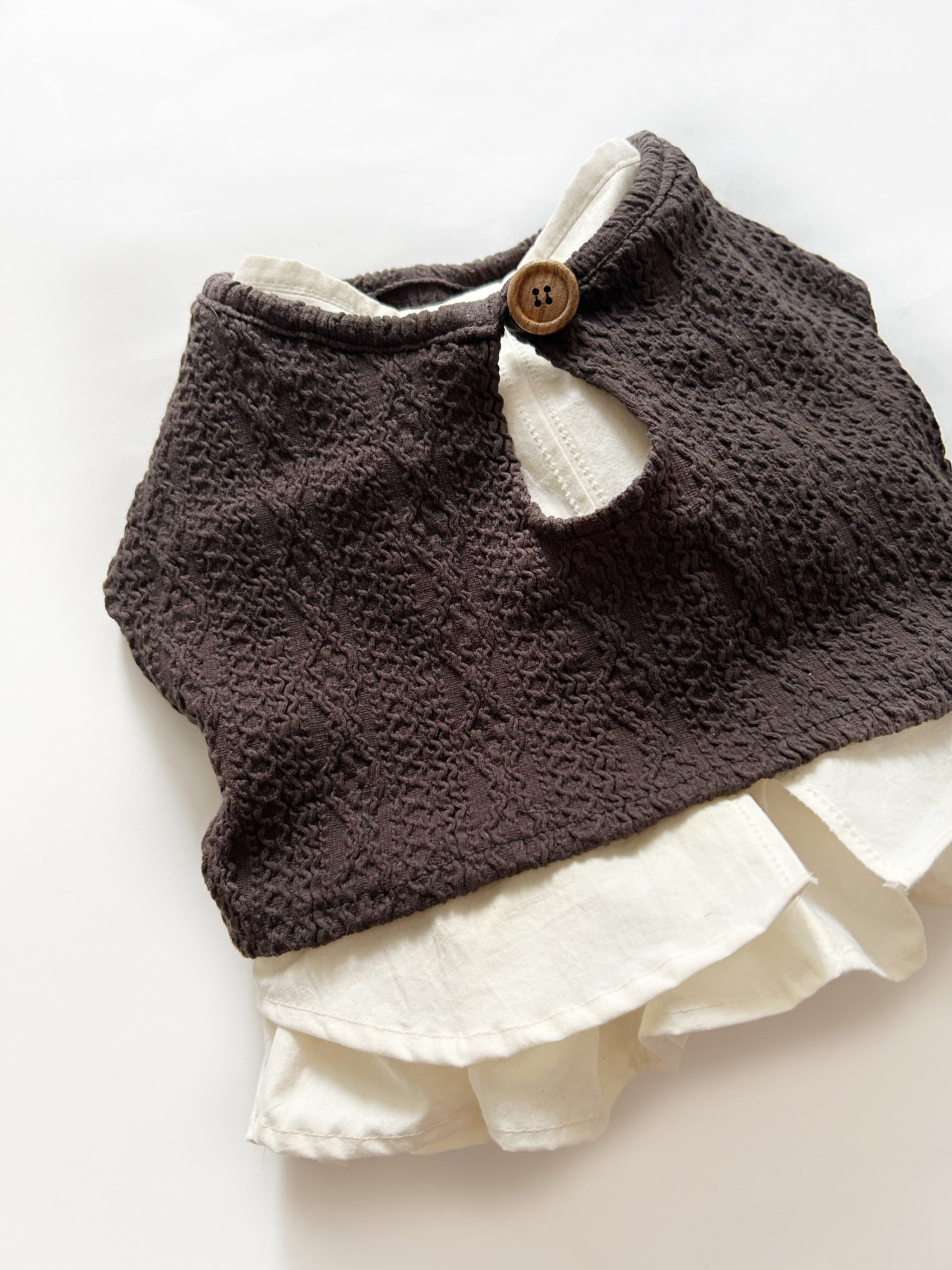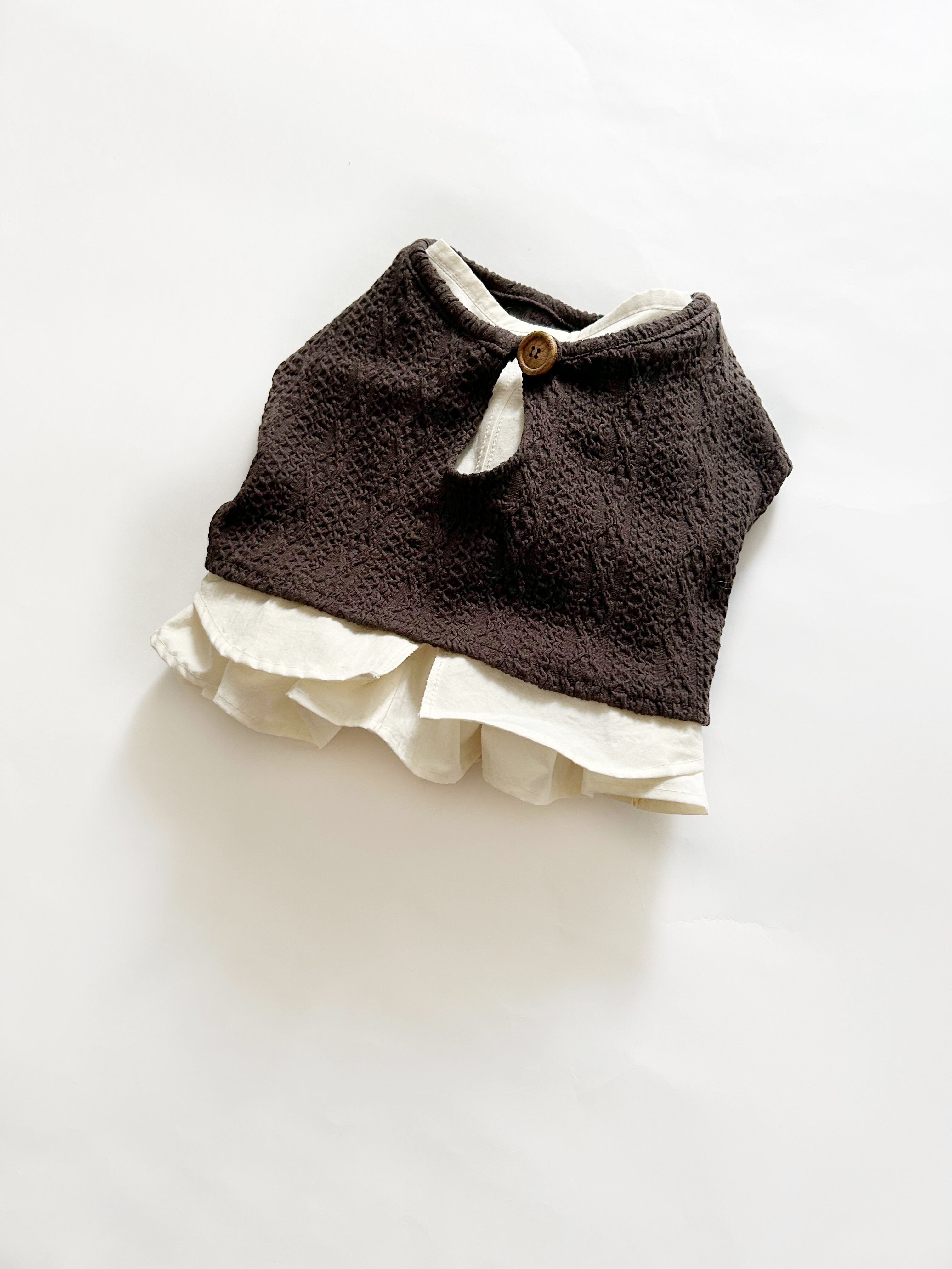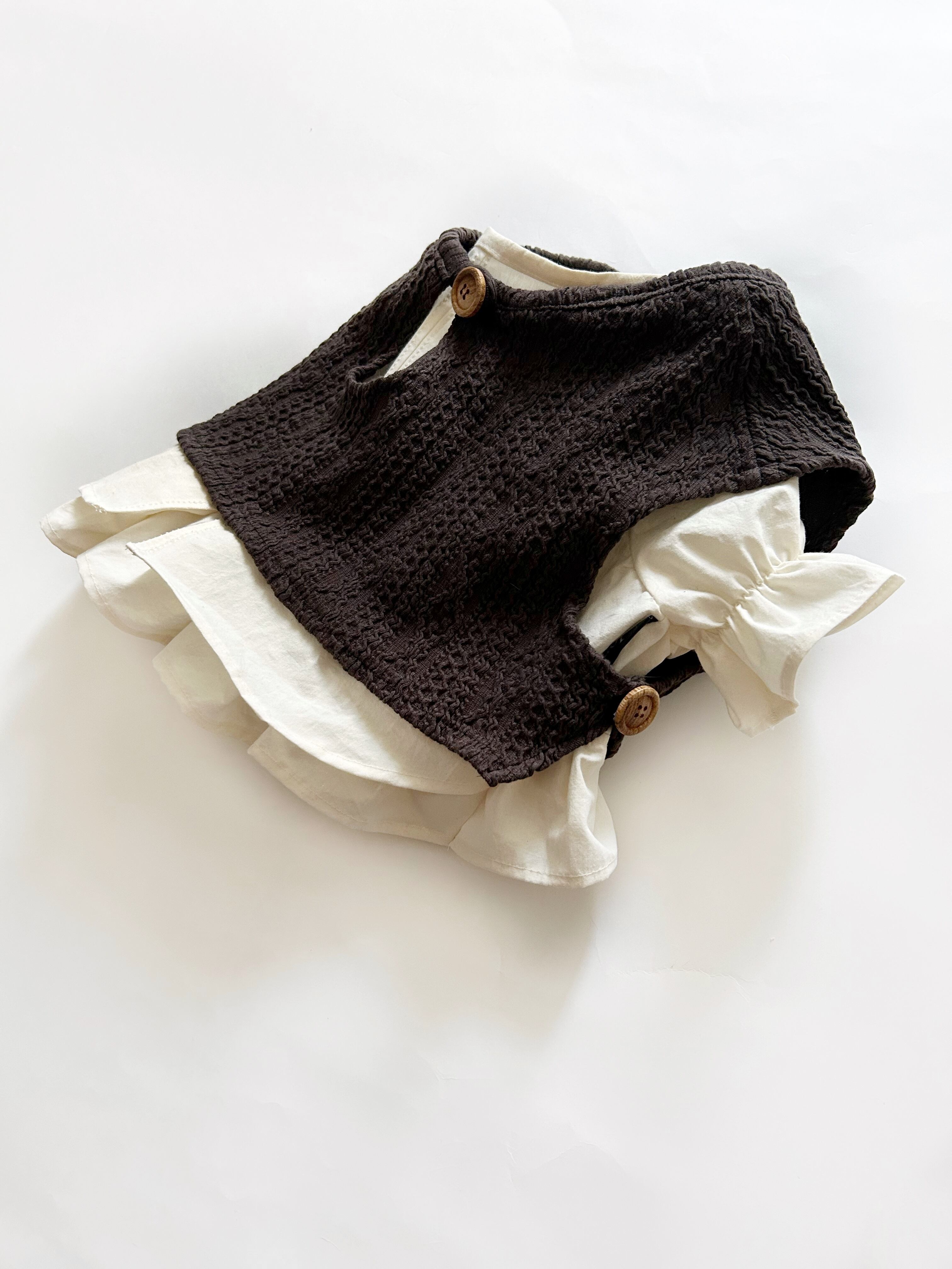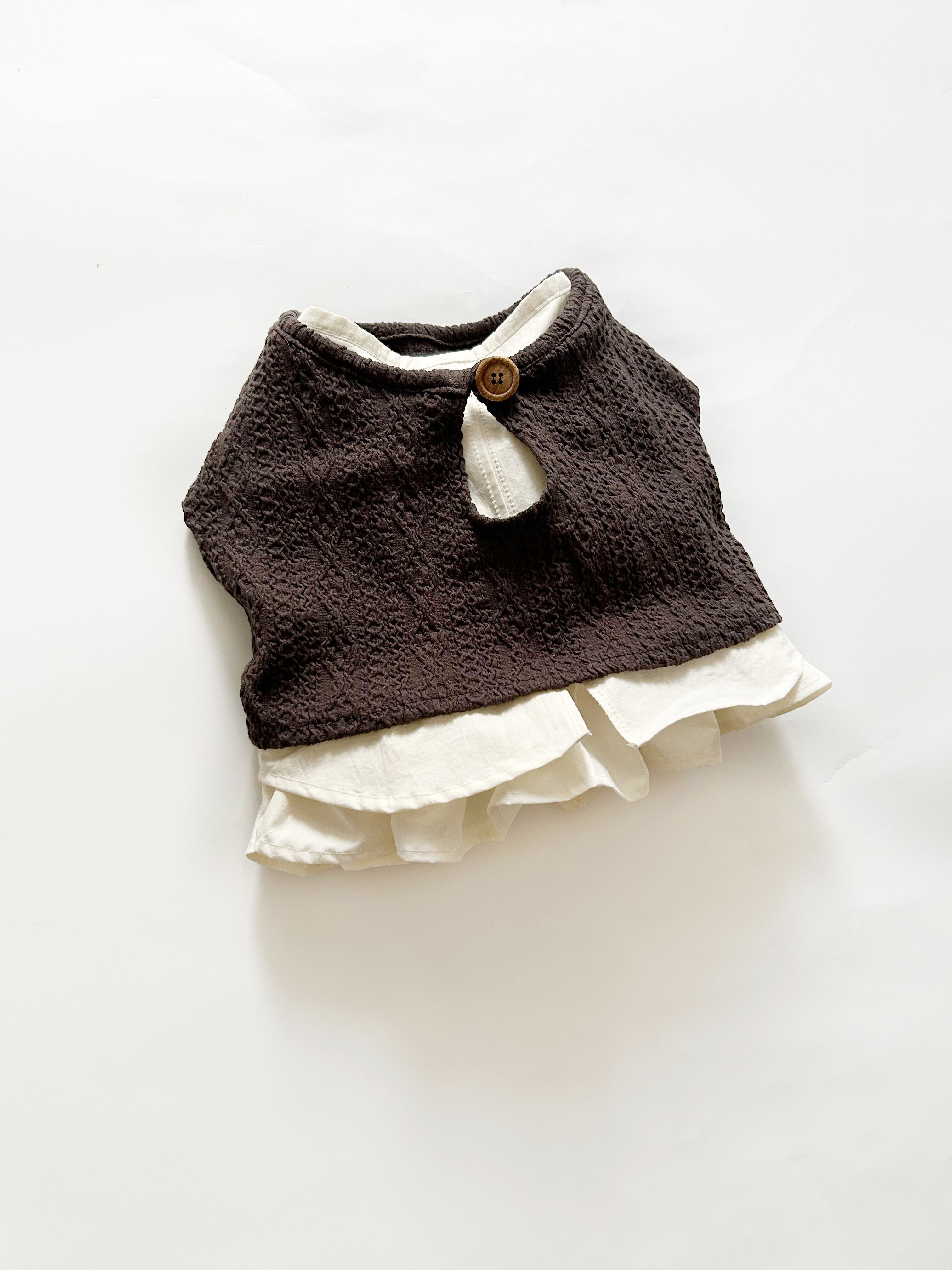 重ね着用♡とってもお洒落なアランニットショートベスト❤️ ブラウス別売り 犬服 リアルな網目を再現 フレンチブルドッグ服 パグ服 小型犬服