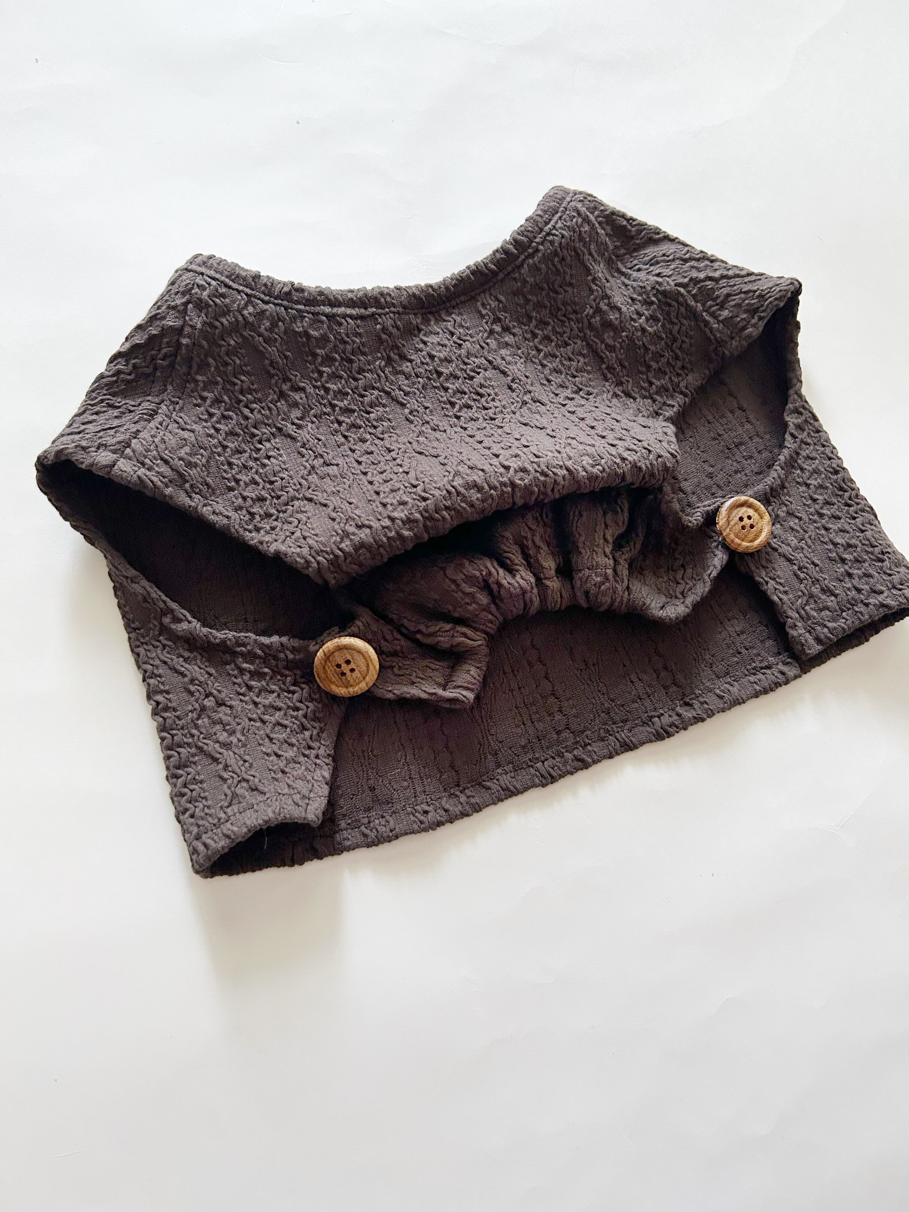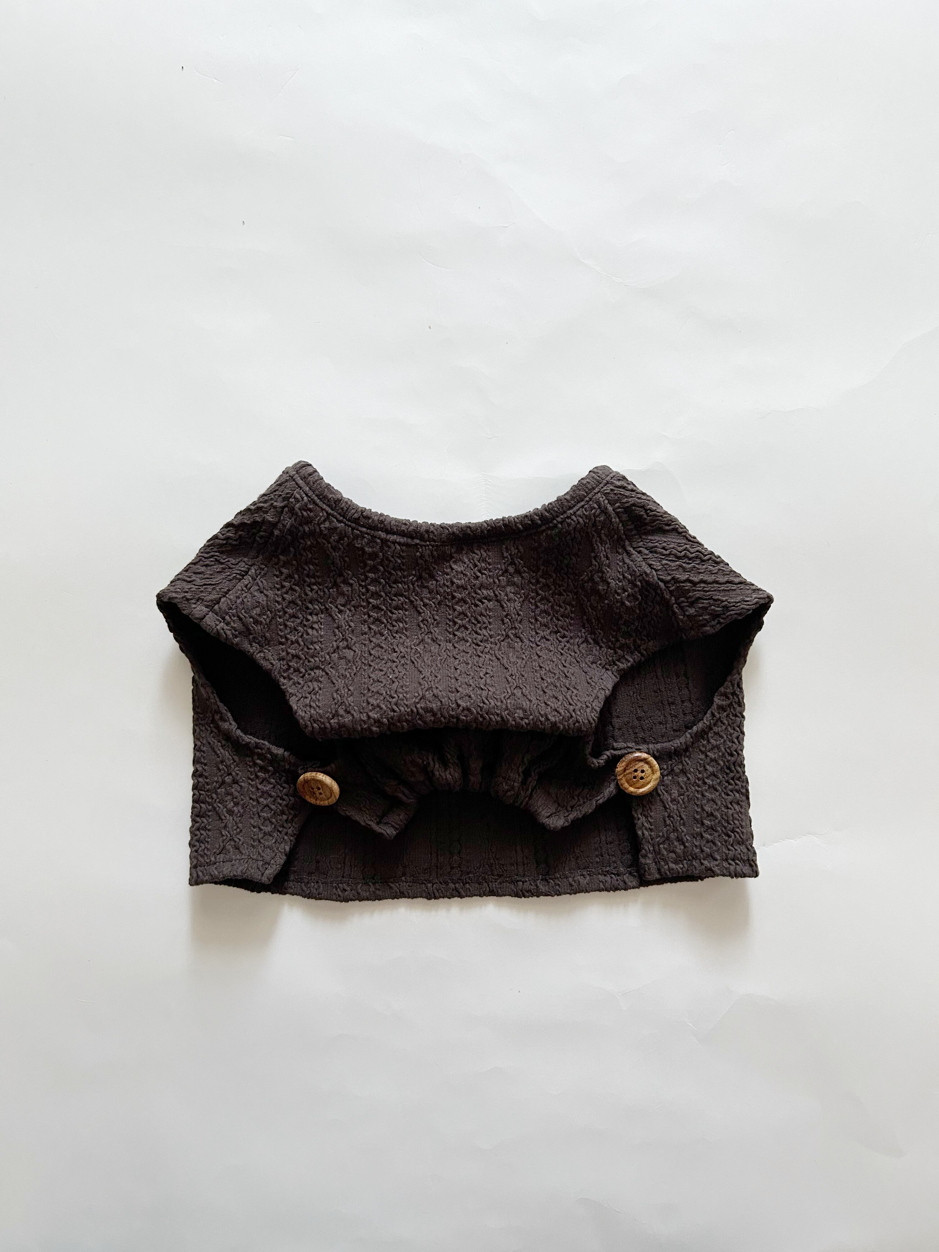 背中は、ウッドボタンでさりげないお洒落に✨