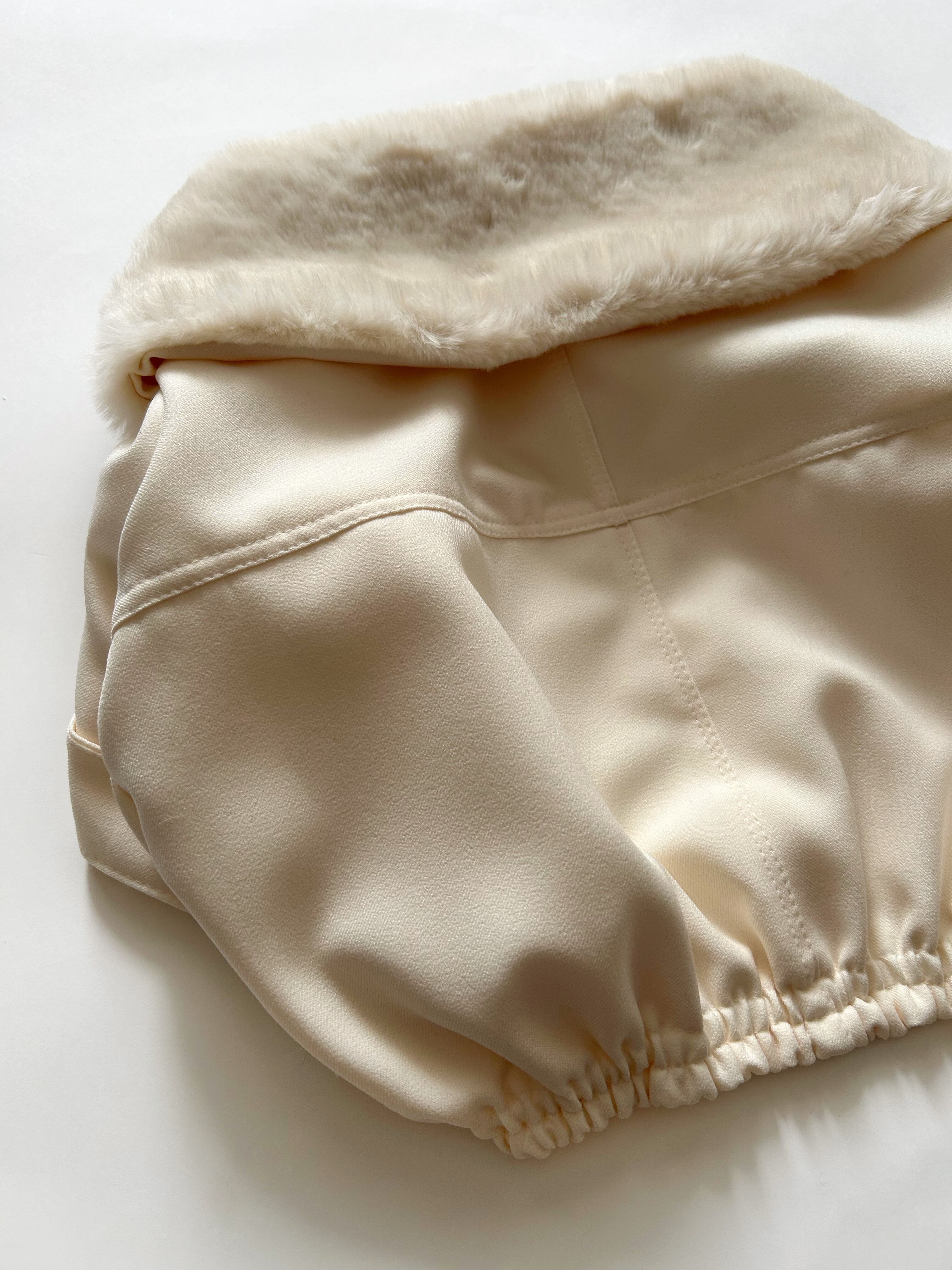 中はフリースを使用しているのでとっても暖かく、エリに使用しているファーはとっても気持ちの良い肌触りで抜け毛もほとんどありません❤️