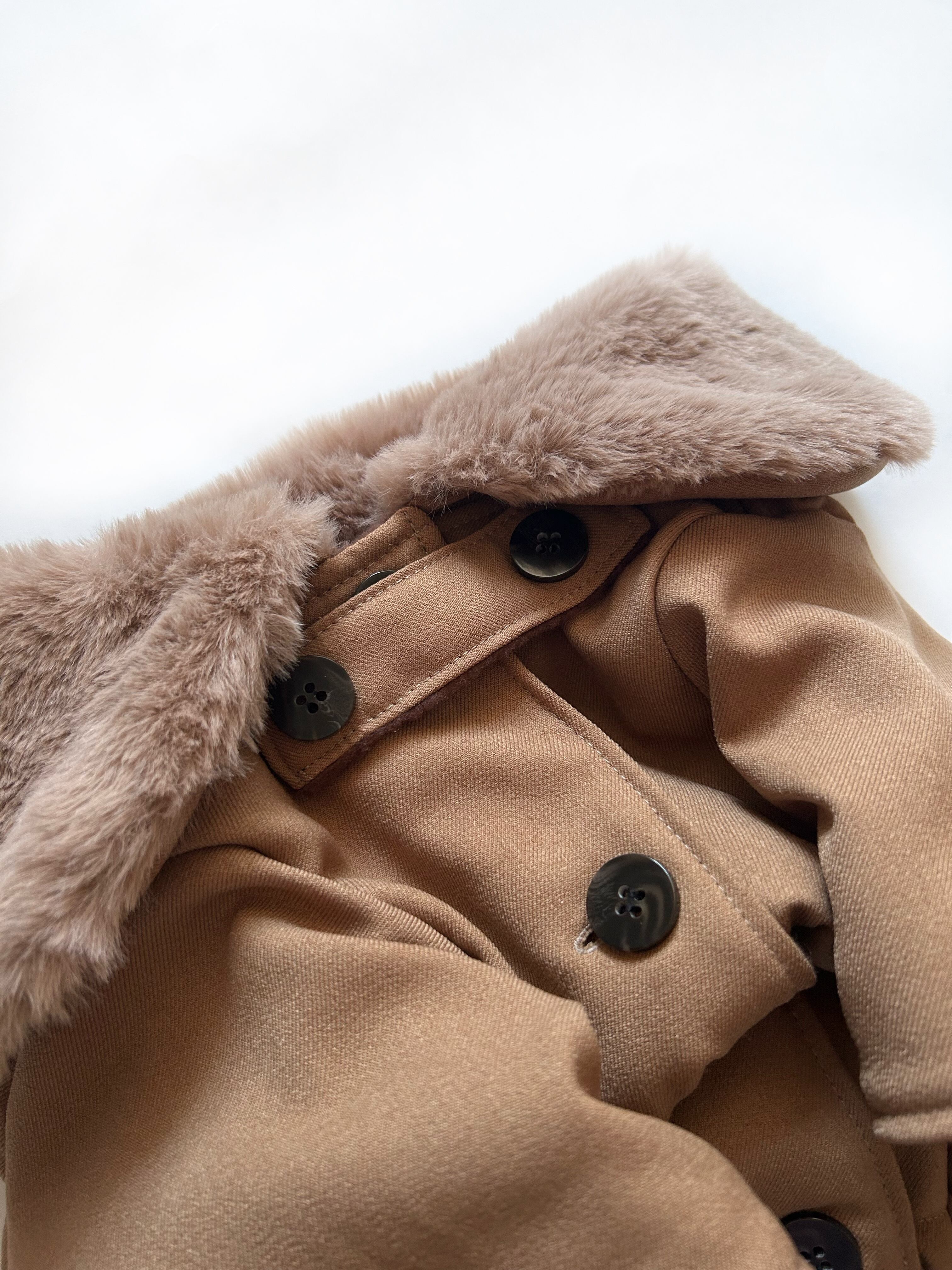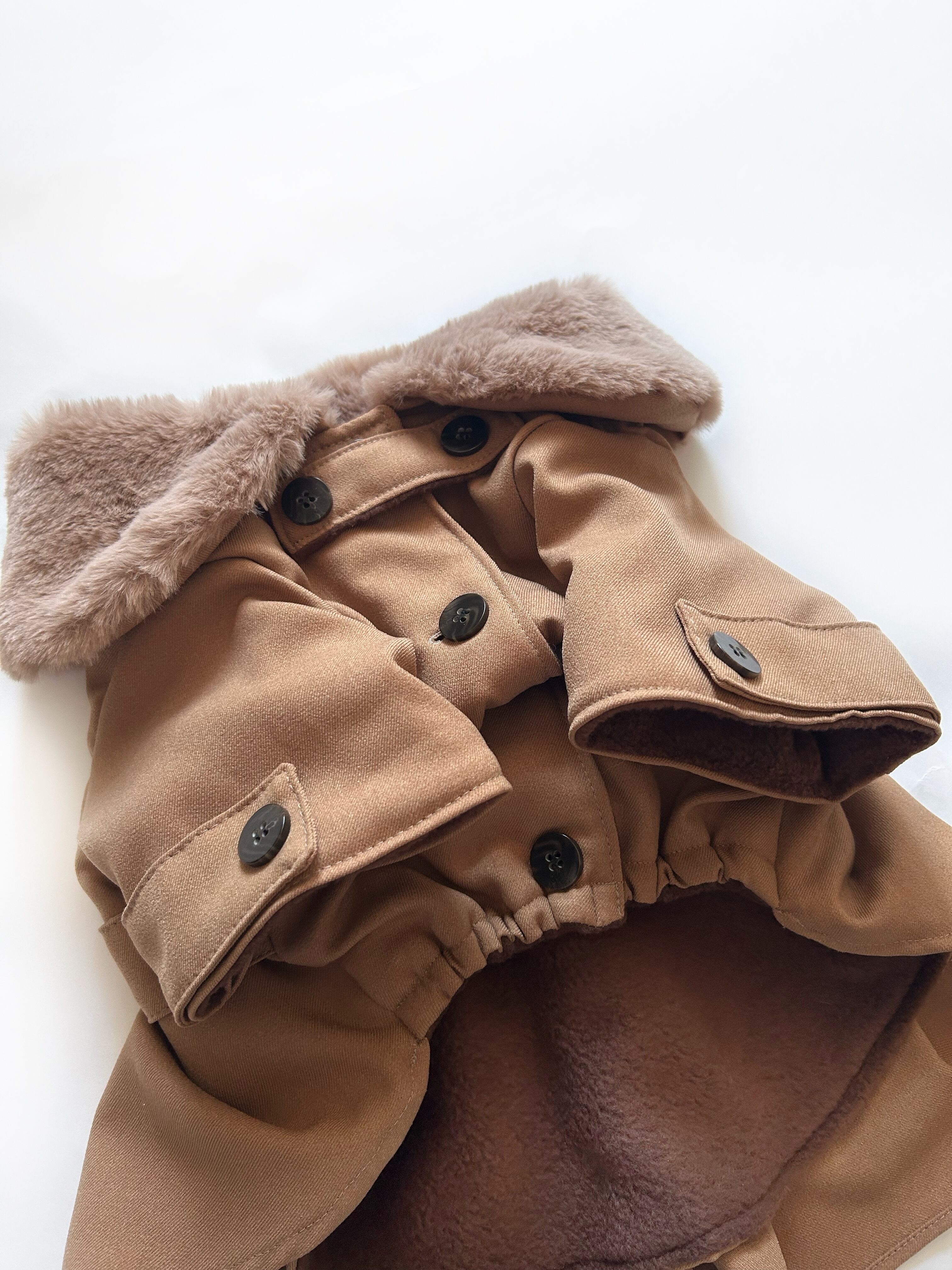 大きなファーのエリがついたカジュアルジャンパー❤️ 犬服 犬服ハンドメイド オーバーオール お洒落 フレンチブルドッグ服 フレブル服 パグ服 小型犬服 お誕生日プレゼント