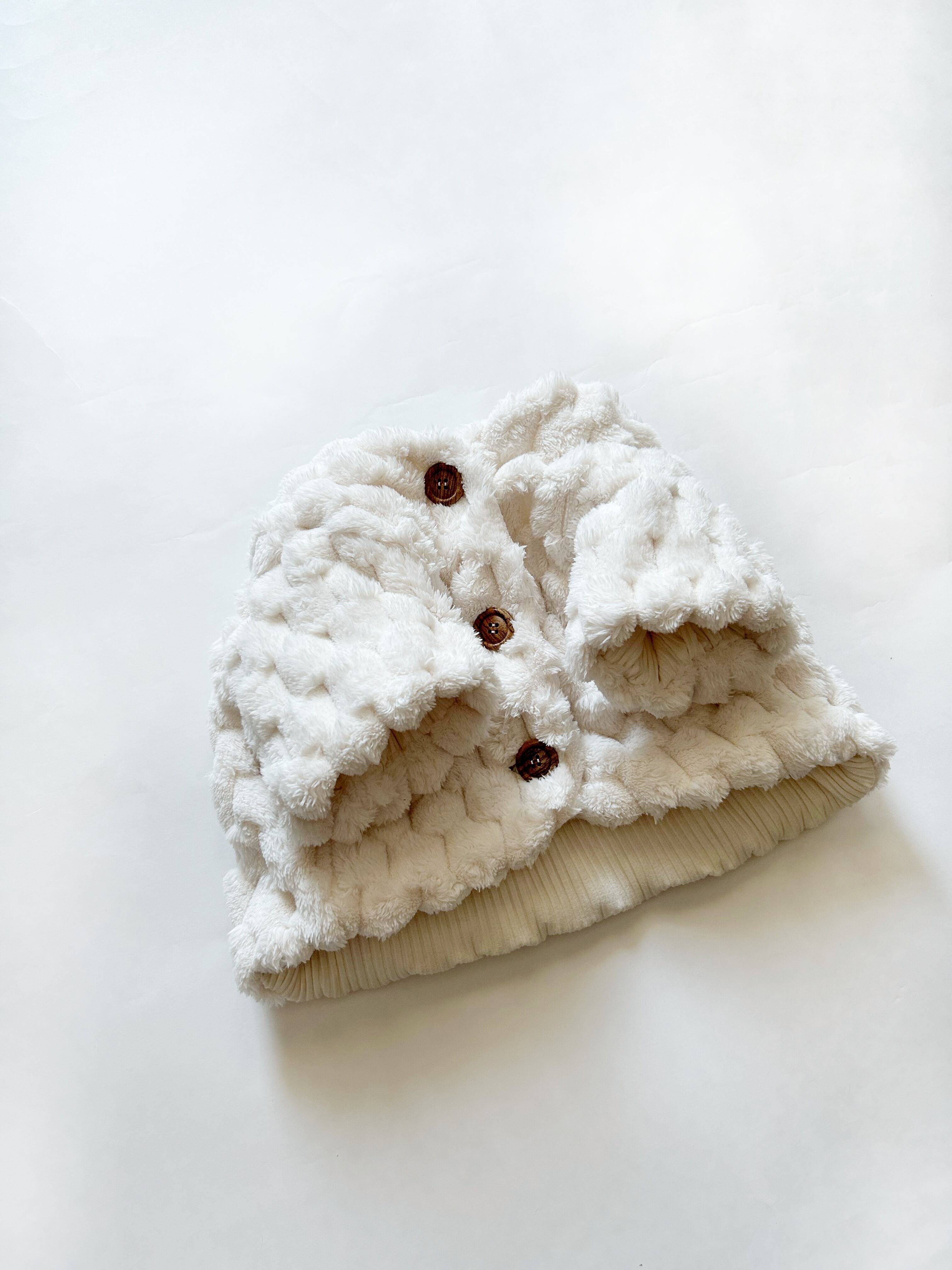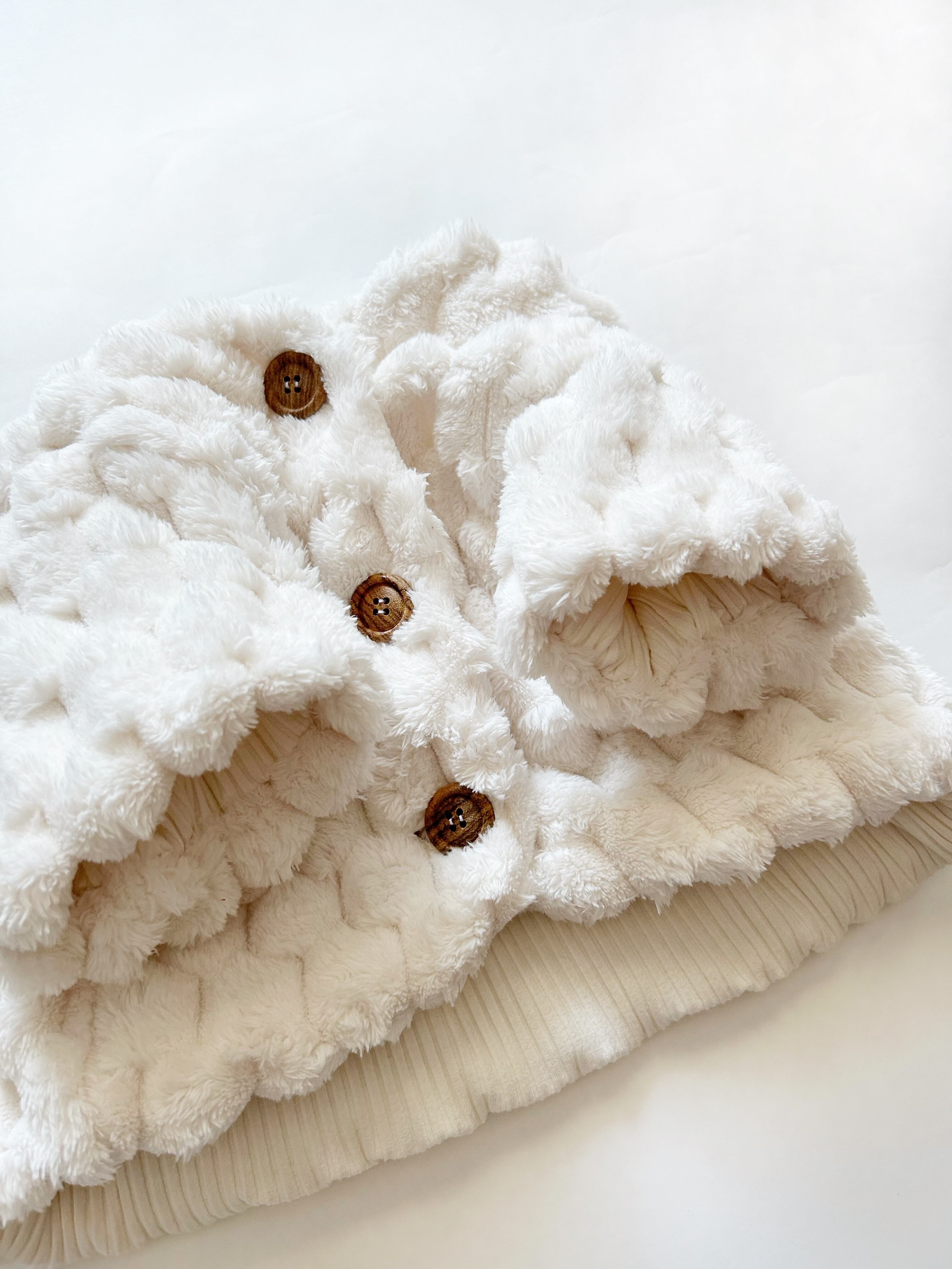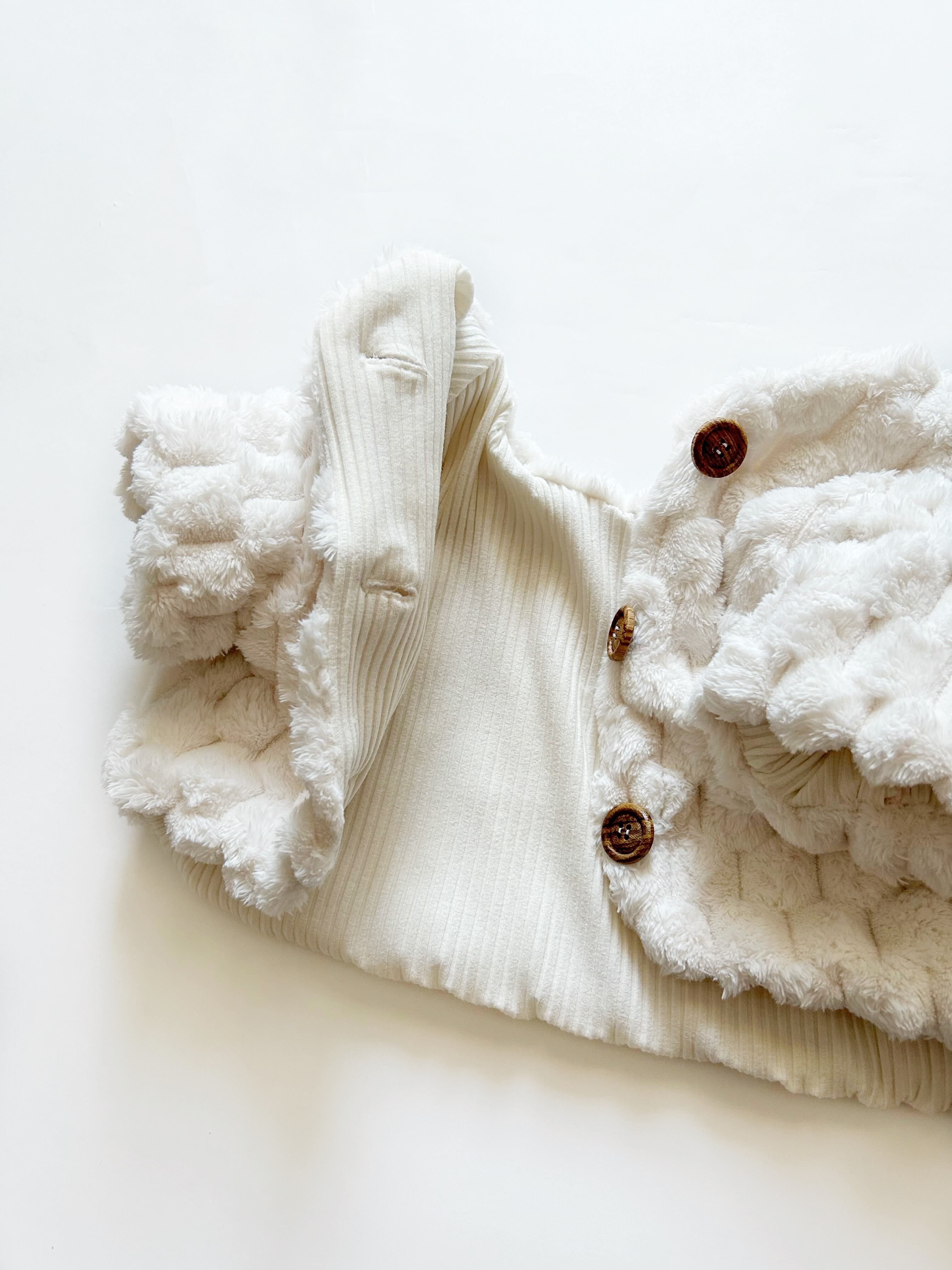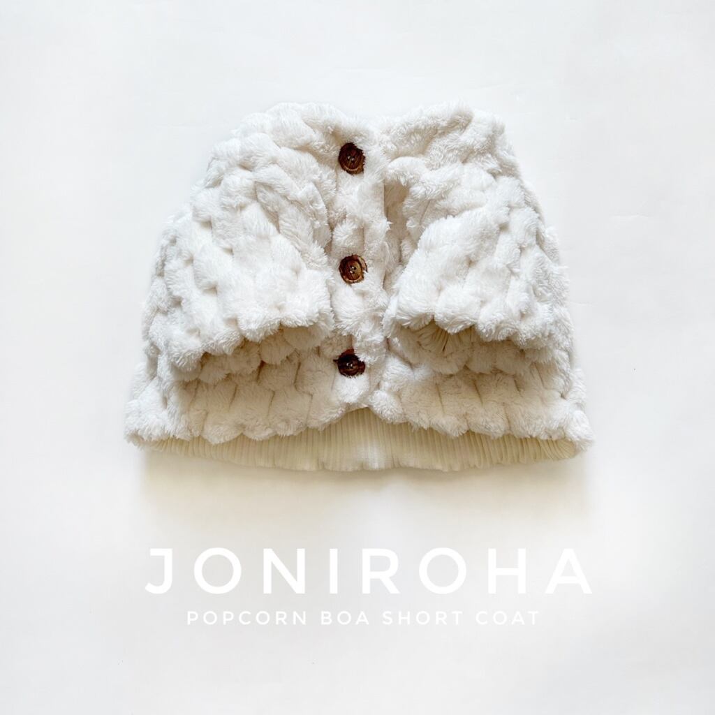 ポコポコとした、ポップコーンボアがとっても可愛いショートベストのアウターが仕上がりました❣️